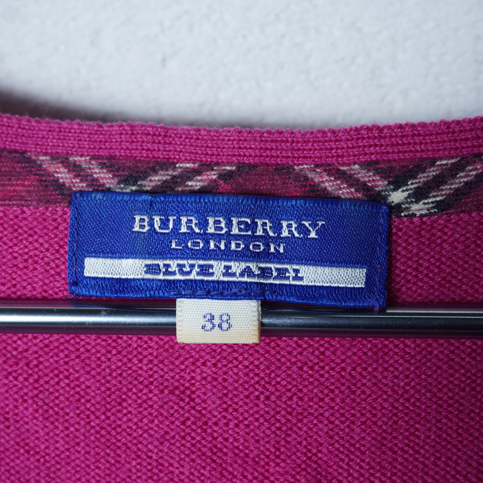 【BURBERRY】バーバリー "WOOL100%" メタルロゴ入 フリルカーディガン pink