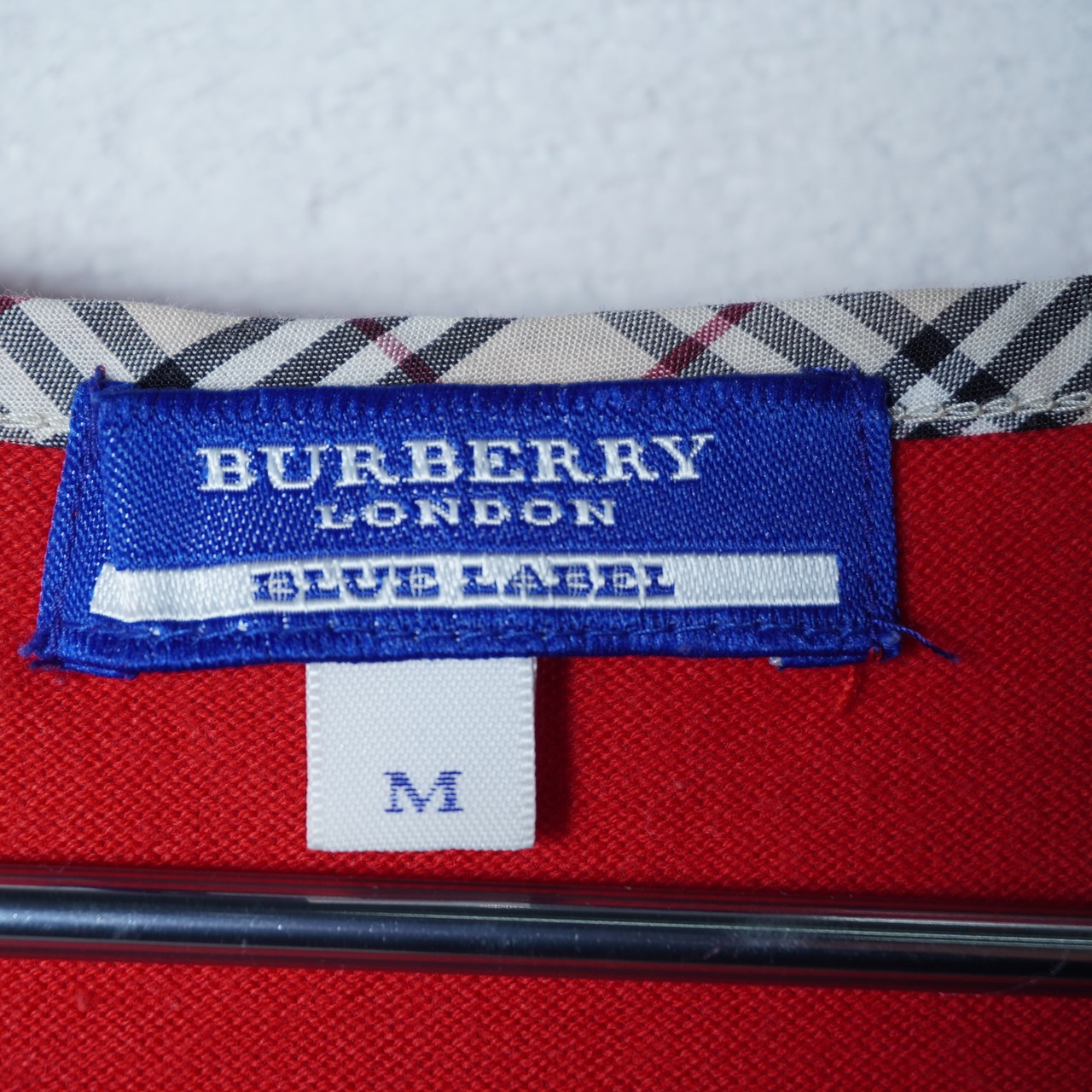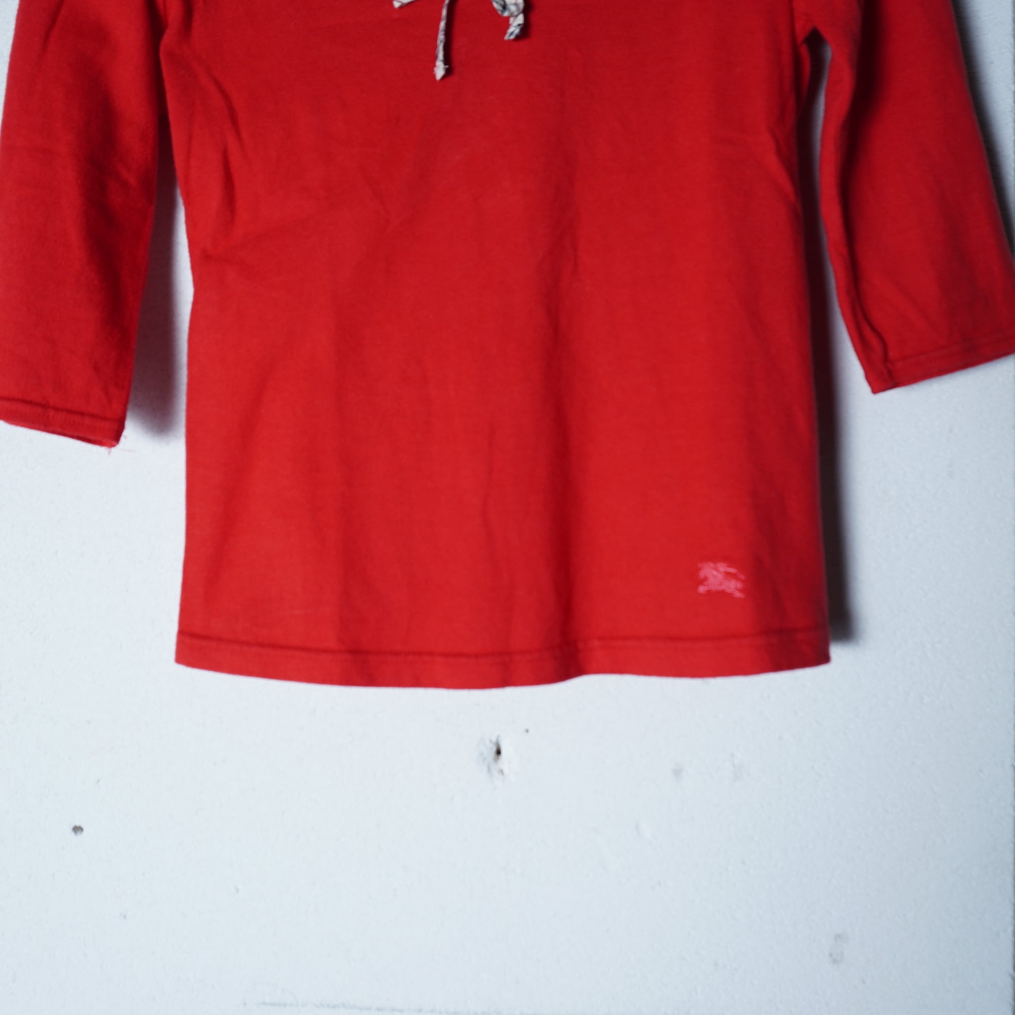 【BURBERRY】バーバリー ホースロゴ刺繡ノバチェックネックリボン七分丈カットソー red