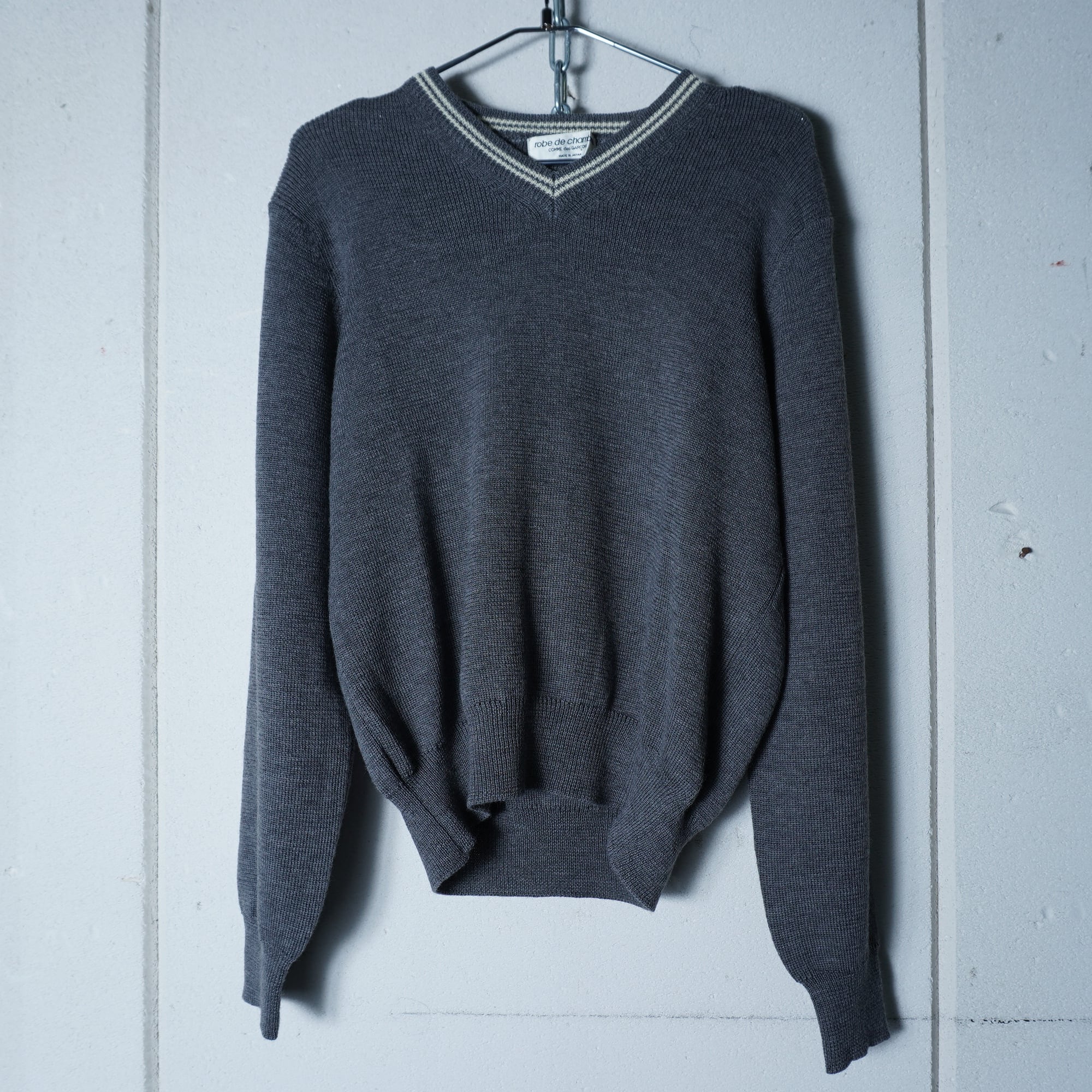 【COMME des GARÇONS】コムデギャルソン 極美品 97年製ウール100%Vネックホワイトラインニット gray