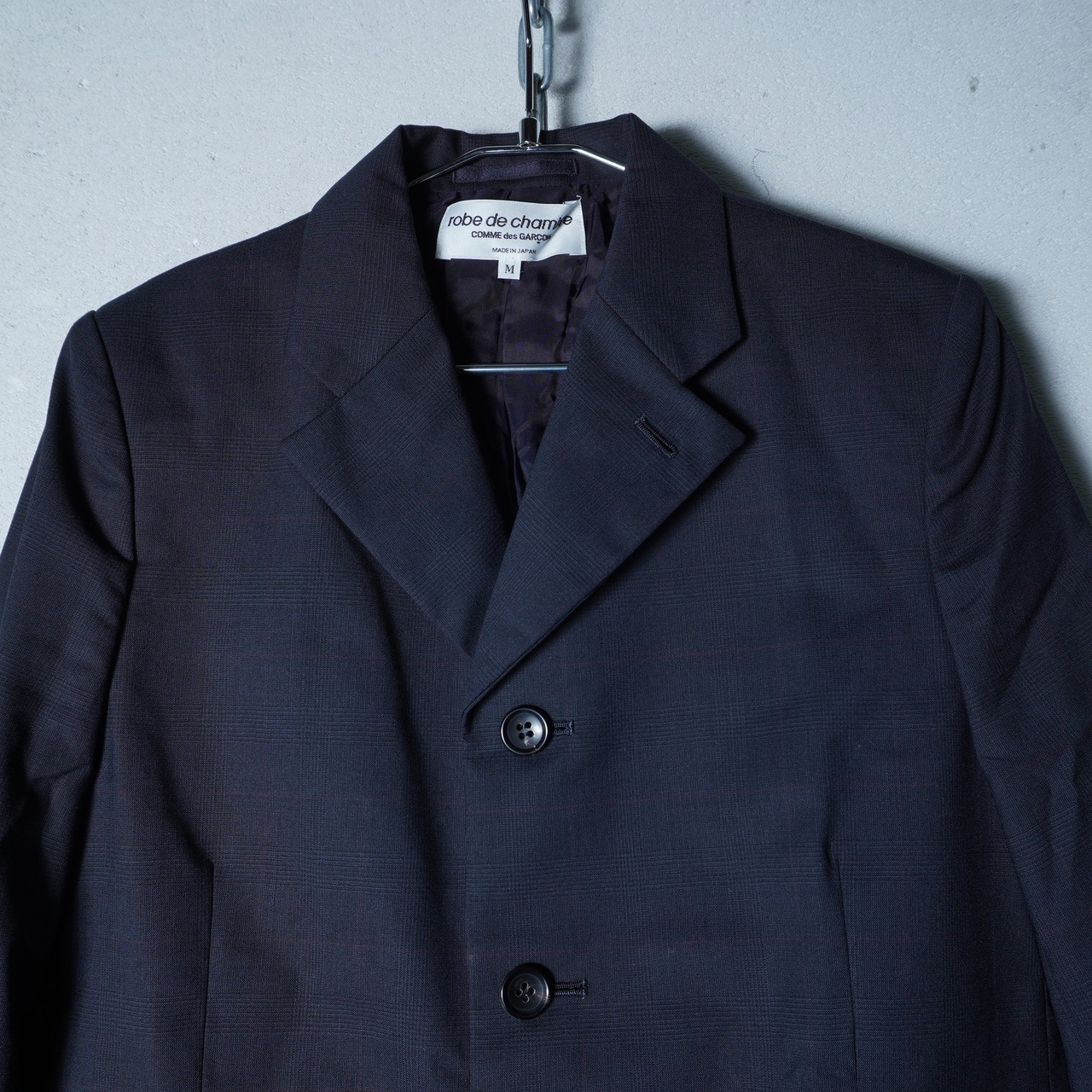 【COMME des GARÇONS】コムデギャルソン 極美品 01年製ウール100%シャドーグレンチェックウールテーラードジャケット dark navy