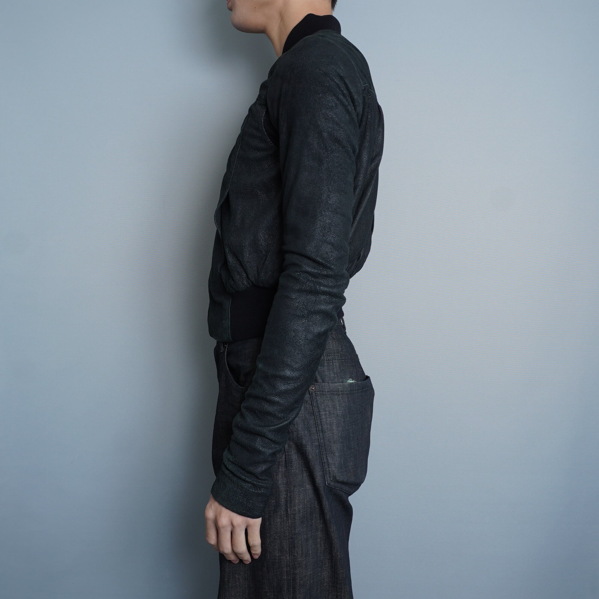 【Rick Owens】リックオウエンス カーフレザーニット切替ギャザージップジャケット black