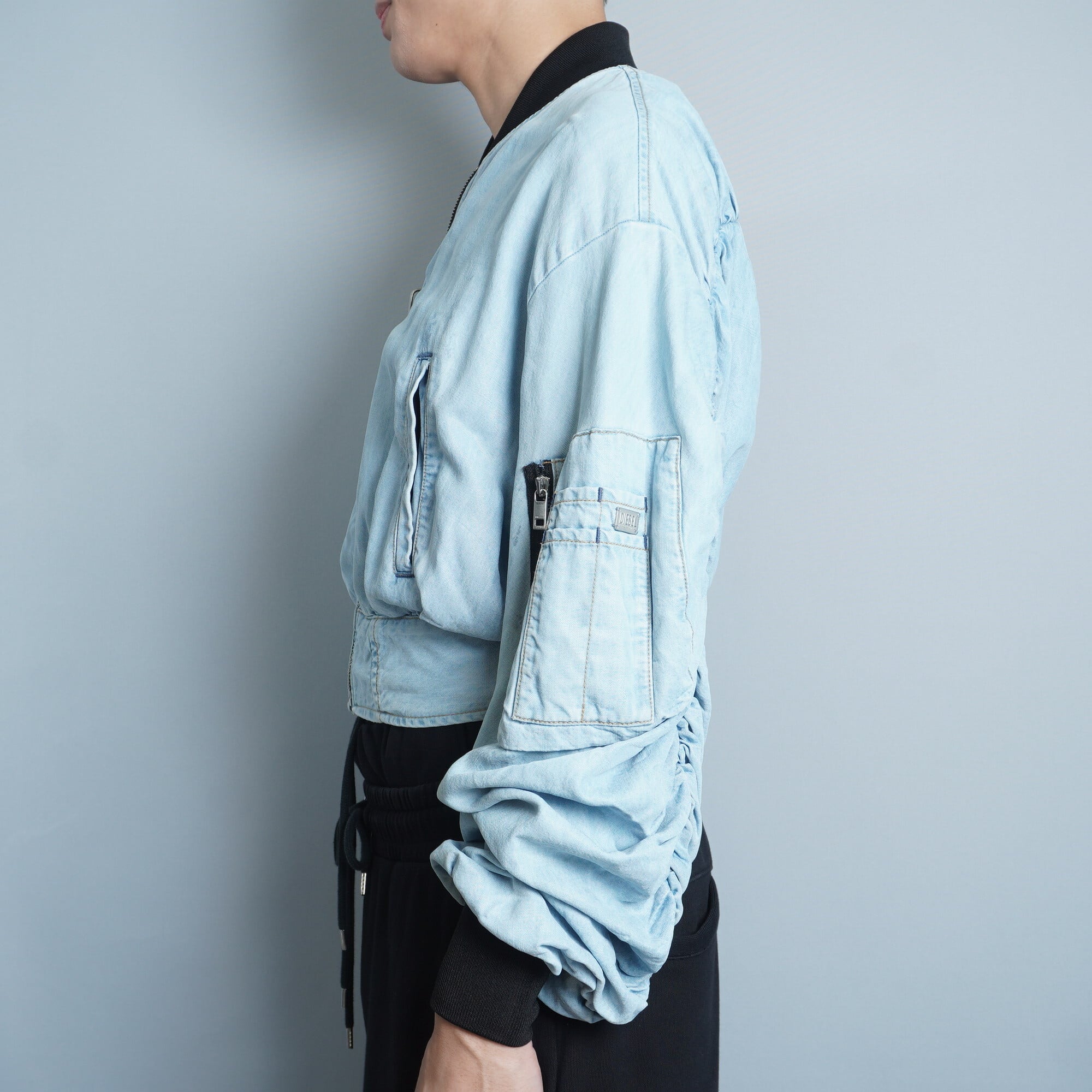 【DIESEL】ディーゼル リヨセル地デニム風ジップアップボンバーブルゾン blue