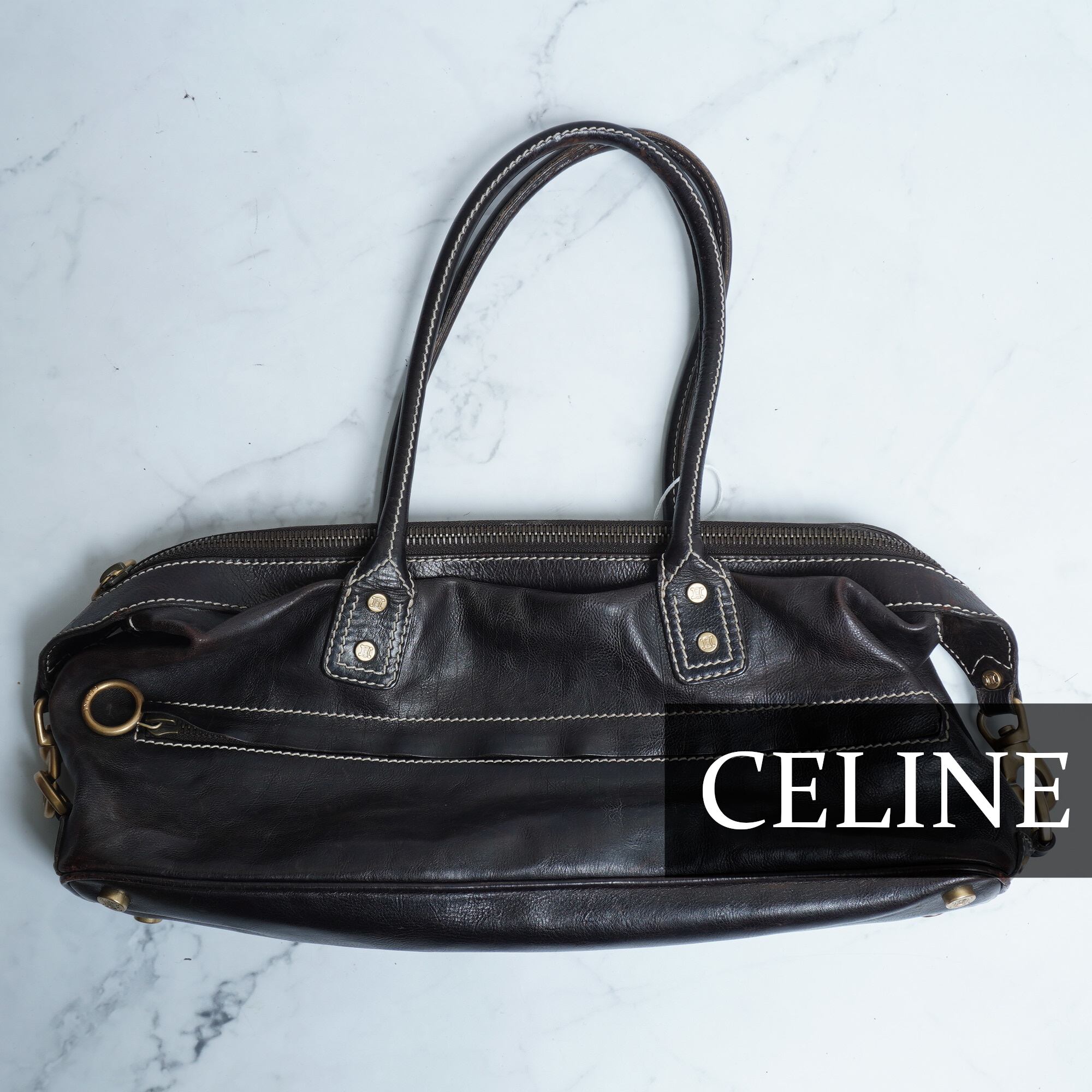 【CELINE】セリーヌ vintage レザー横長ショルダーバッグ brown