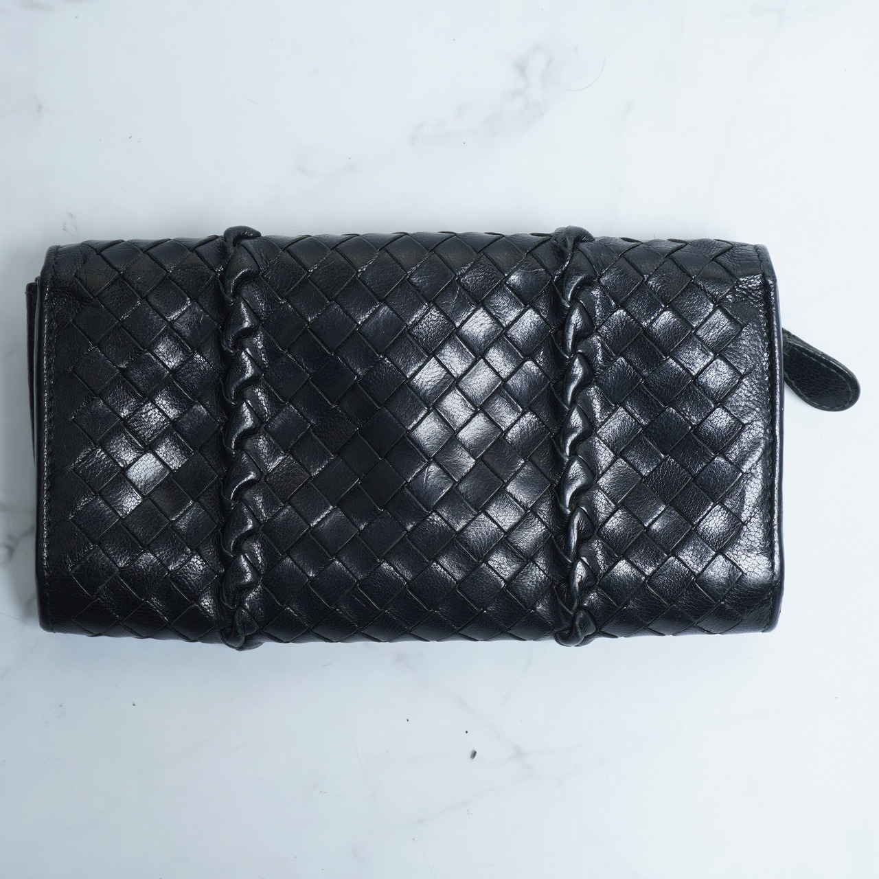 【BOTTEGA VENETA】ボッテガヴェネタ 捻れイントレチャート ターンロック長財布 black