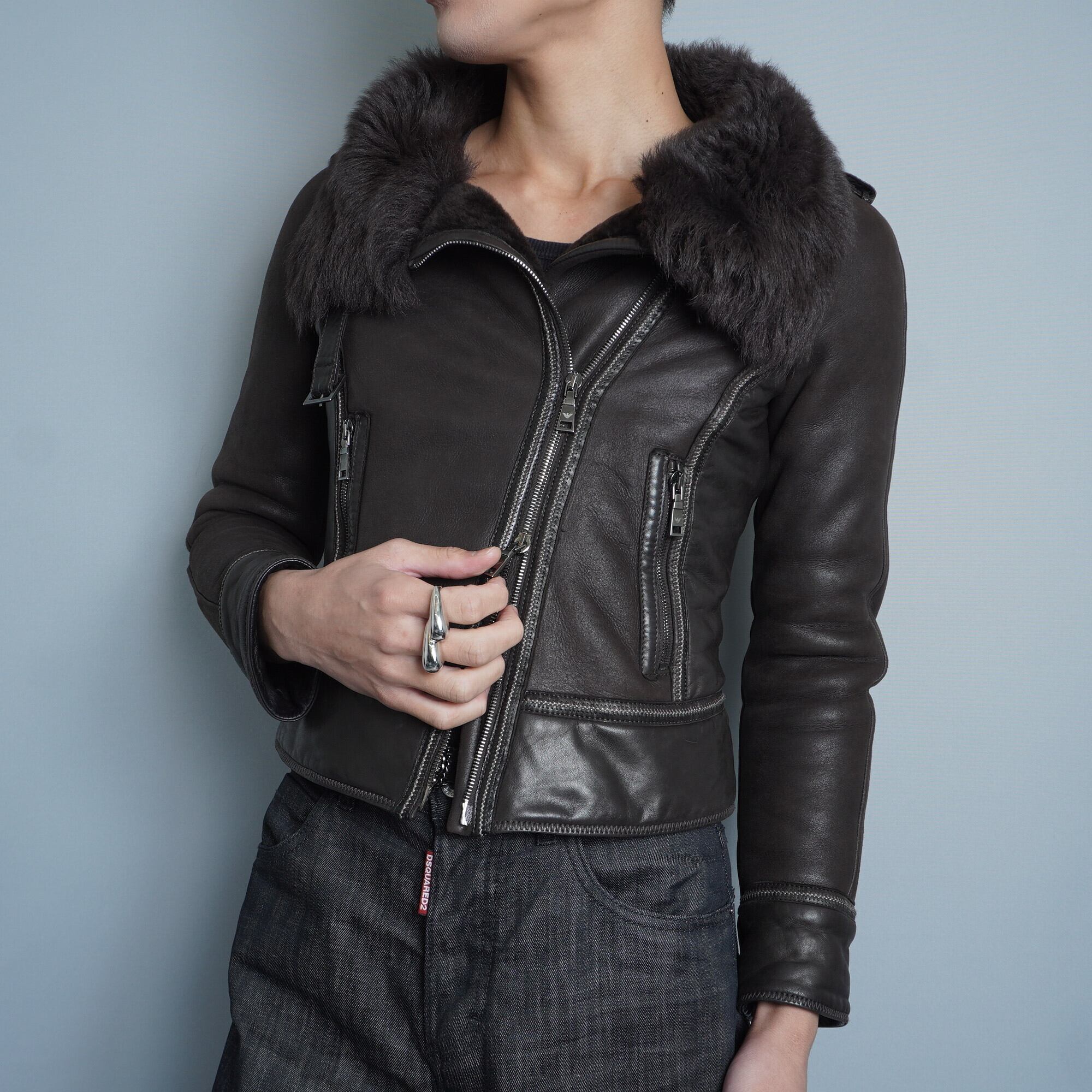 ・洗練されたデザインが魅力の【EMPORIO ARMANI】エンポリオアルマーニ 09AW ARCHIVES ラムレザー裏ボアジッップジャケット brown