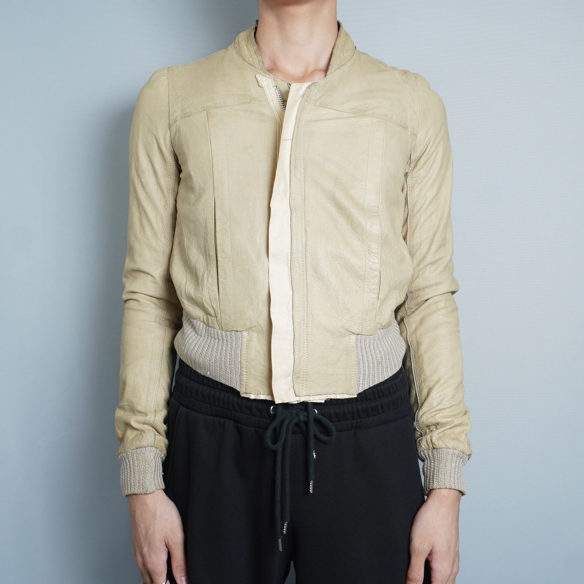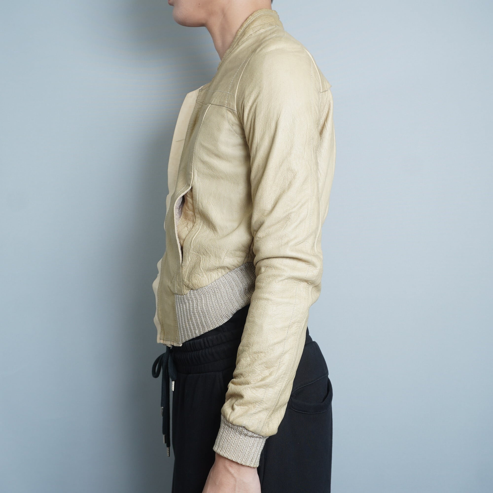・独自の個性を際立たせる【Rick Owens】リックオウエンス イタリア製ラムレザージップギミックジャケット camel