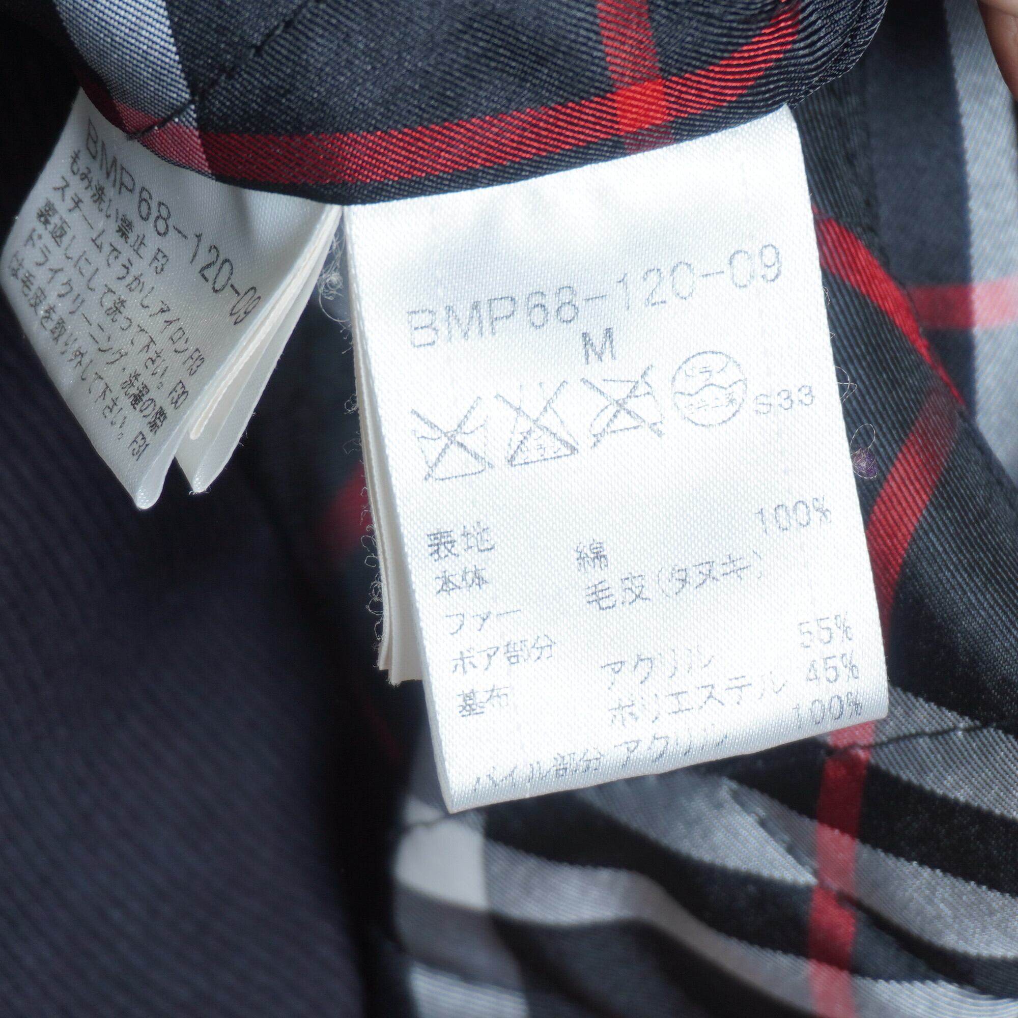 【BURBERRY】バーバリー ブラックレーベル タヌキファー N2-Bジップアップジャケット black