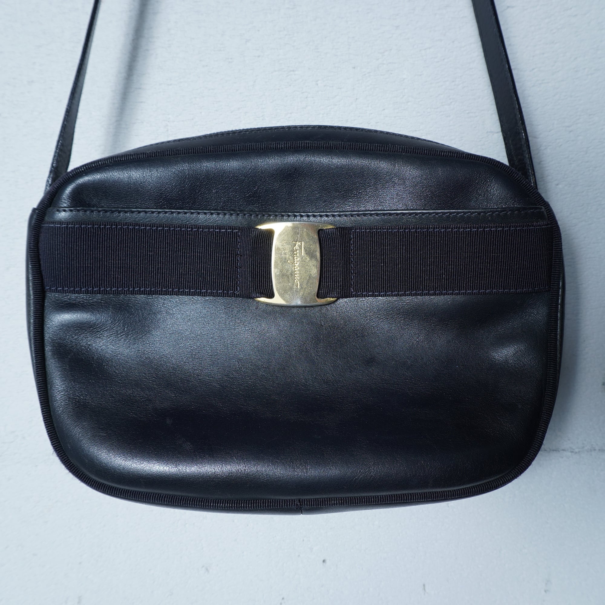 【FERRAGAMO】フェラガモ "ロゴ入" ヴァラ レザーショルダーバッグ black size2