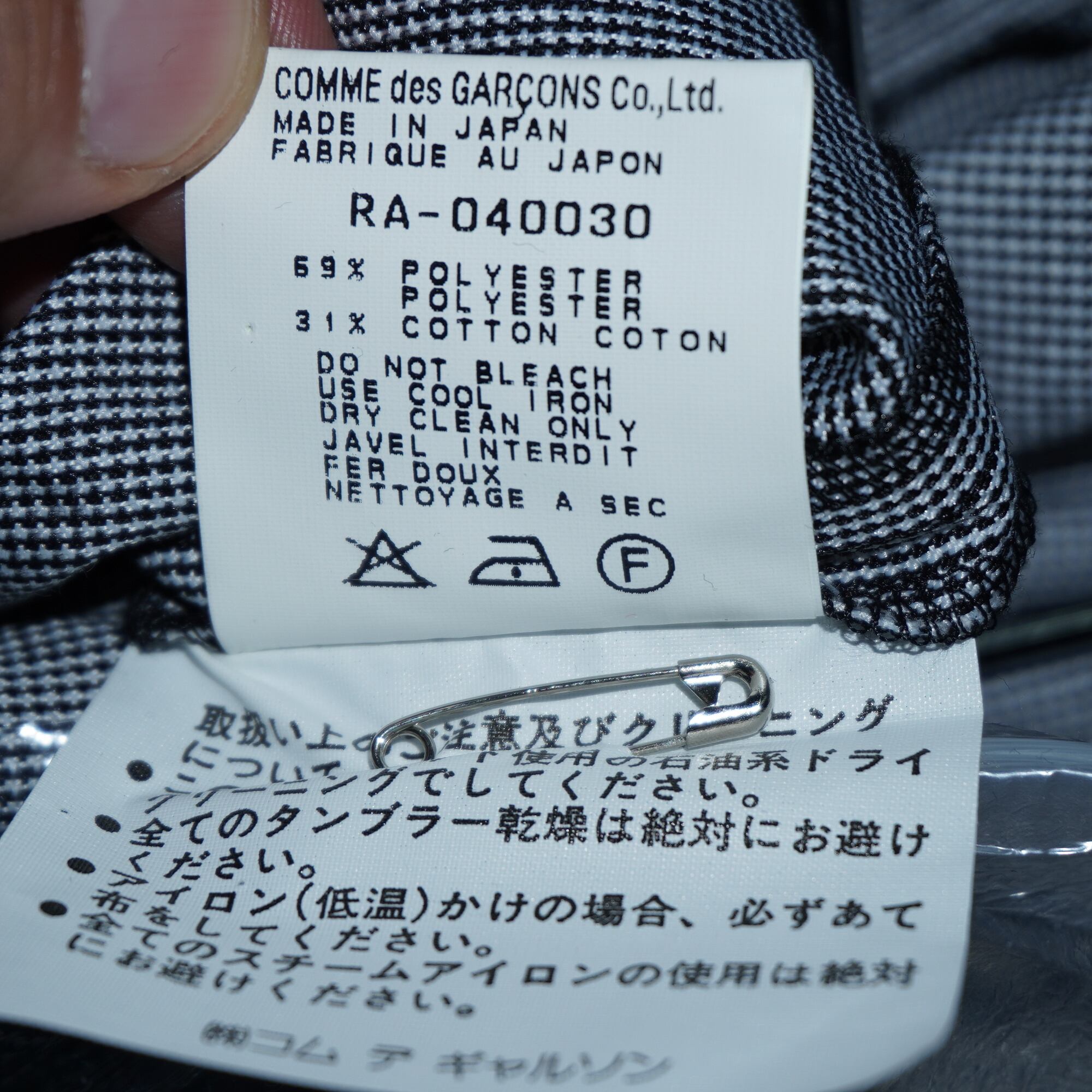 【COMME des GARÇONS】コムデギャルソン "極美品” 96年製 マイクロ千鳥格子柄ノースリーブポリコットンワンピース white&black