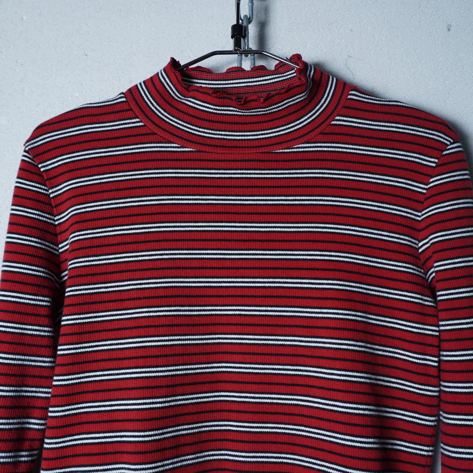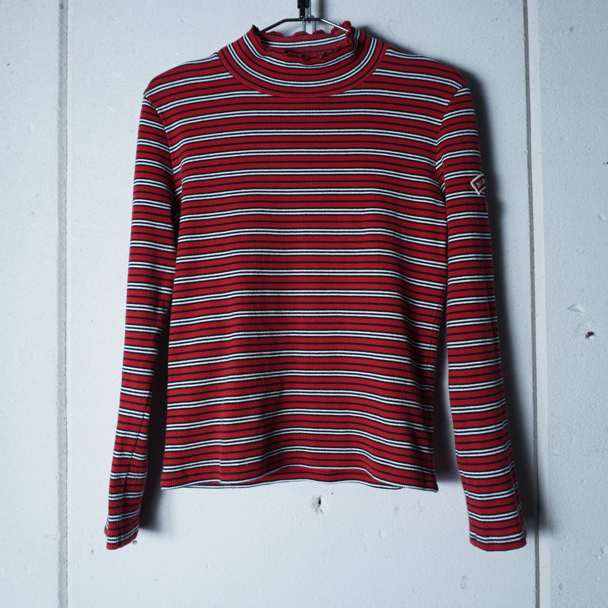 【BURBERRY】バーバリー ロゴ入 ハイネックボーダーニット red