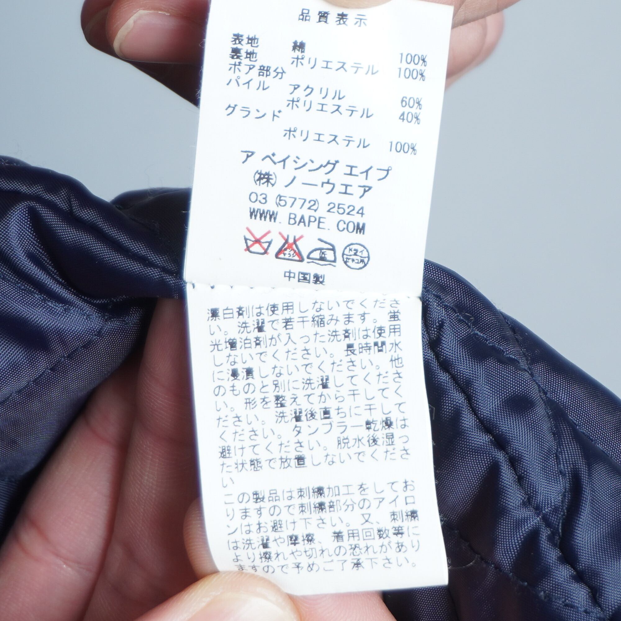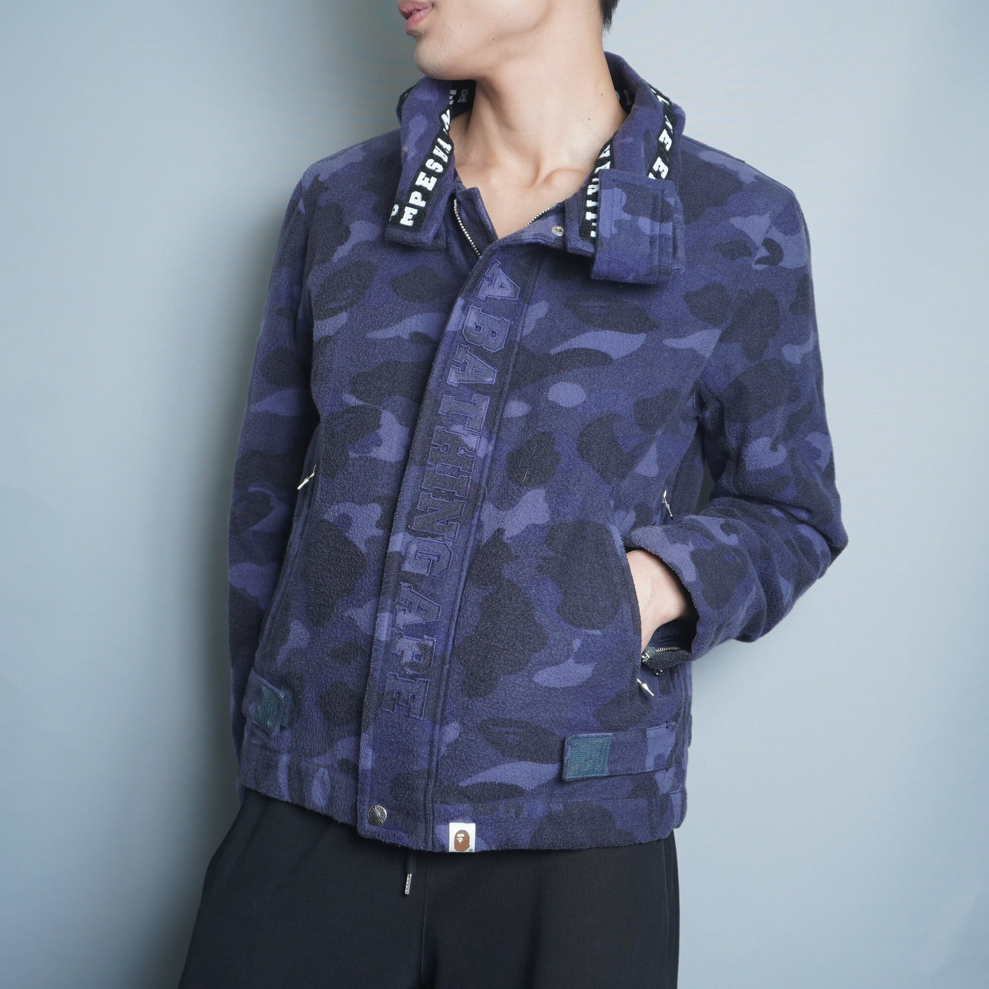 【A BATHING APE】アベイシングエイプ コットンフリース エイプカモ刺繍バディングジャケット blue