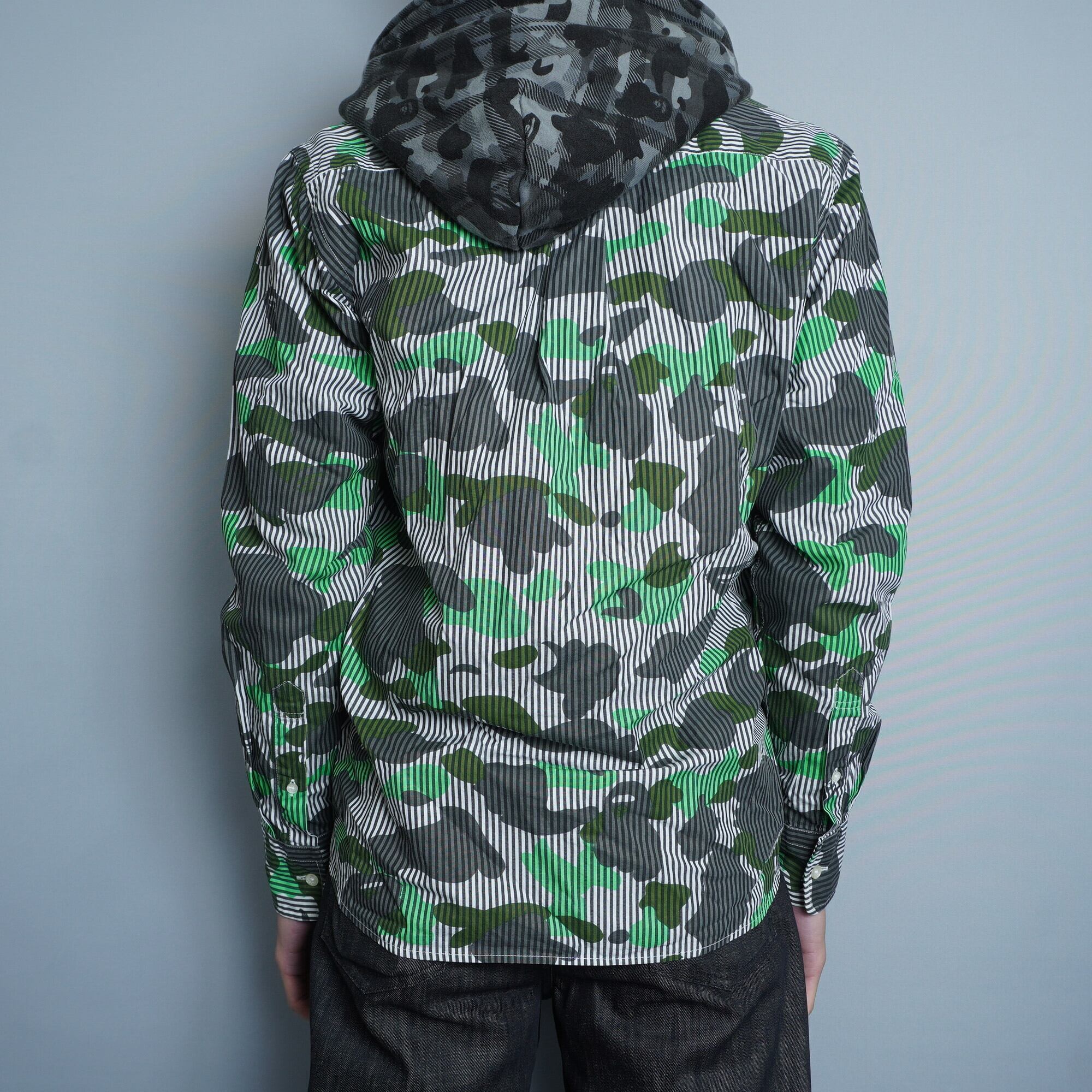 【A BATHING APE】アベイシングべイプ エイプカモストライプコットンブロードシャツ green