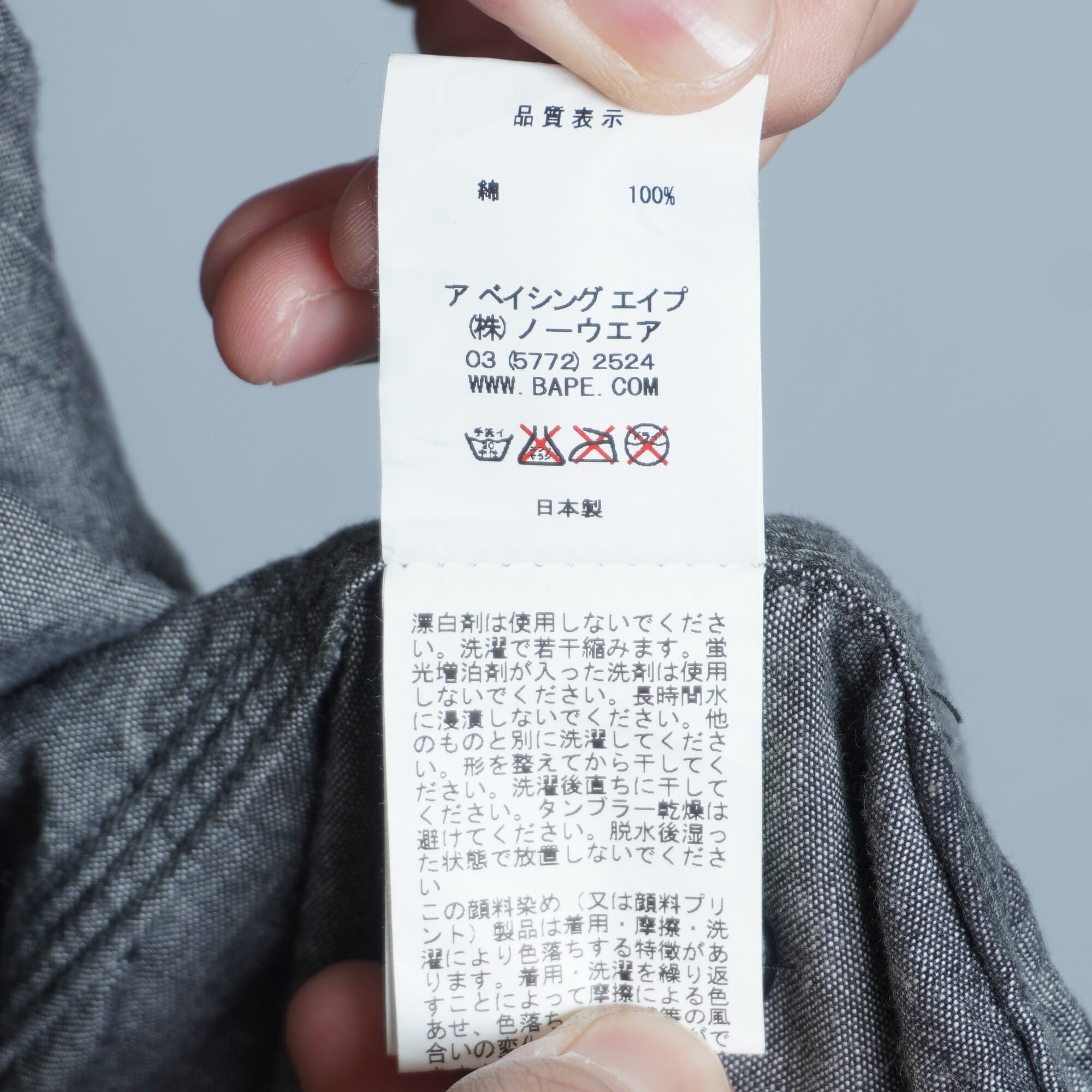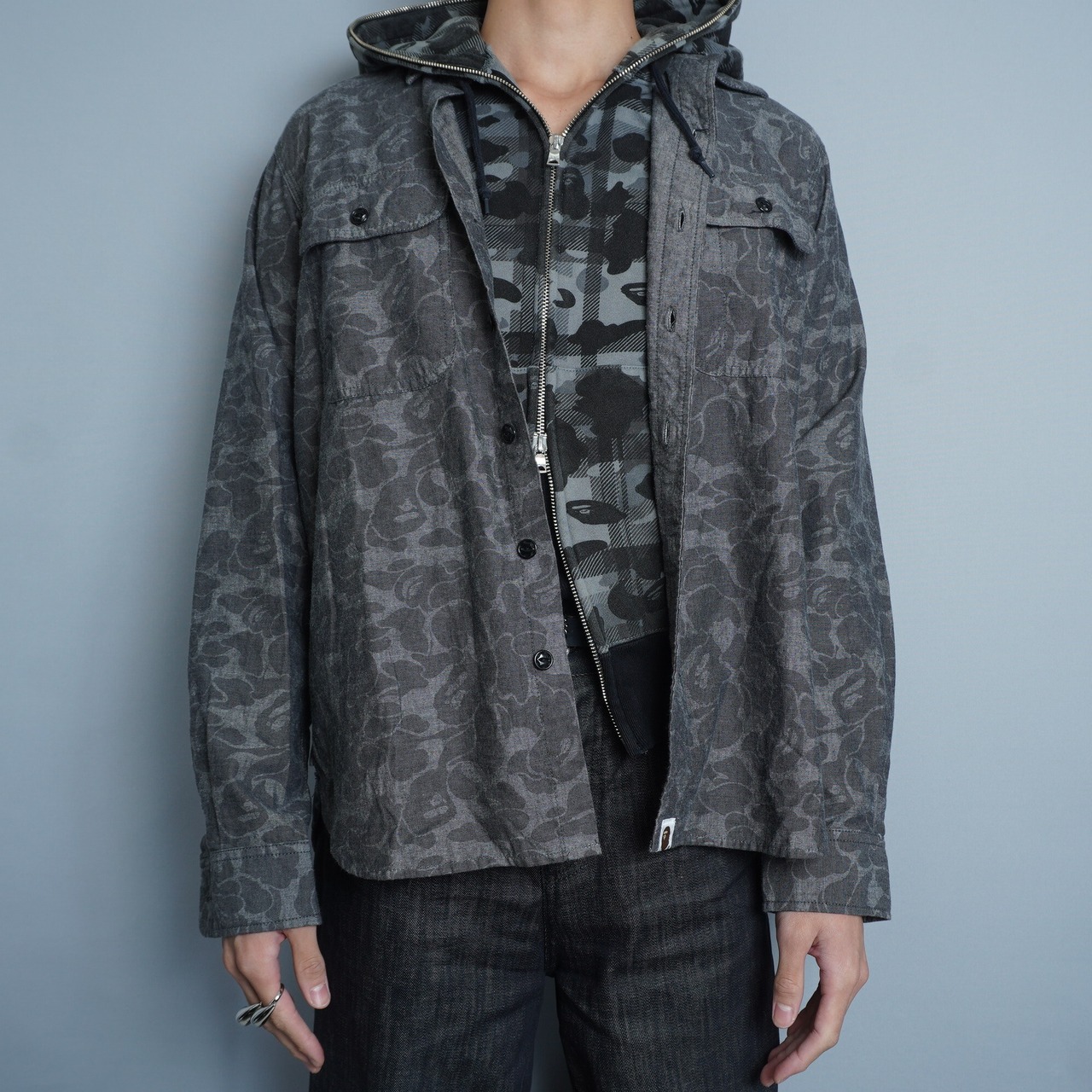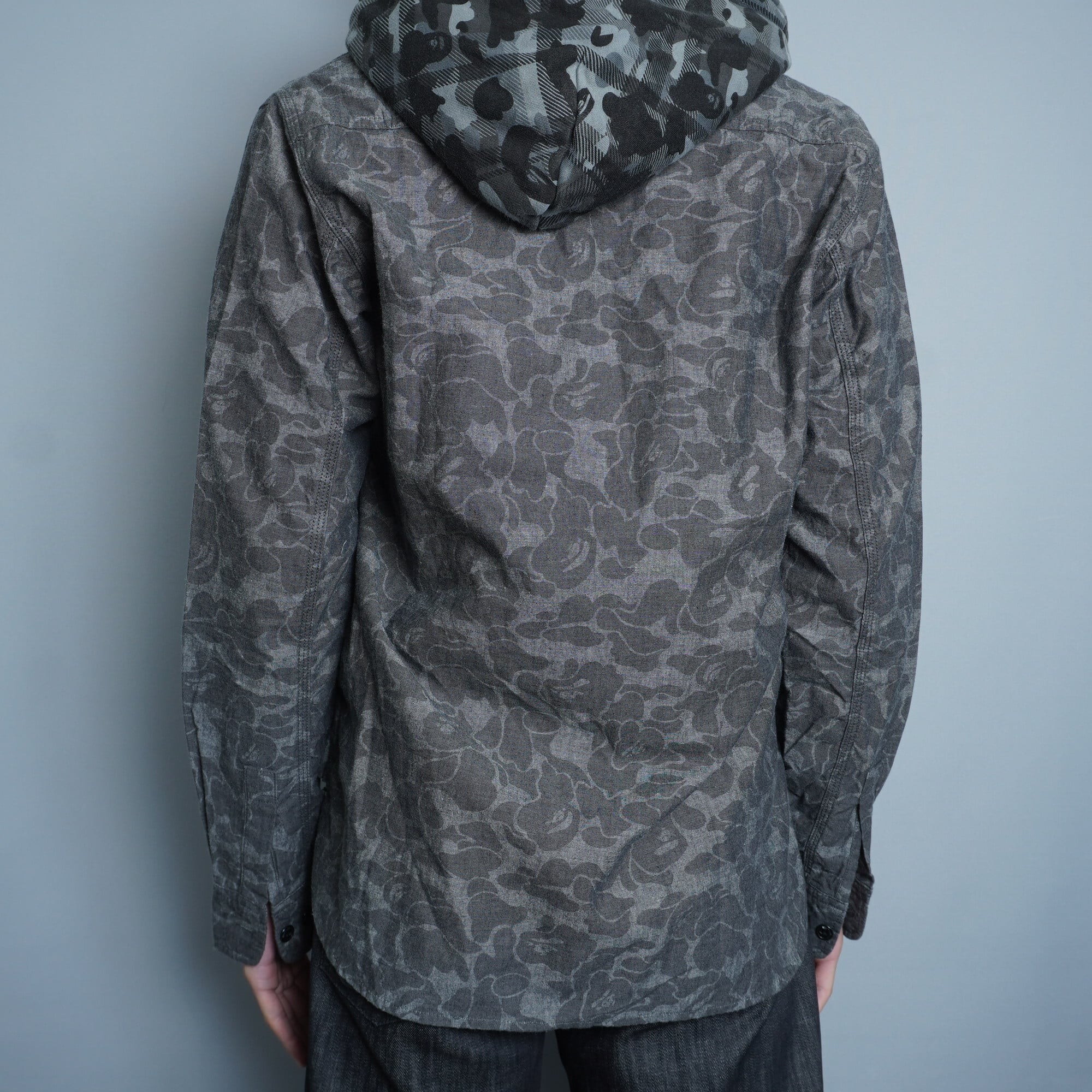 【A BATHING APE】アベイシングエイプ 日本製シャドーエイプコットンワークシャツ grey