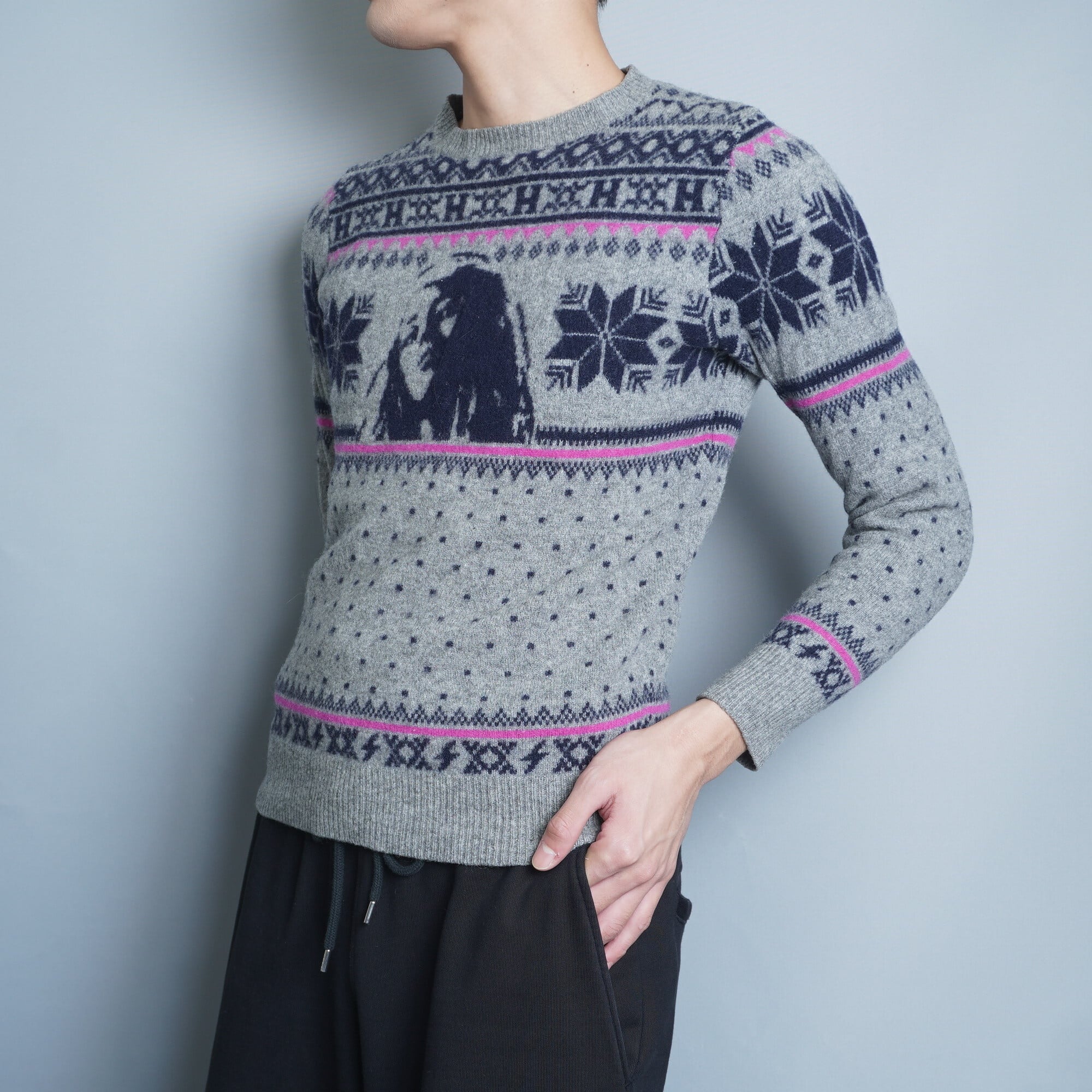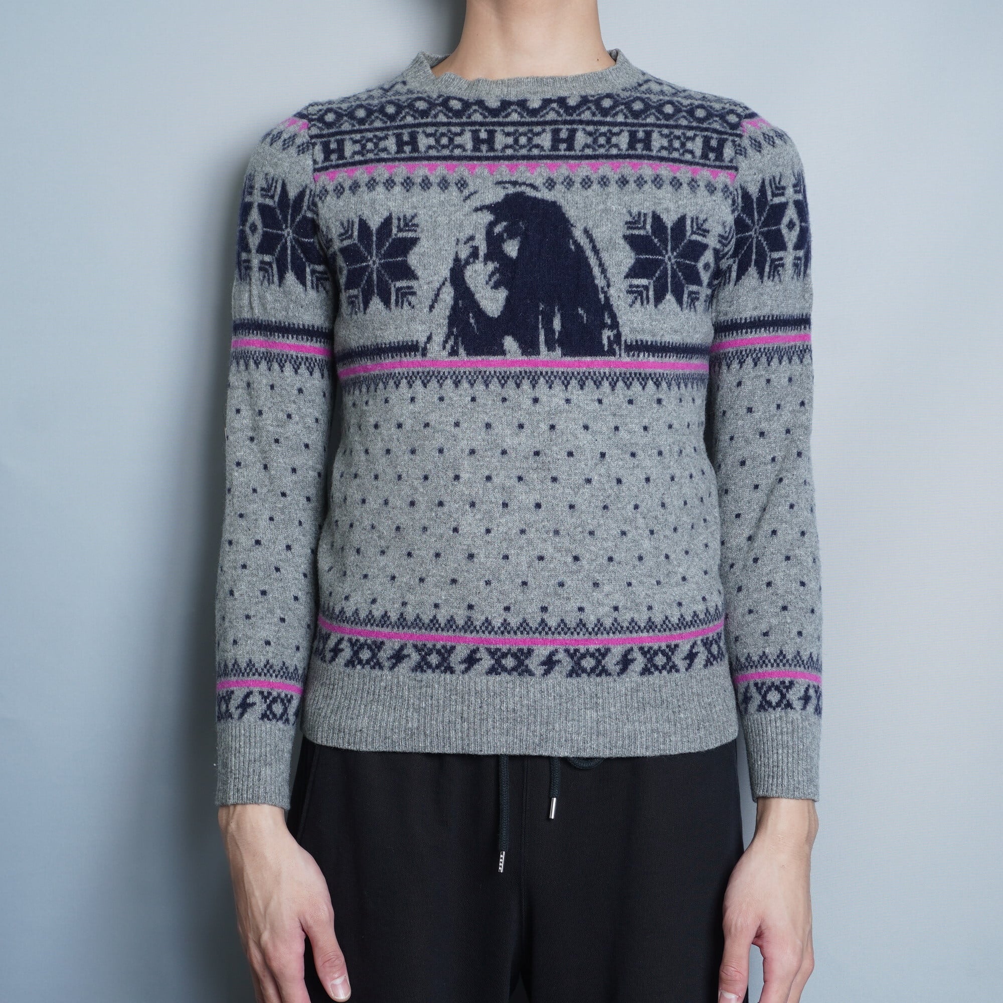【HYSTERIC GLAMOUR】ヒステリックグラマー ヒスガールデザインウールニット grey