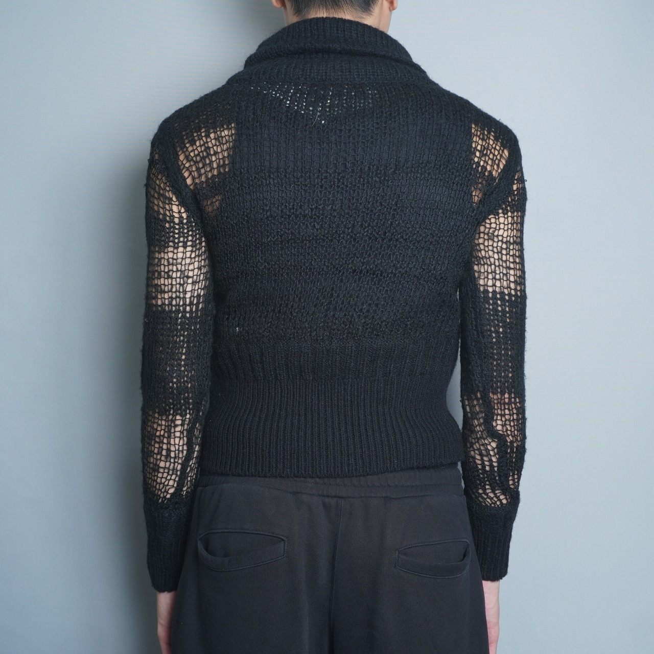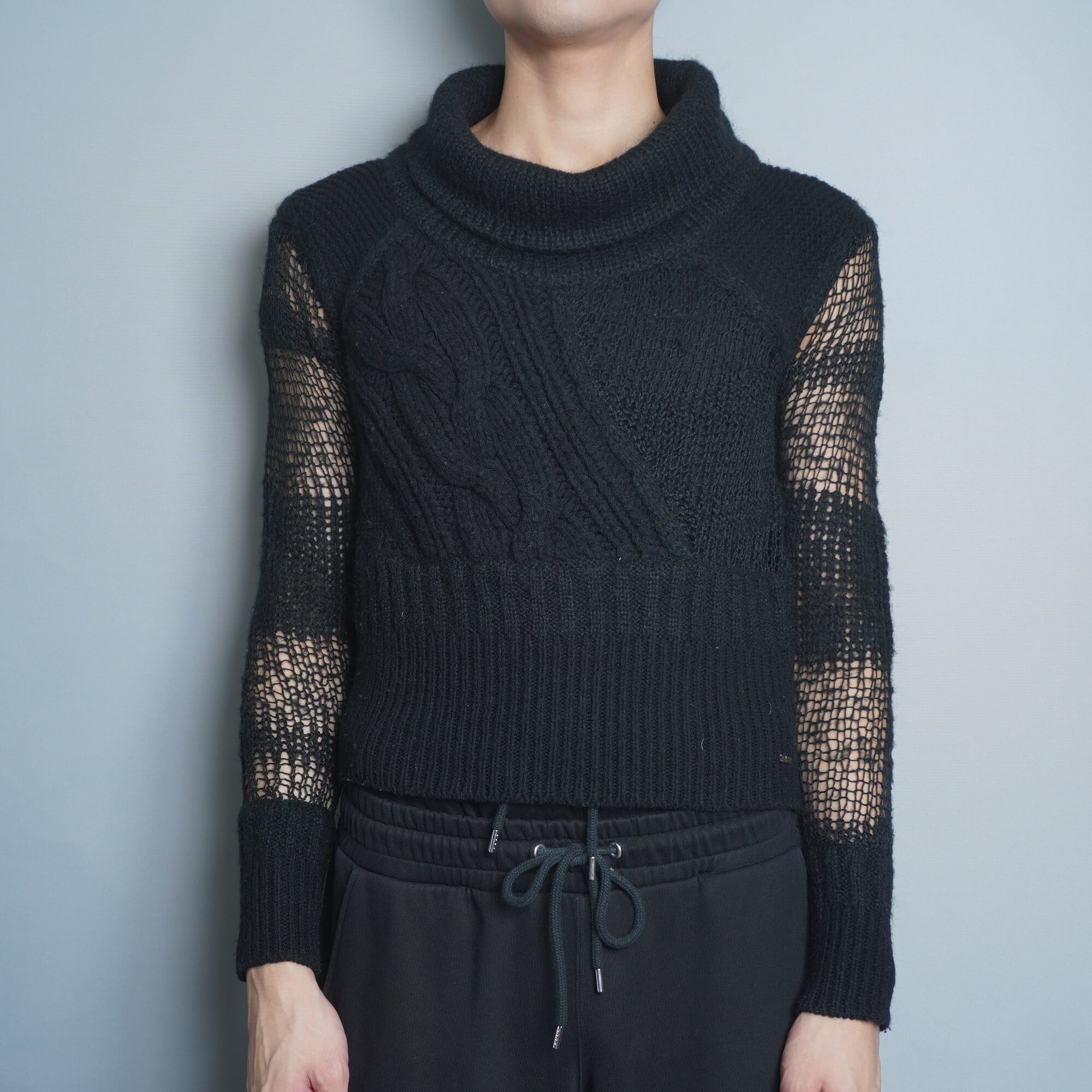 【DIESEL】ディーゼル アクリル×ウール×ナイロン×モヘア 切替ドレープネックニットソー black