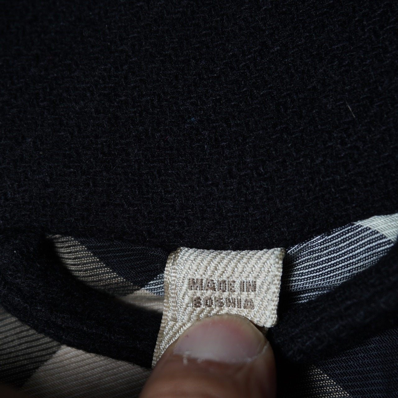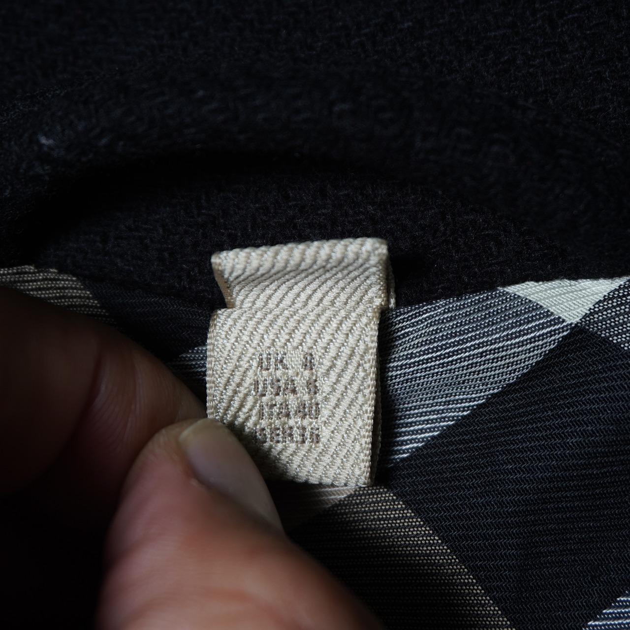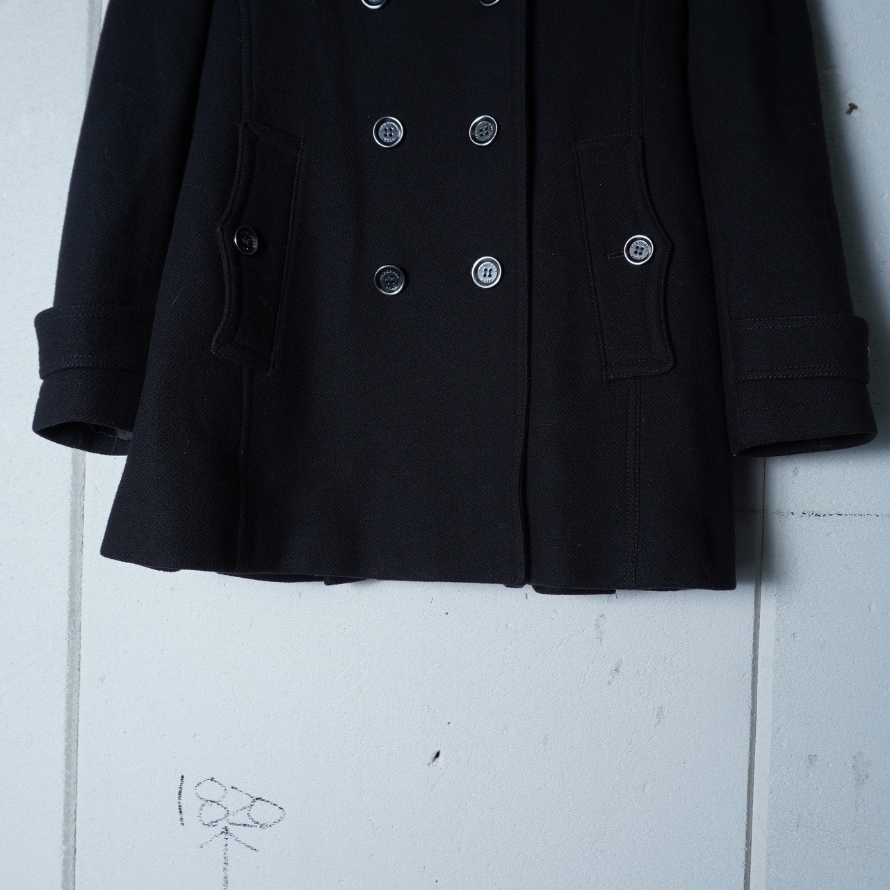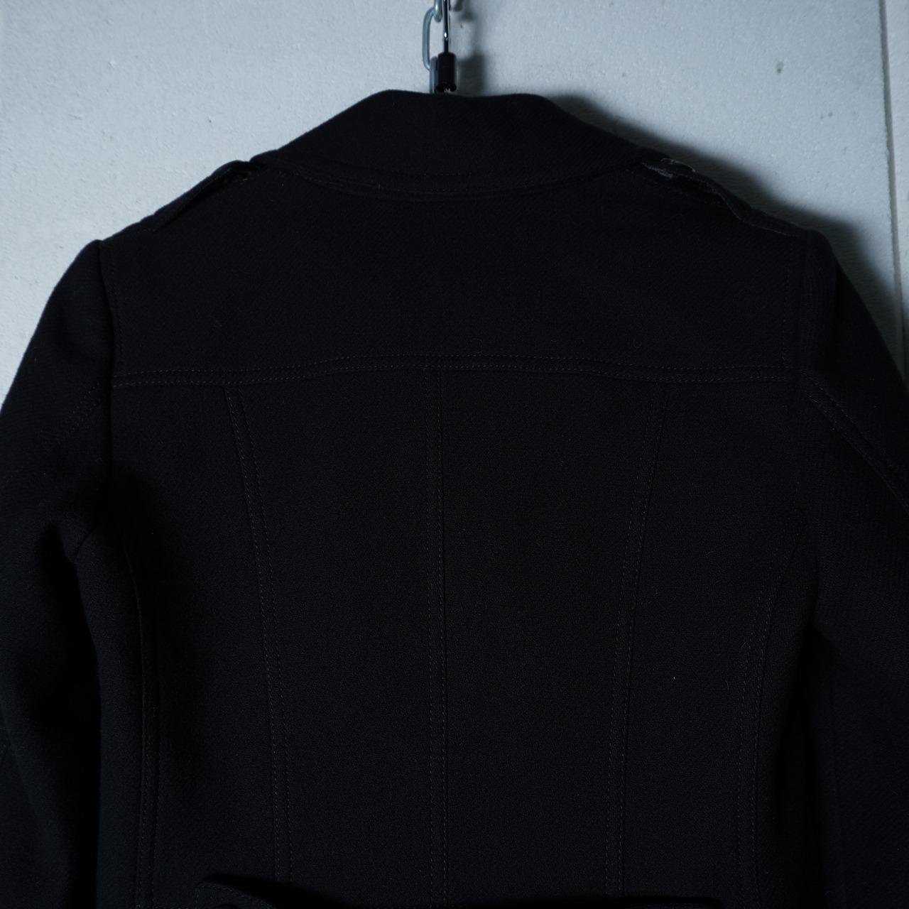【BURBERRY】 バーバリー "メタルロゴボタン” ダブルブレストウールハーフコート black