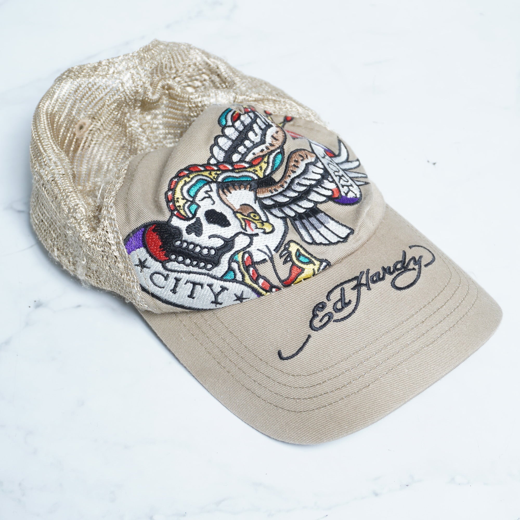【Ed Hardy】スカル刺繡スナップバックメッシュキャップ