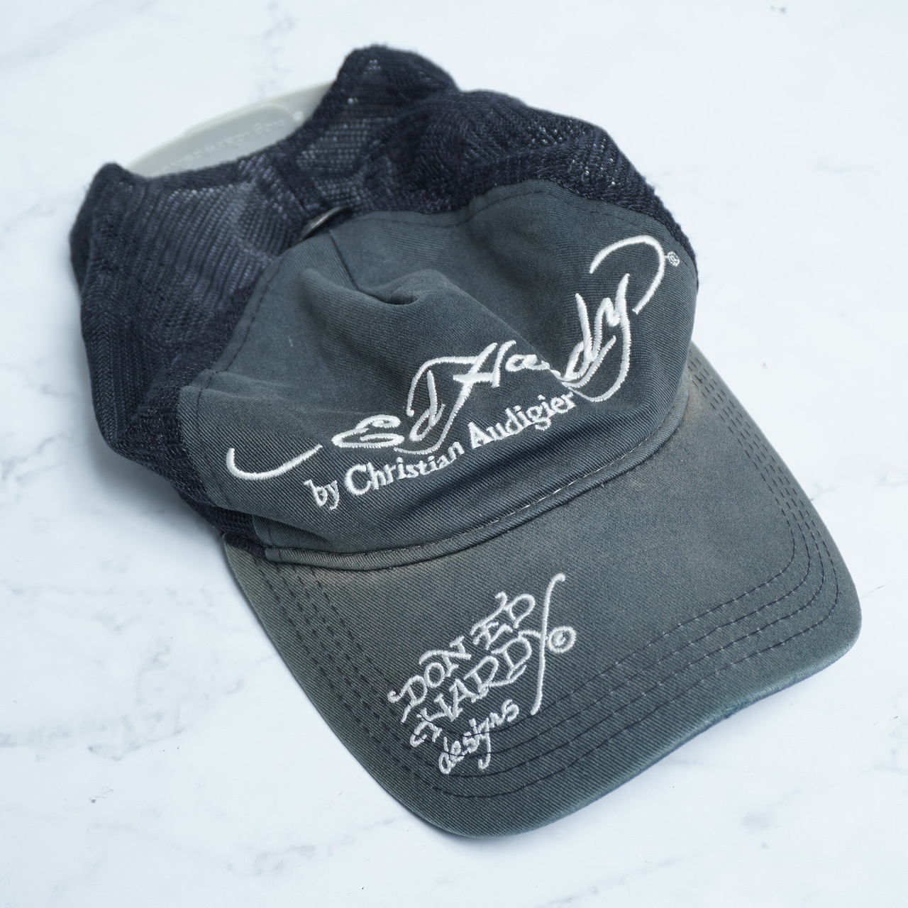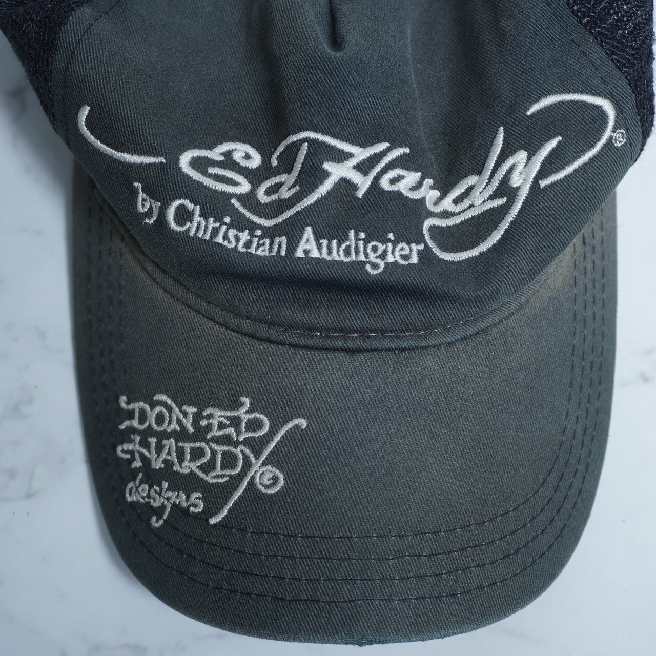 【Ed Hardy】ロゴ刺繡スナップバックメッシュキャップ