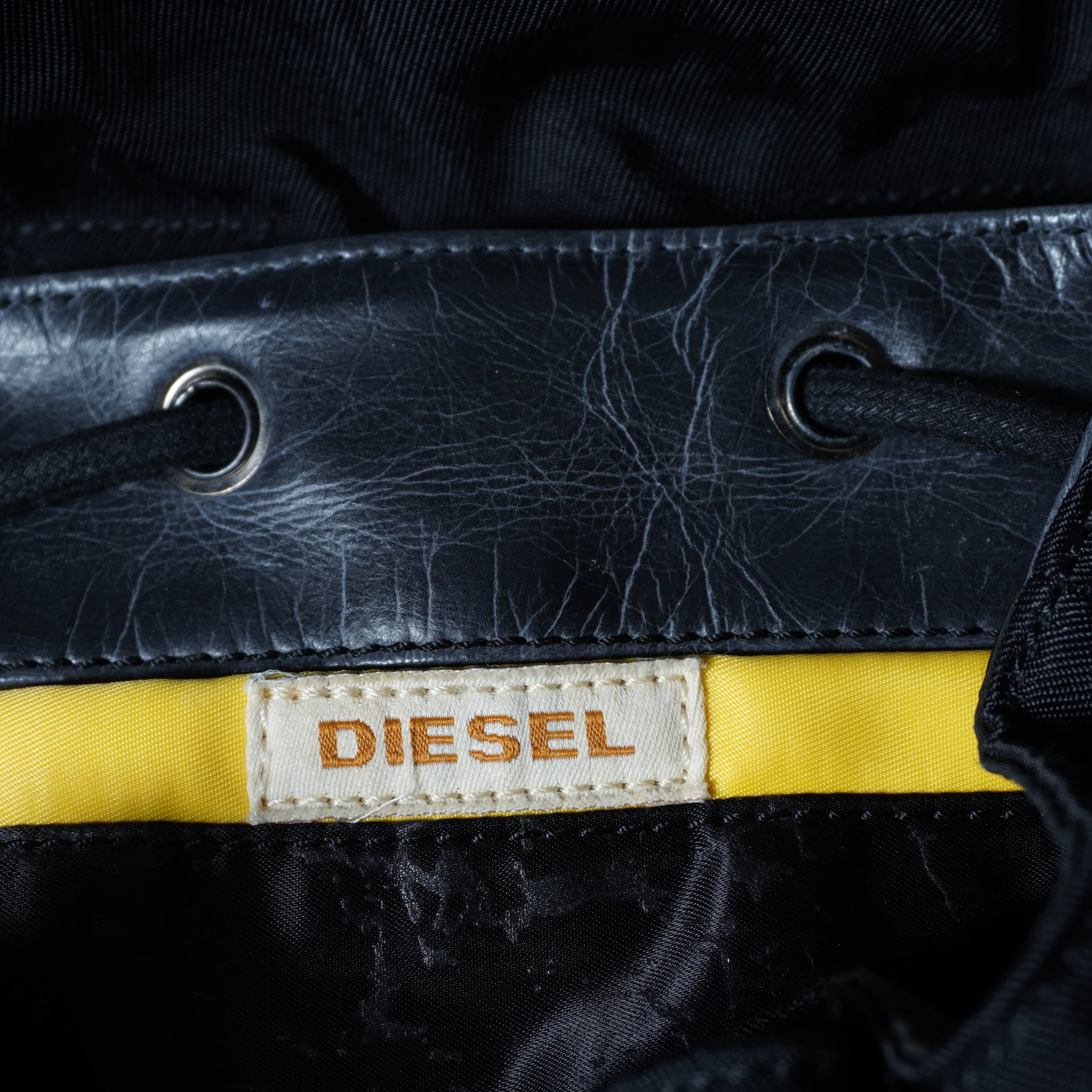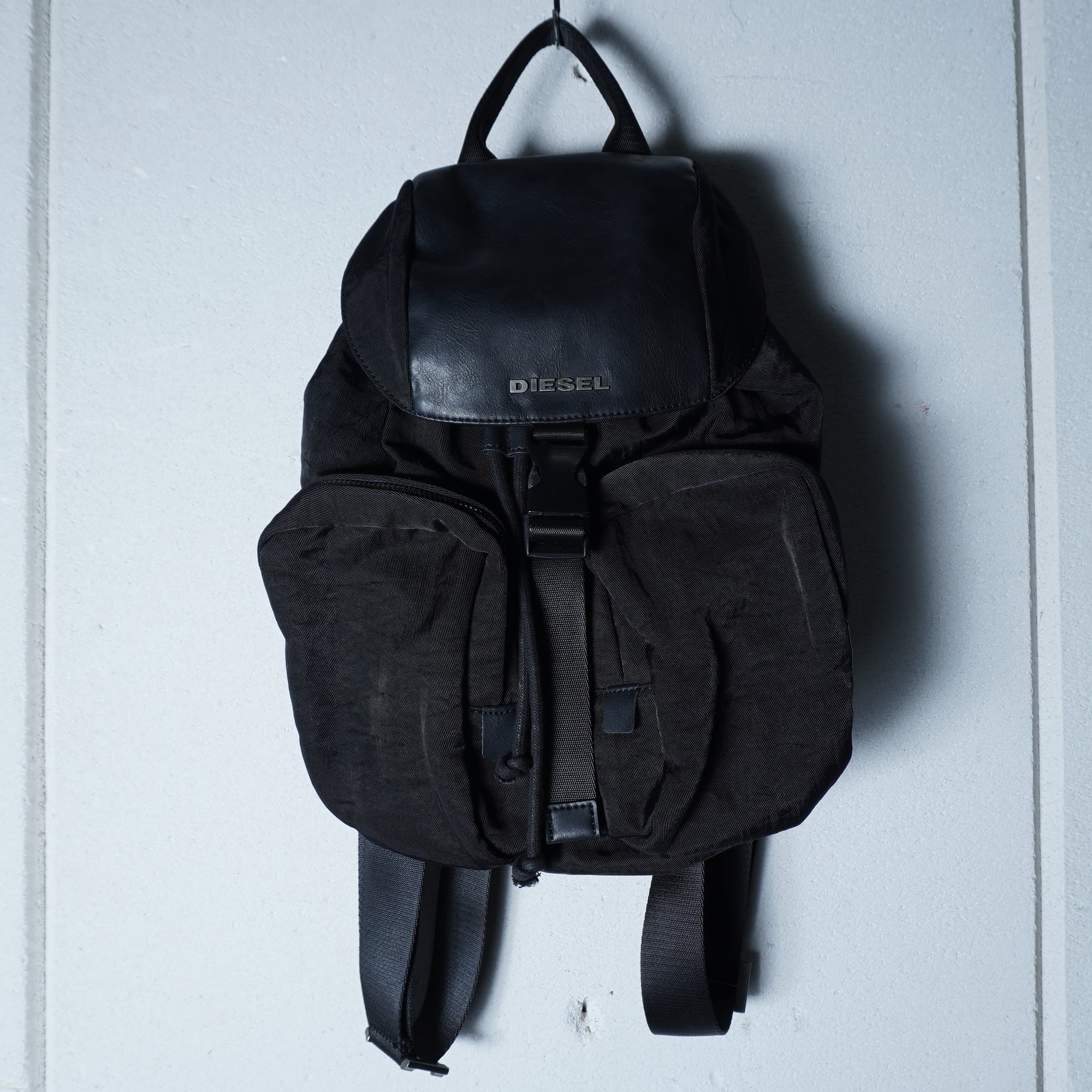 【DIESEL】ディーゼル ”ロゴ入”フラップトップレザー切替ナイロンバックパックリュック black