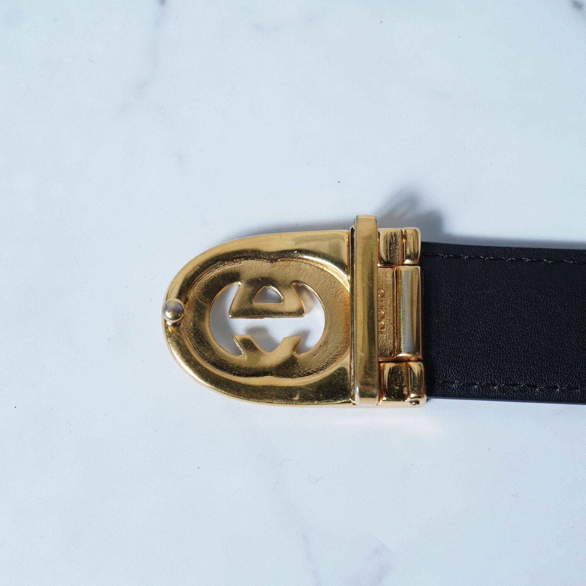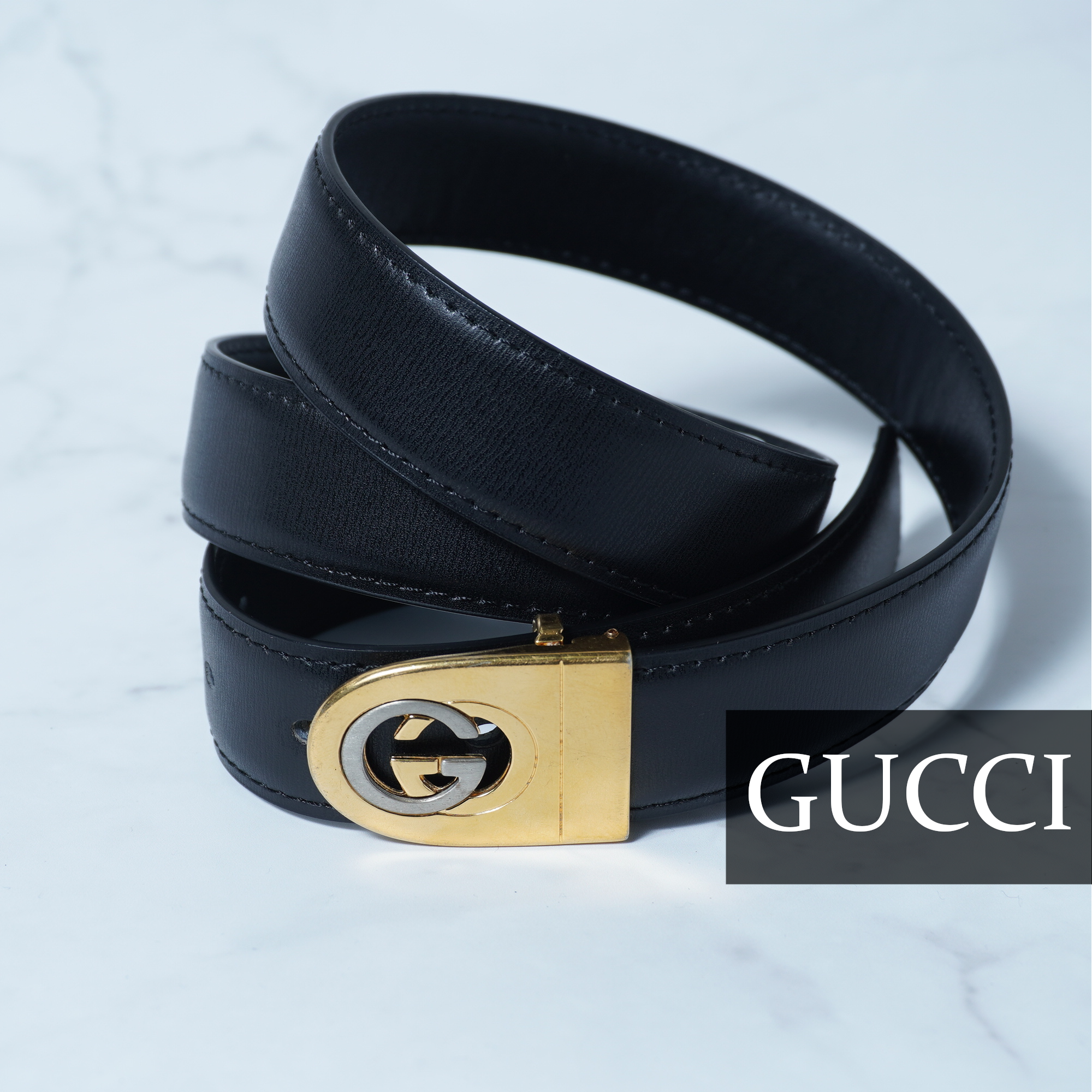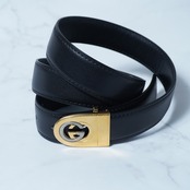 【GUCCI】グッチ ロゴ入 ゴールドバックルレザー black