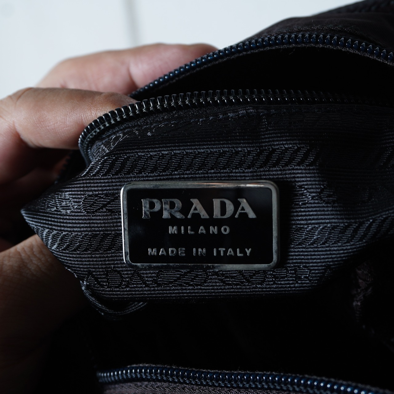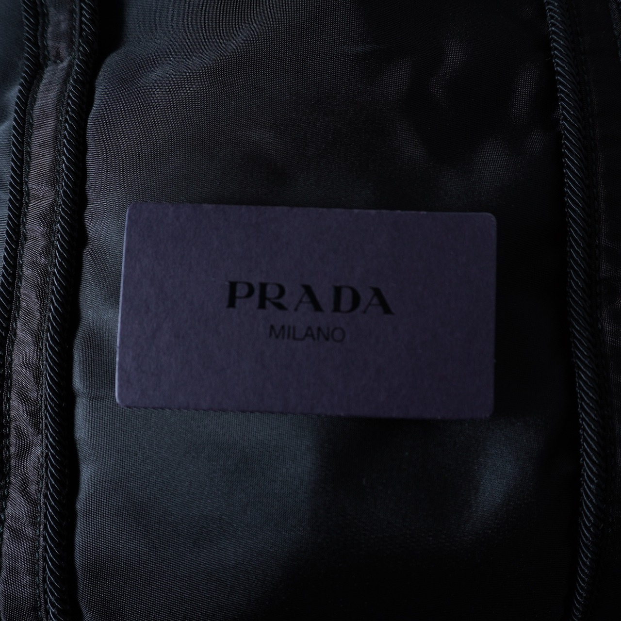 ・プラダのアイコニックな刺繍ロゴが、シンプルながらも存在感を引き立てる