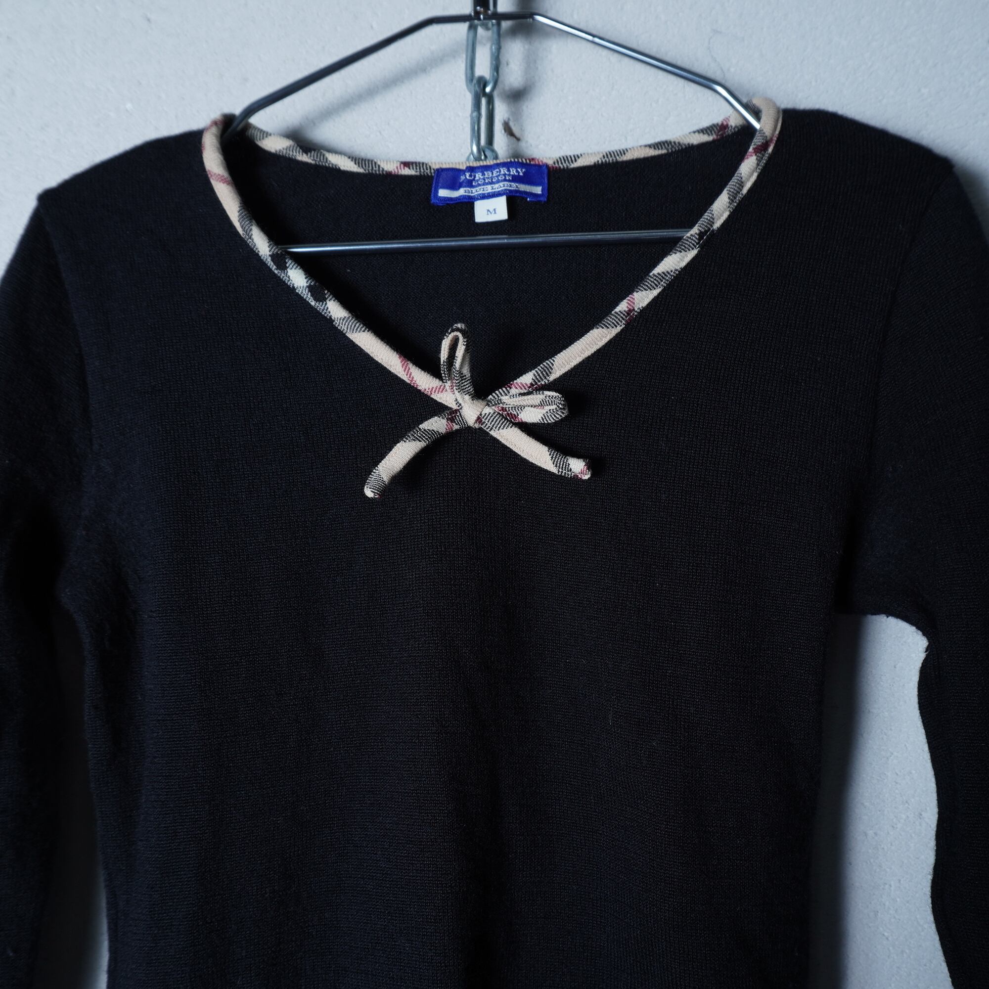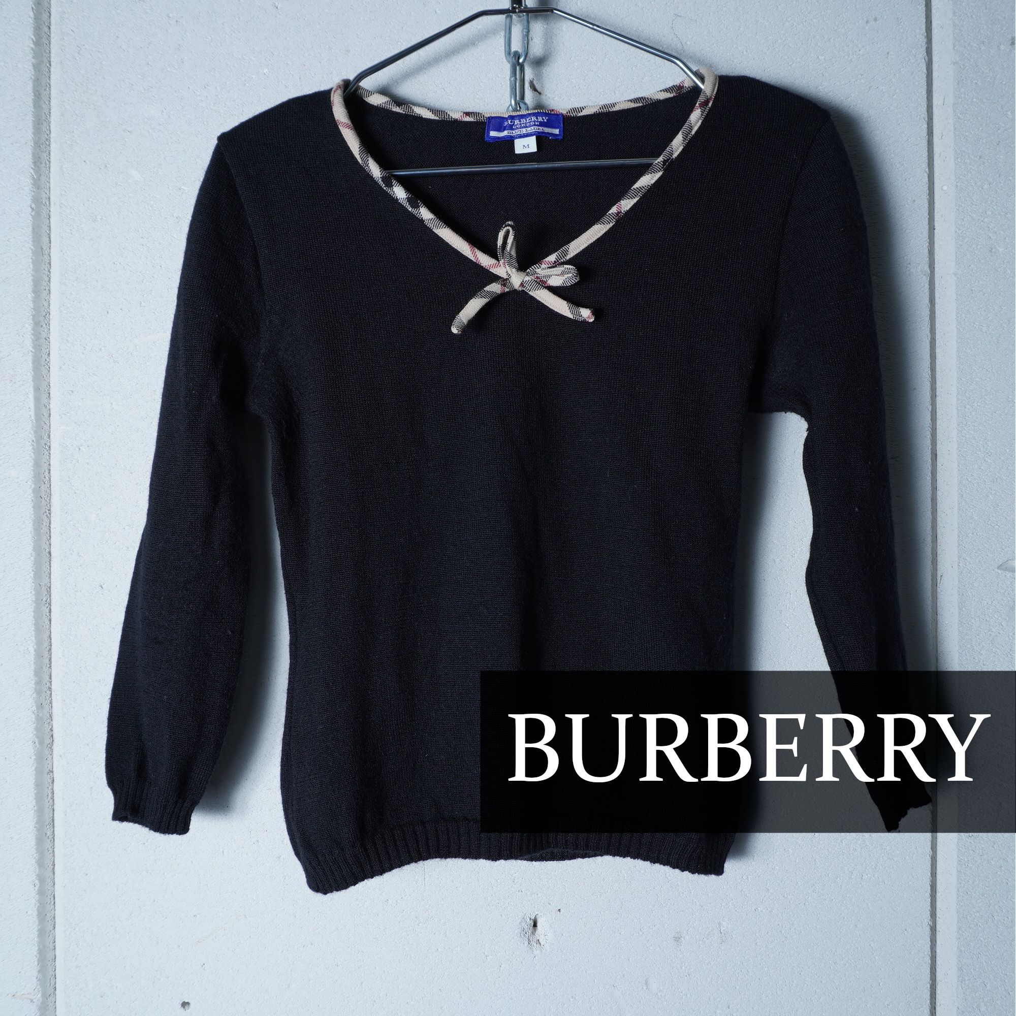 【BURBERRY】バーバリー ”WOOL100%”ノバチェックネックリボンニット black