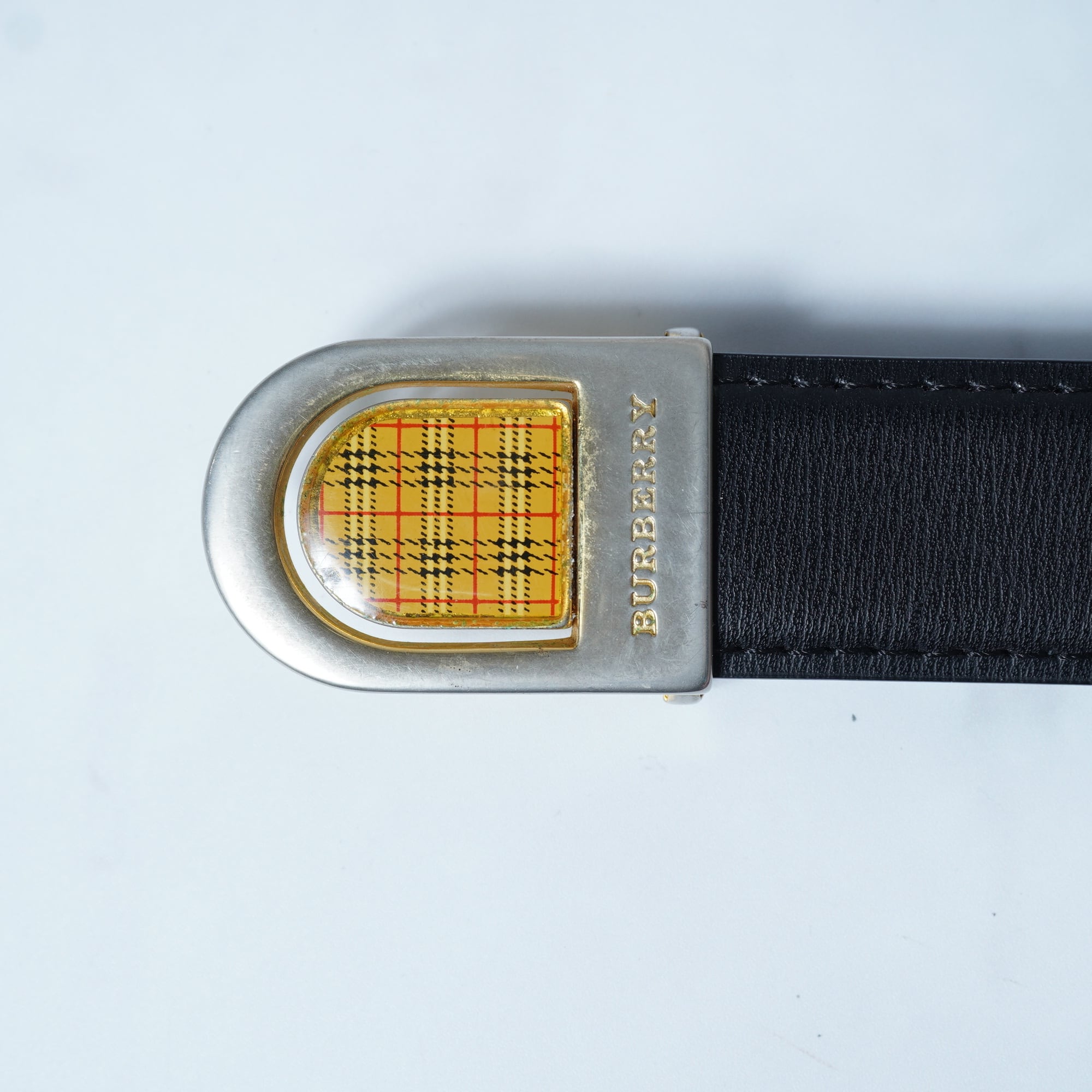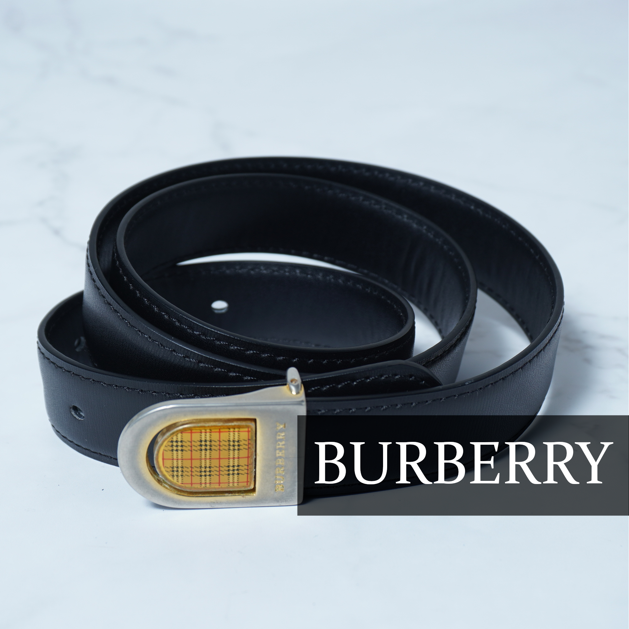 【BURBERRY】バーバリー”ロゴ入” ノヴァチェックゴールドバックルレザーベルト black
