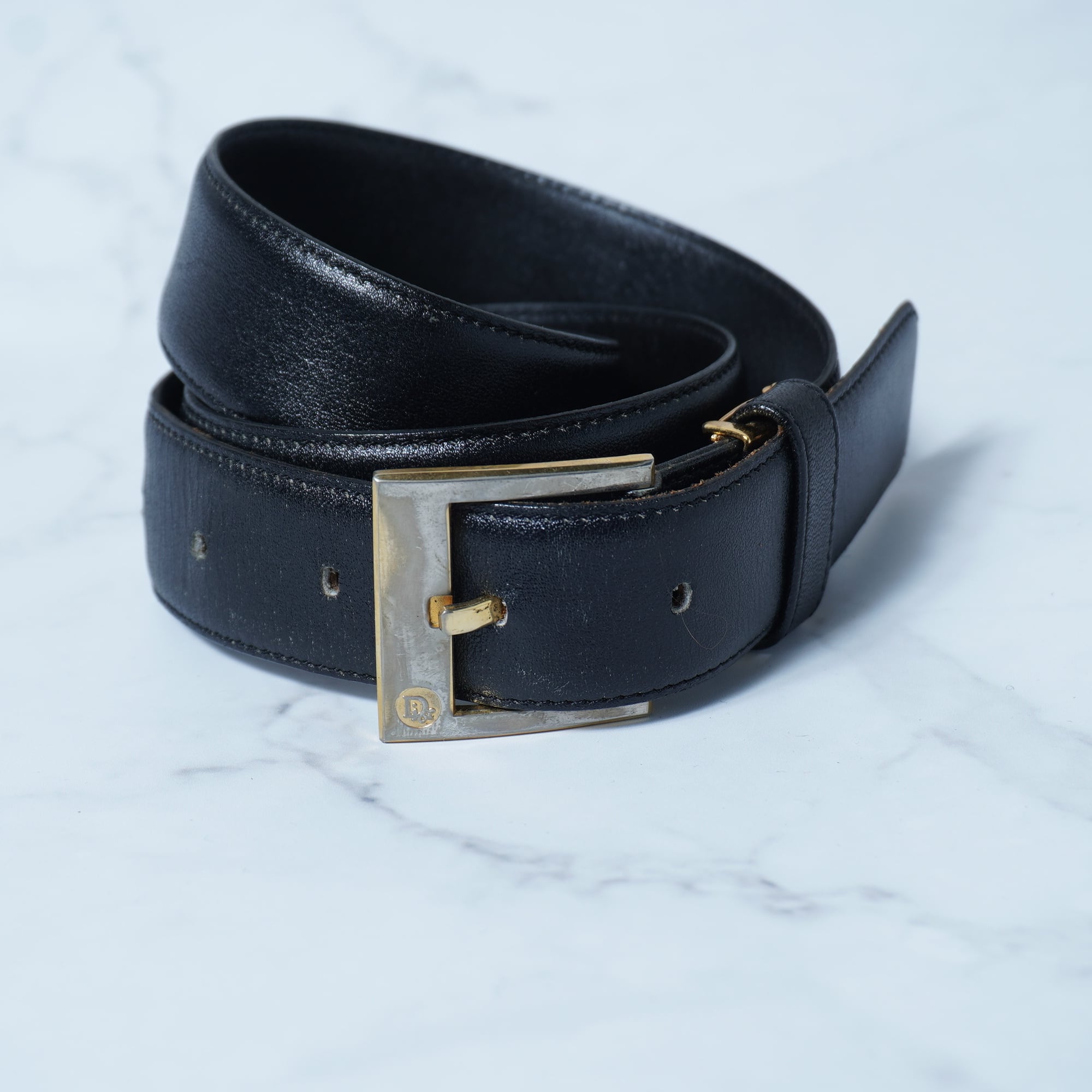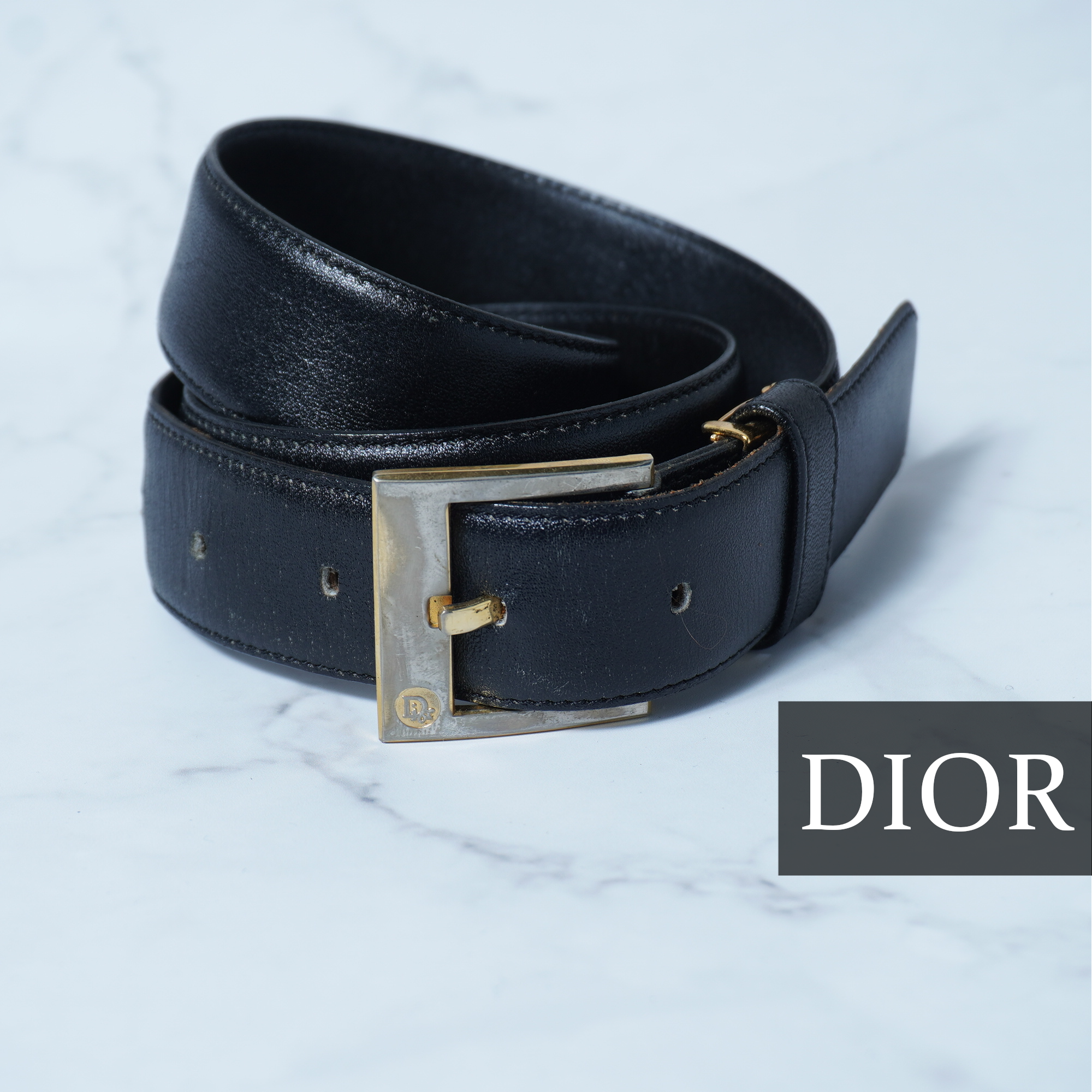 【Christian Dior】クリスチャンディオール ”トロッターロゴ”ゴールドバックルレザーベルト black