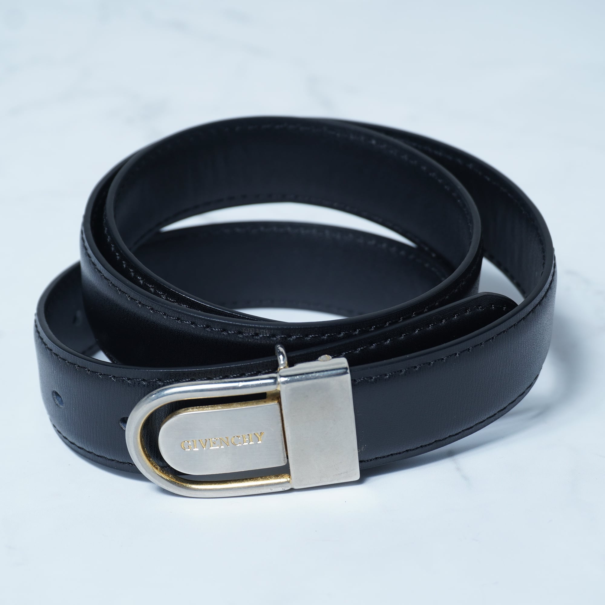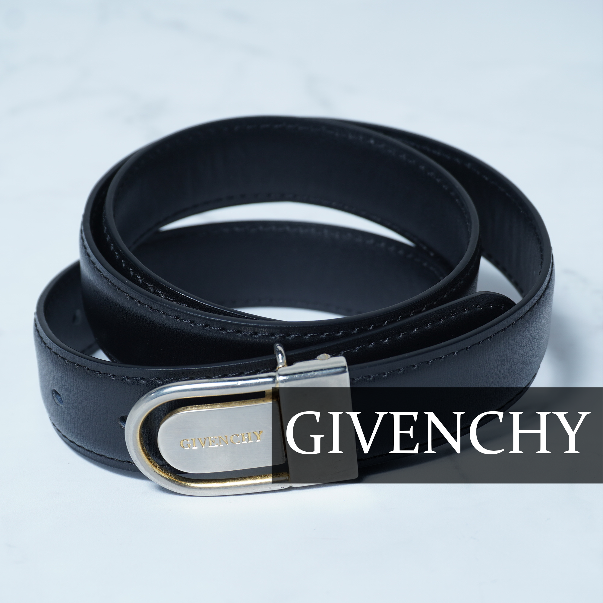 【GIVENCHY】ジバンシー "ロゴ入”ゴールドバックルレザーベルト black