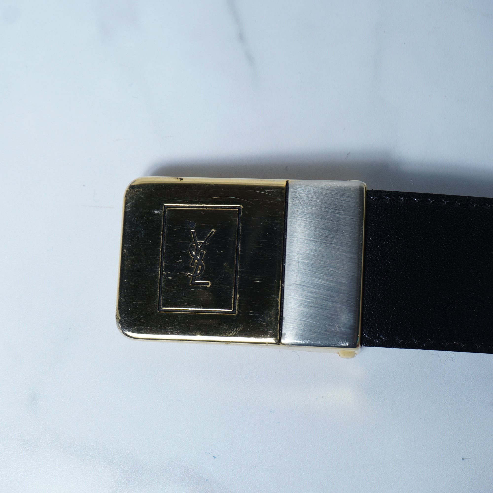 【Yves Saint Laurent】イヴサンローラン "YSLロゴ” ゴールドバックルレザーベルト black