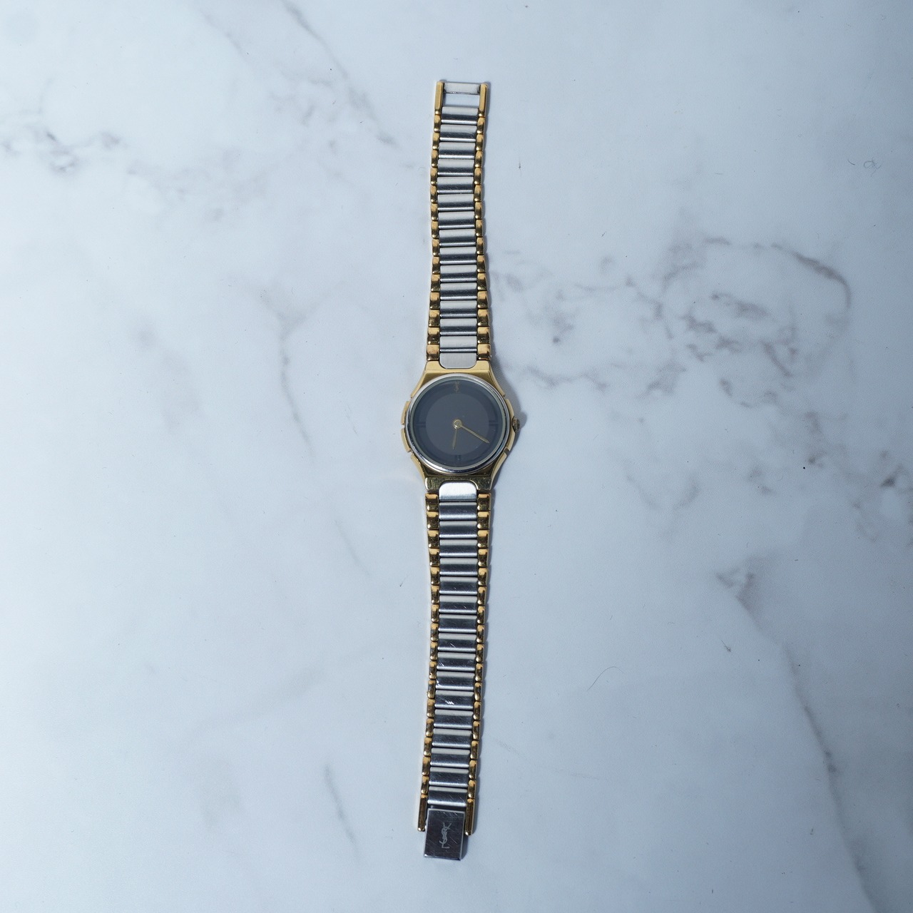 【Yves Saint Laurent】イヴサンローラン 稼働品 ”YSLロゴ” クォーツウォッチ gold&silver