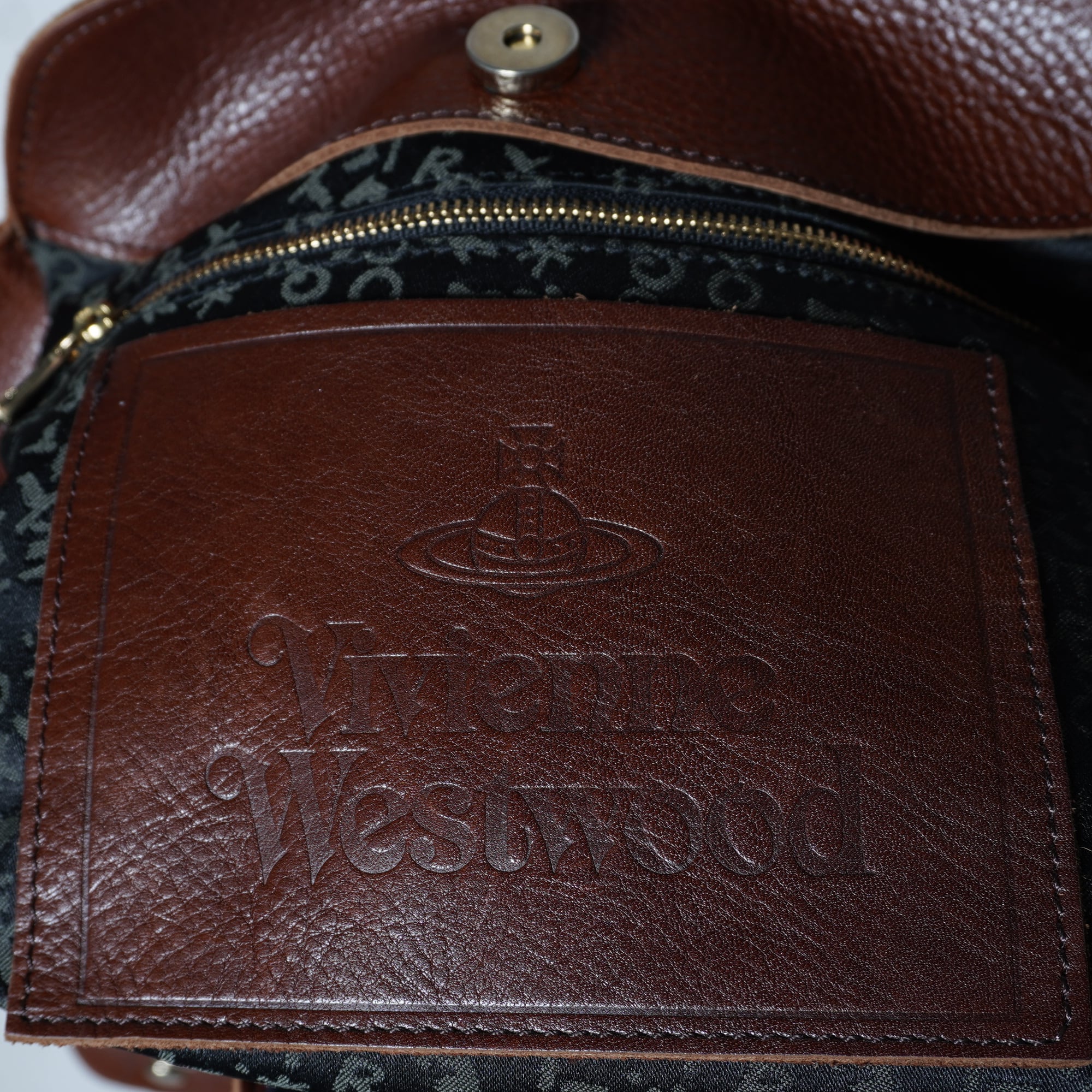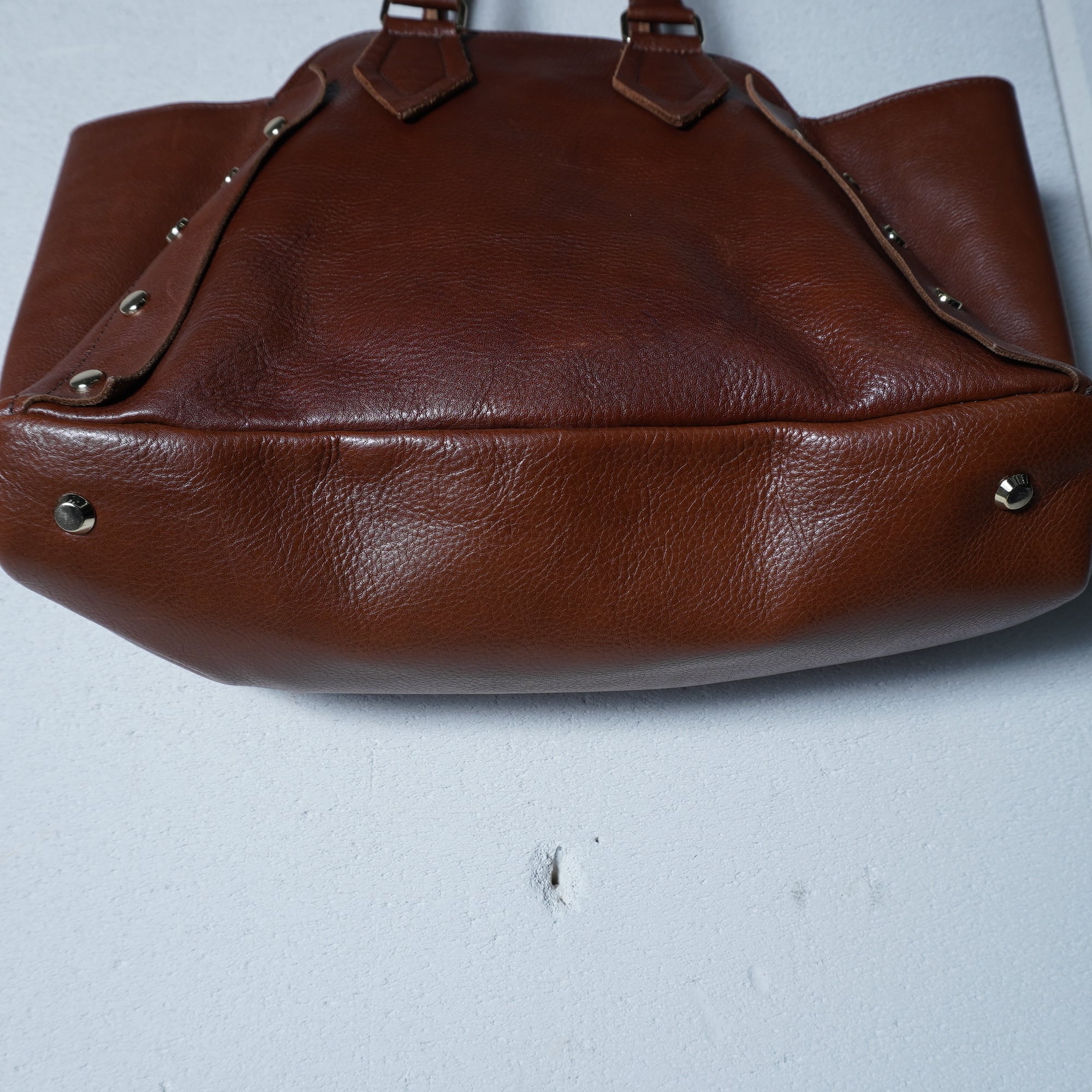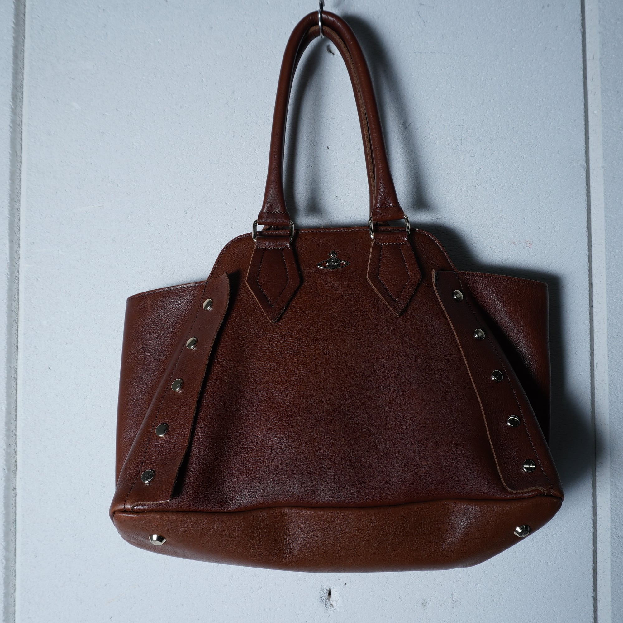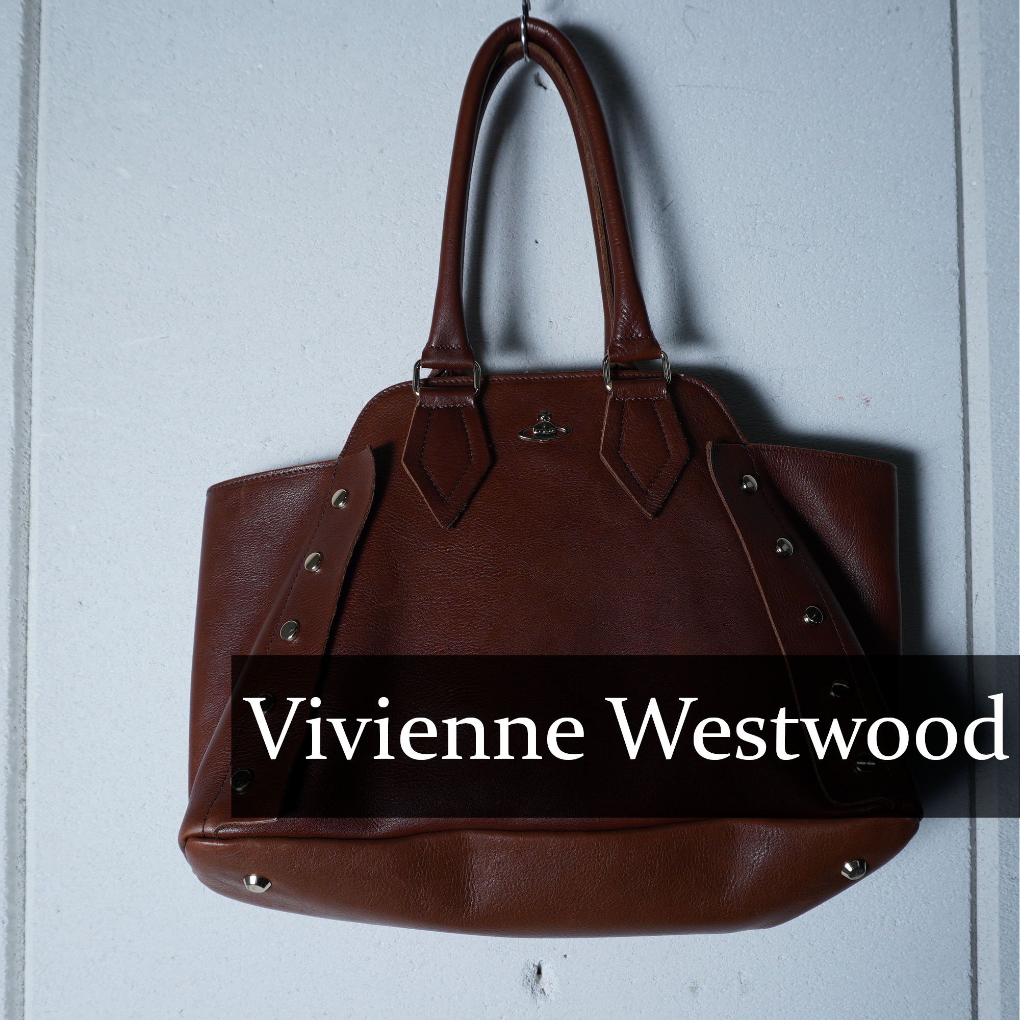 【Vivienne Westwood】ヴィヴィアンウエストウッド "オーブロゴ" ヌーロックスタッズレザートートバッグ brown
