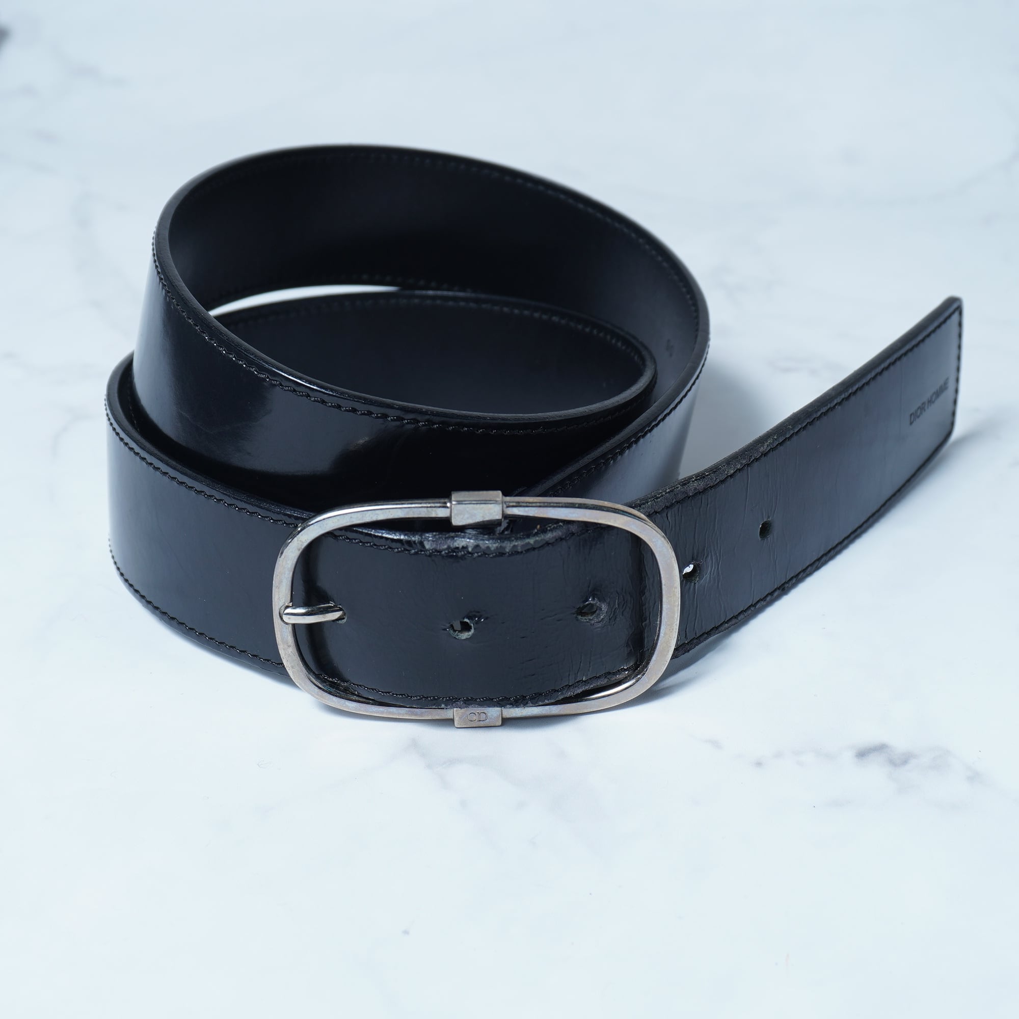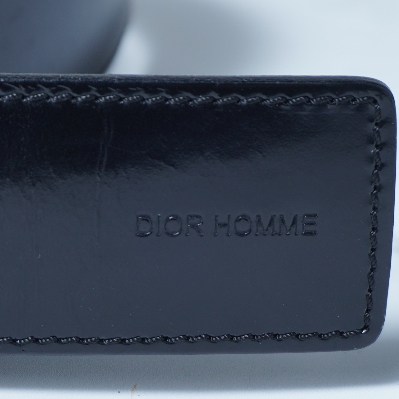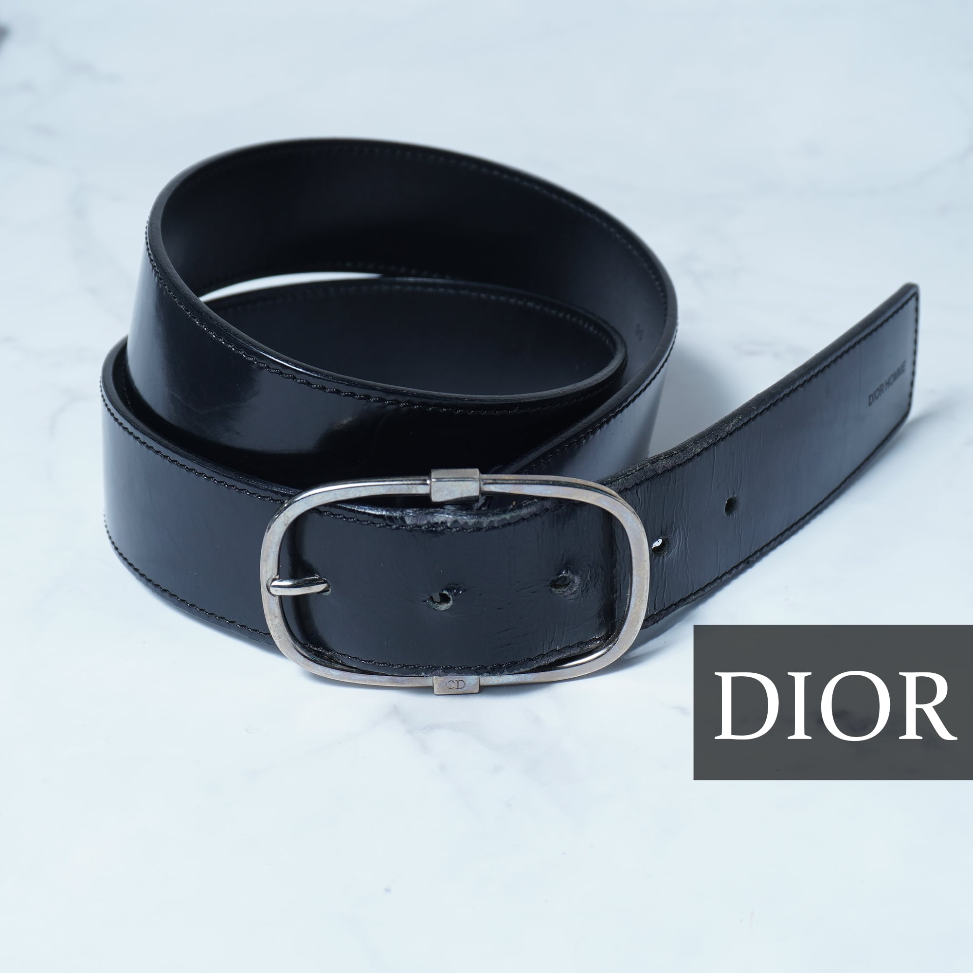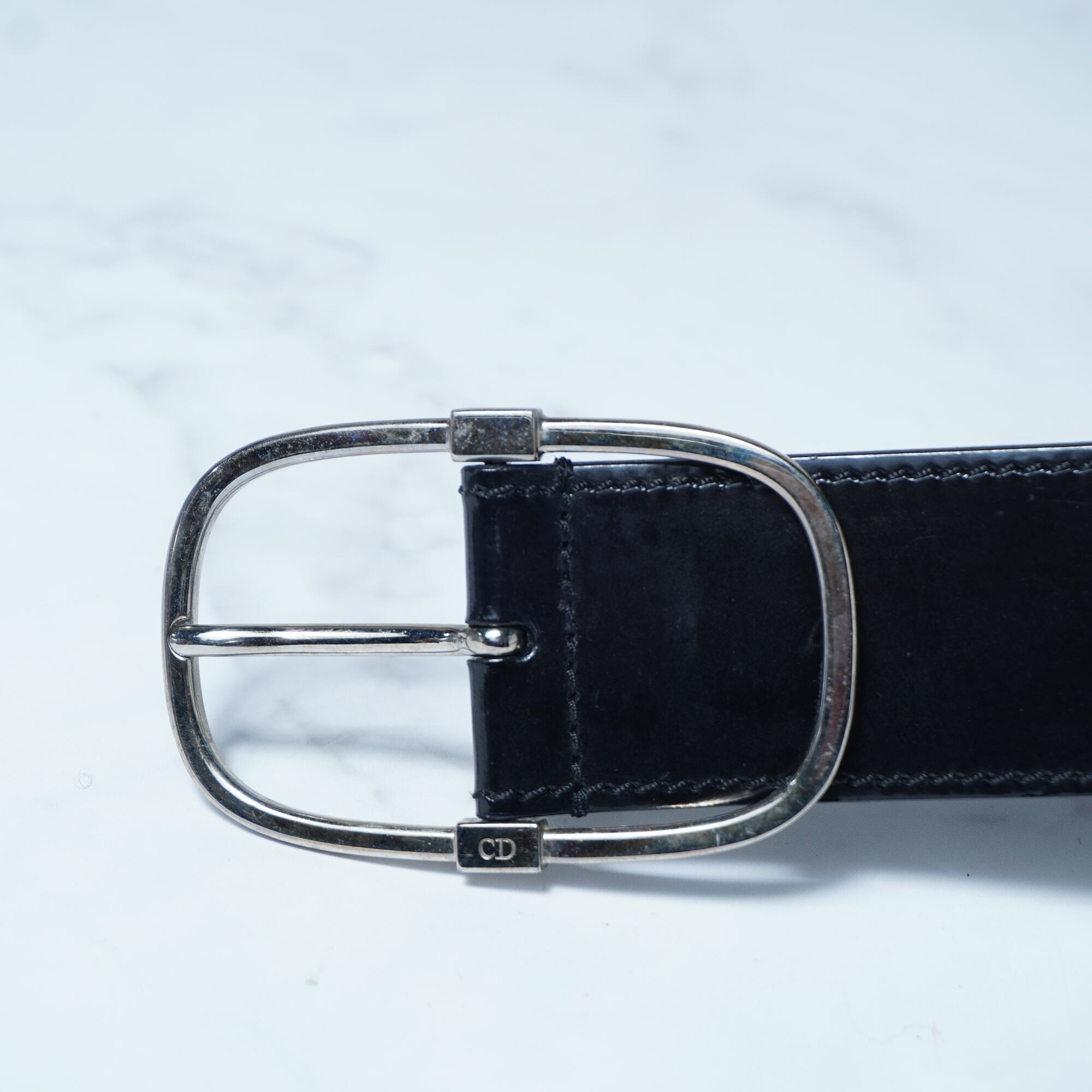 【Christian Dior】クリスチャンディオール エディ期 CDロゴ刻印シルバーバックルレザーベルト black