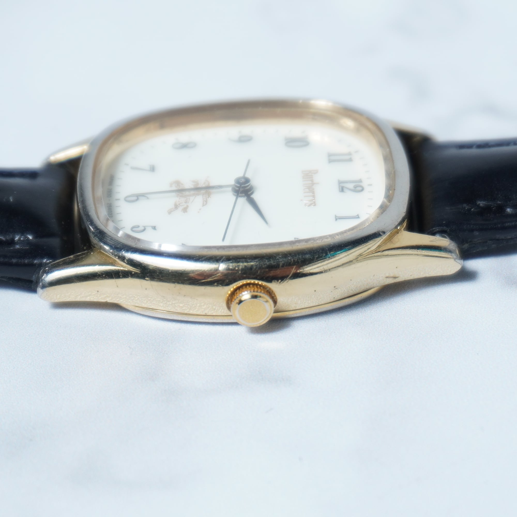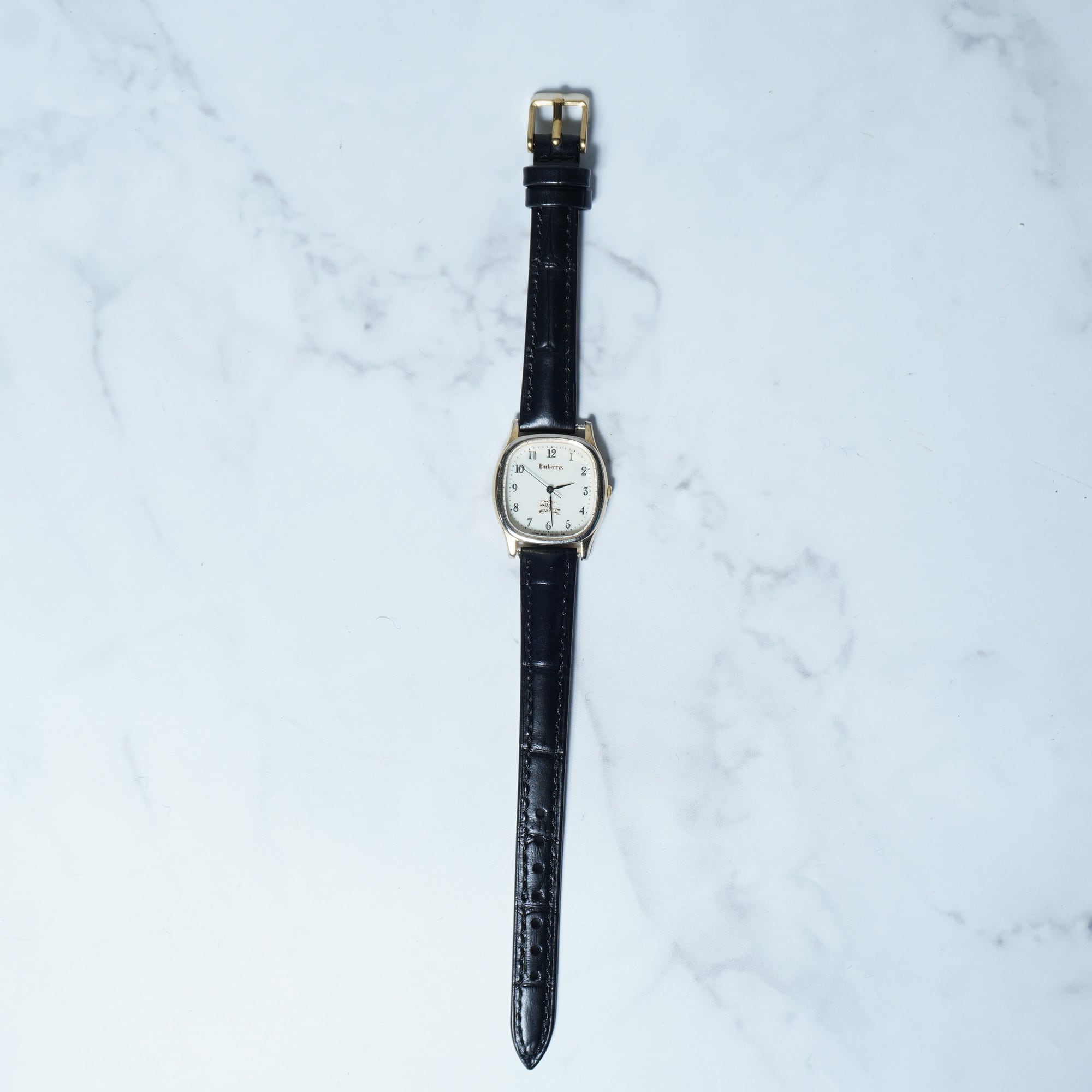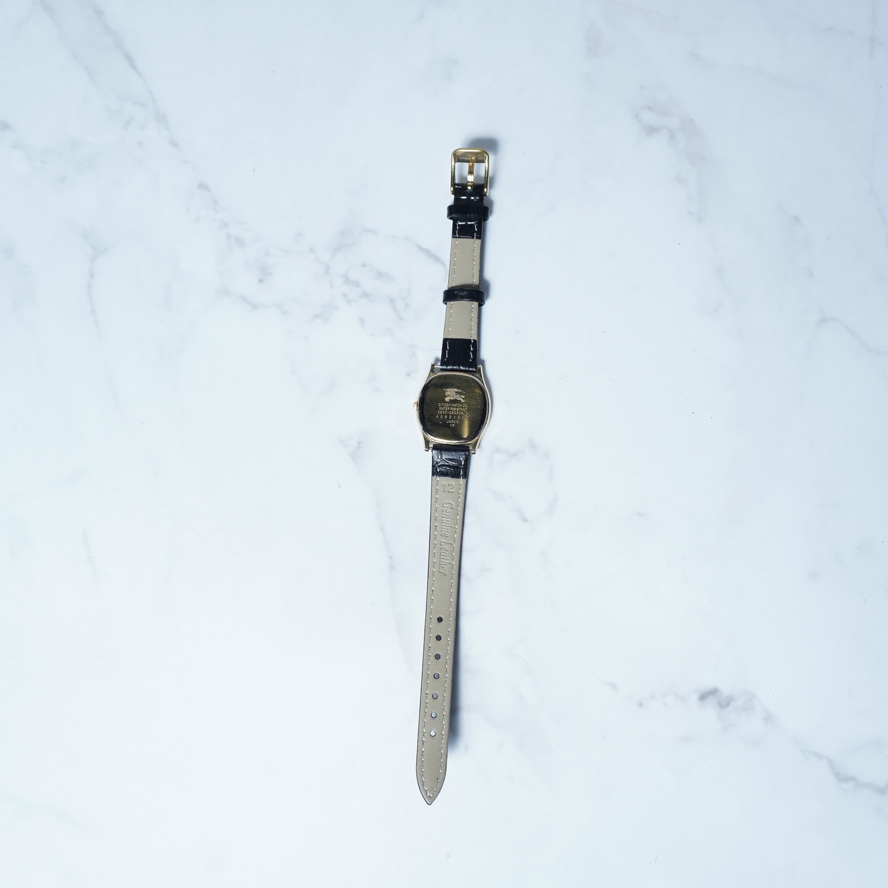 【BURBERRY】バーバリー ホースロゴ 稼働品 ゴールドスクエア・レザーハンドウォッチ black