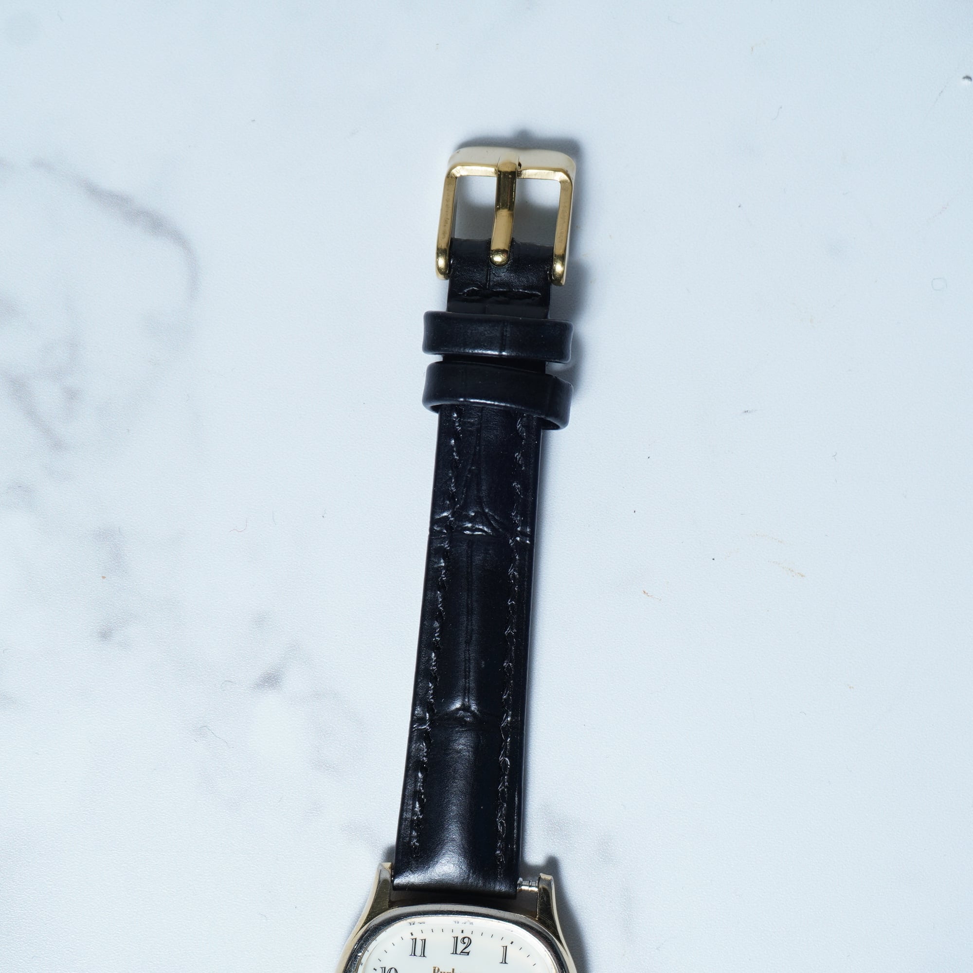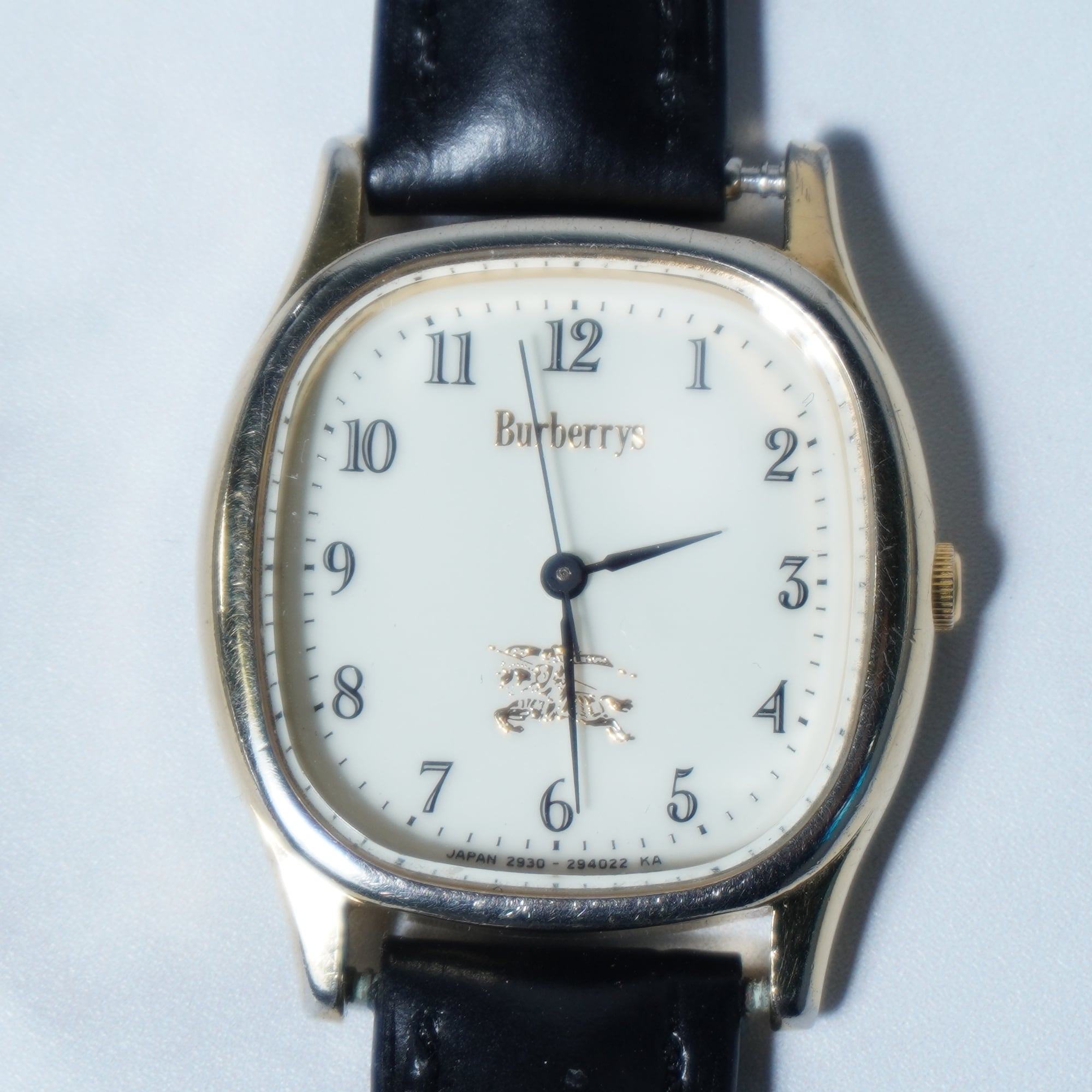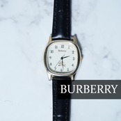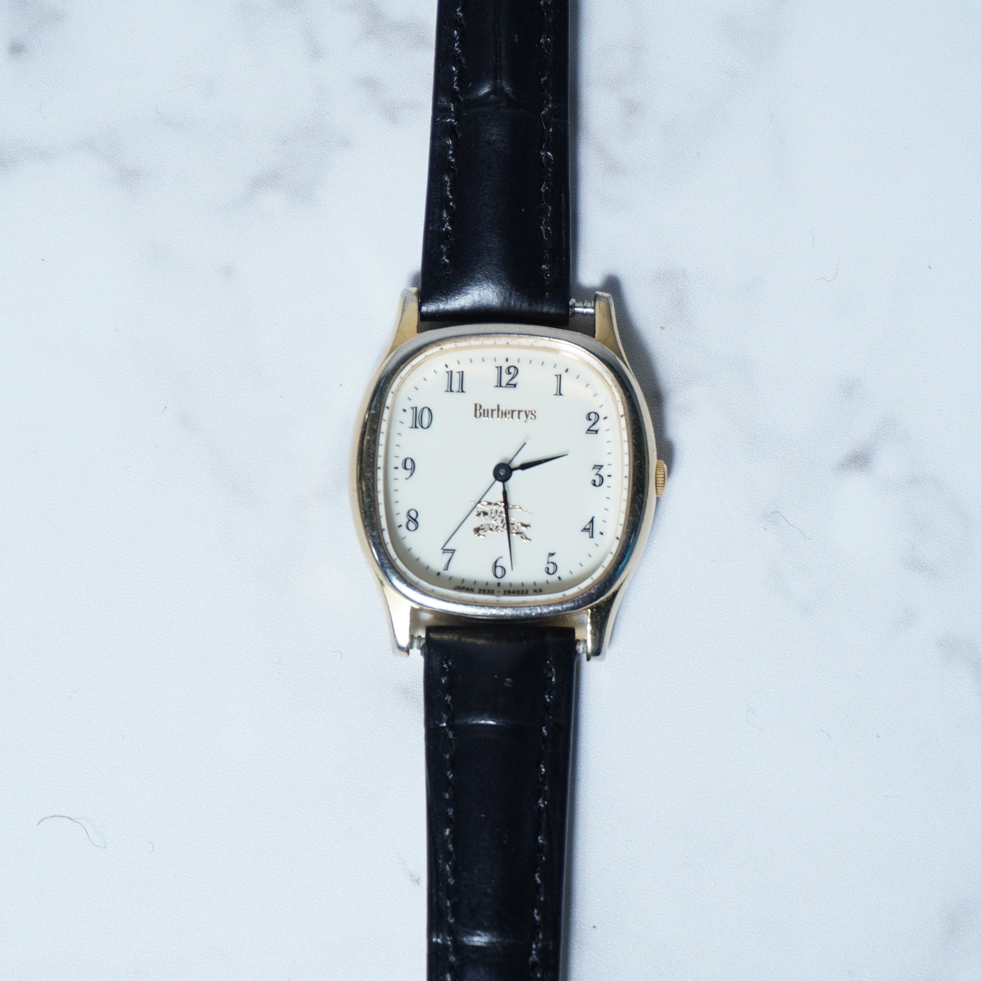 【BURBERRY】バーバリー ホースロゴ 稼働品 ゴールドスクエア・レザーハンドウォッチ black