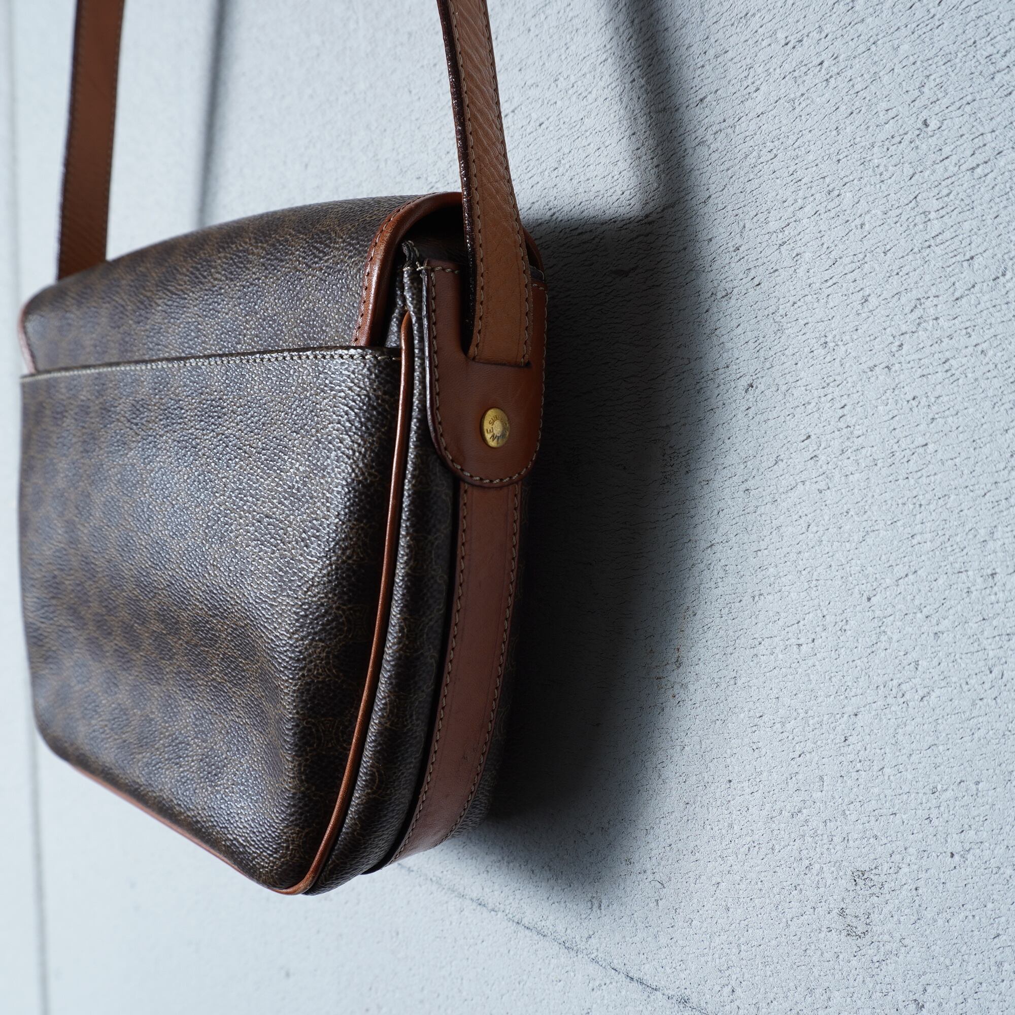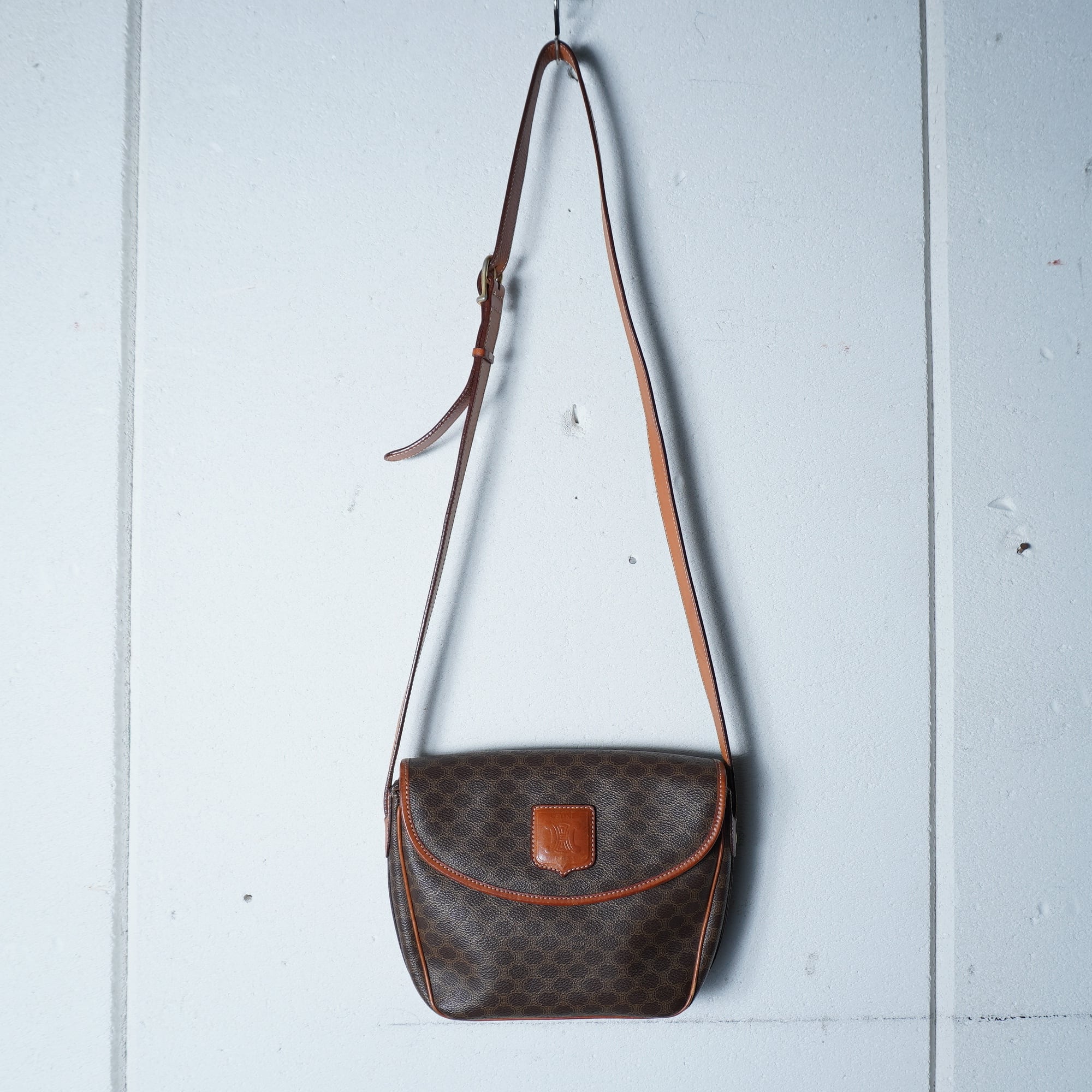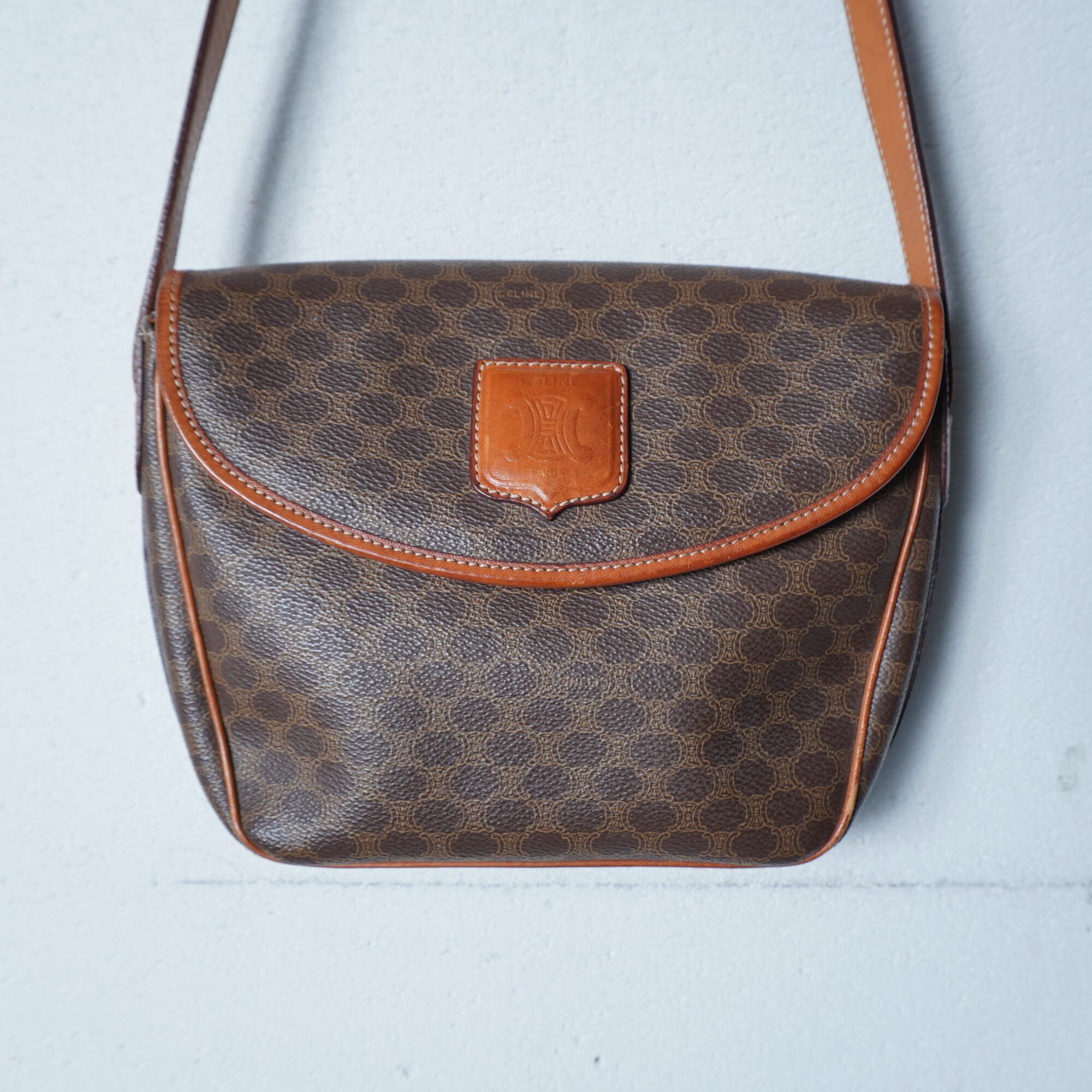 【CELINE】セリーヌ 金具ロゴ マカダム柄レザーショルダーバッグ brown