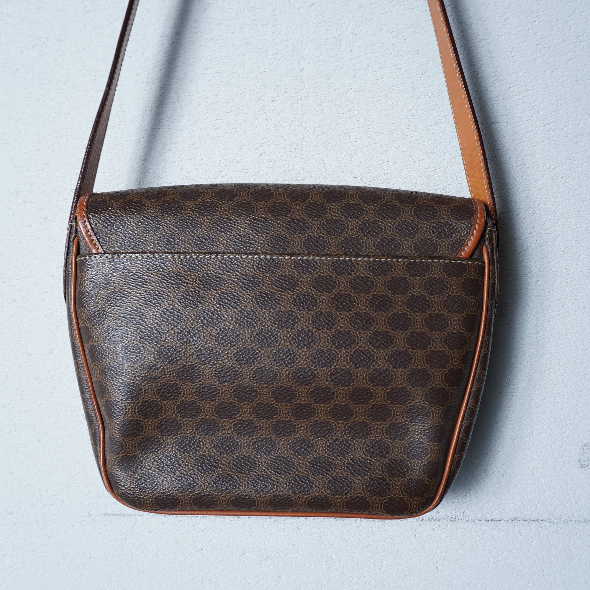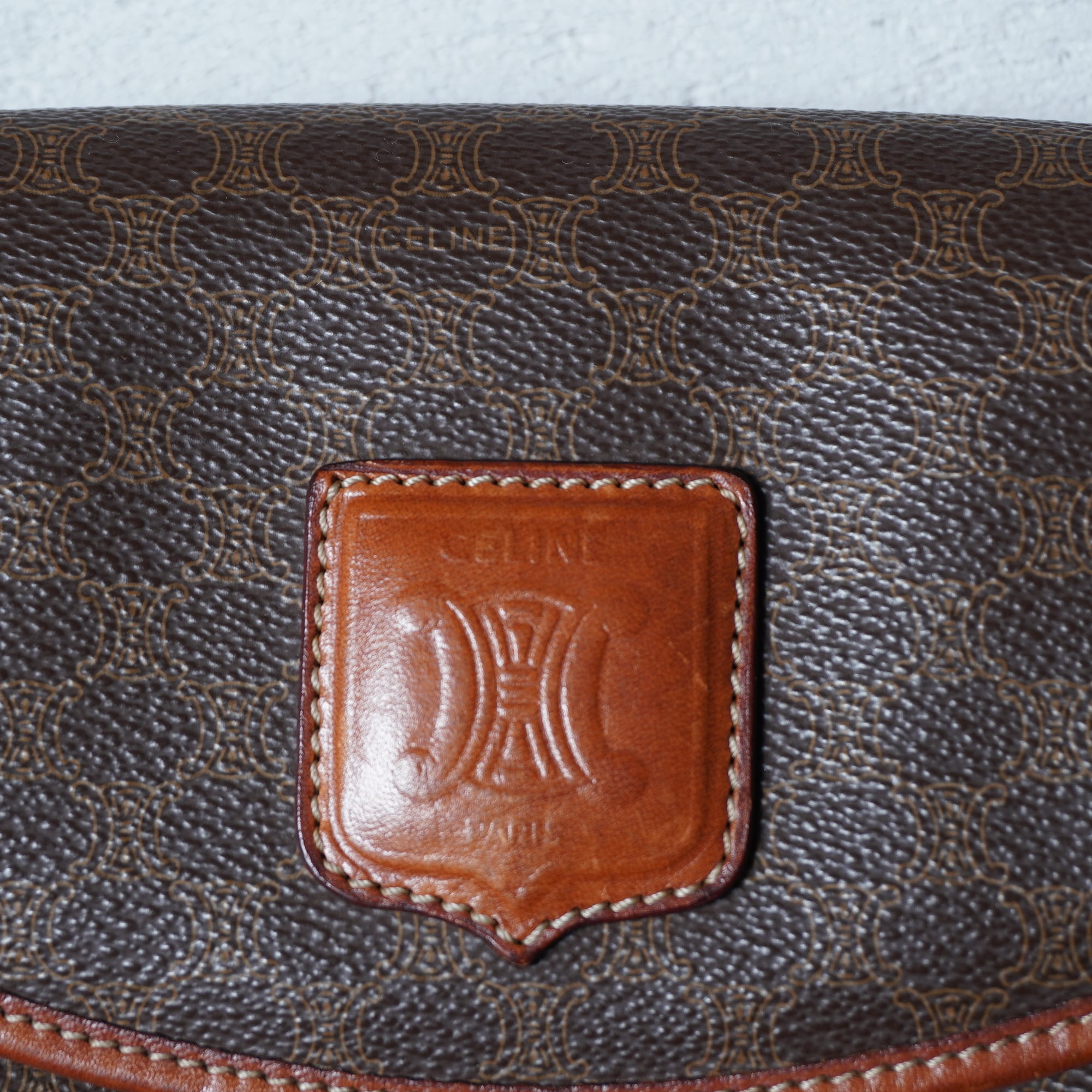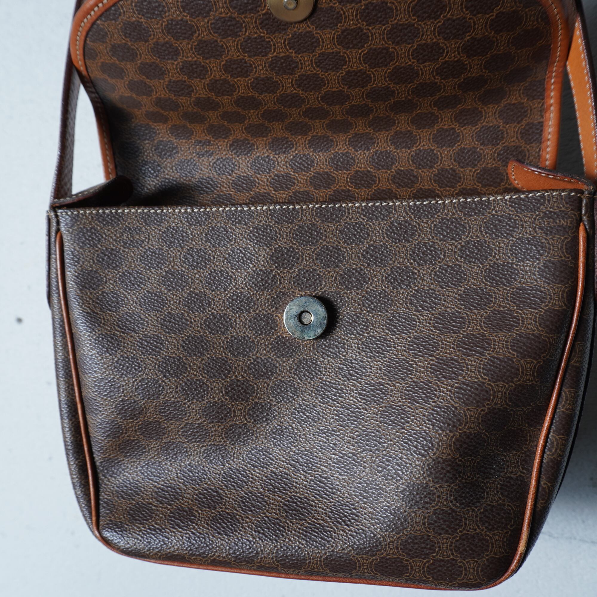 【CELINE】セリーヌ 金具ロゴ マカダム柄レザーショルダーバッグ brown