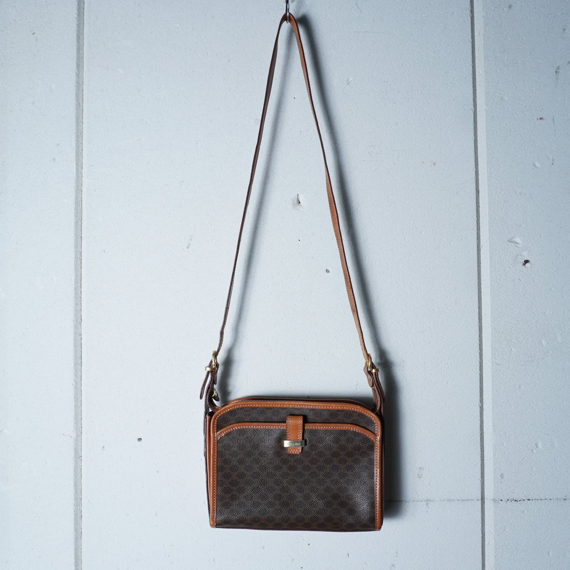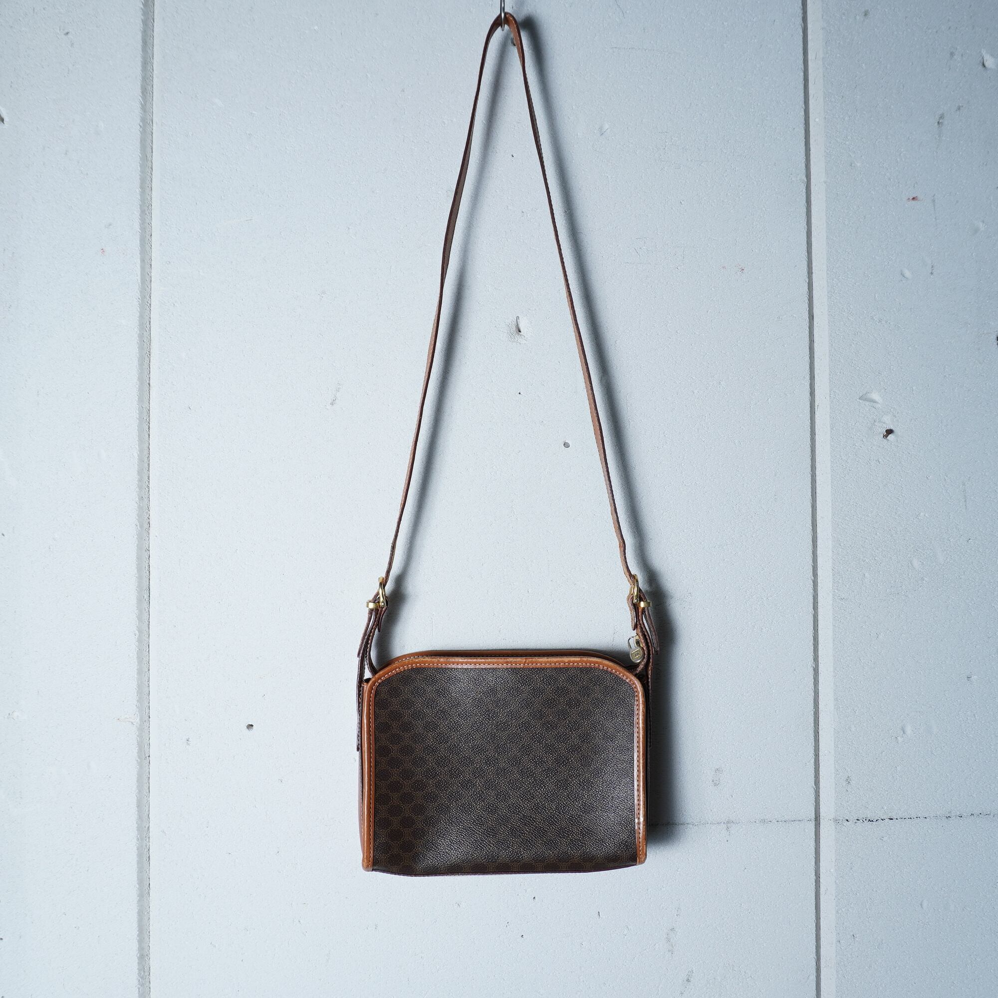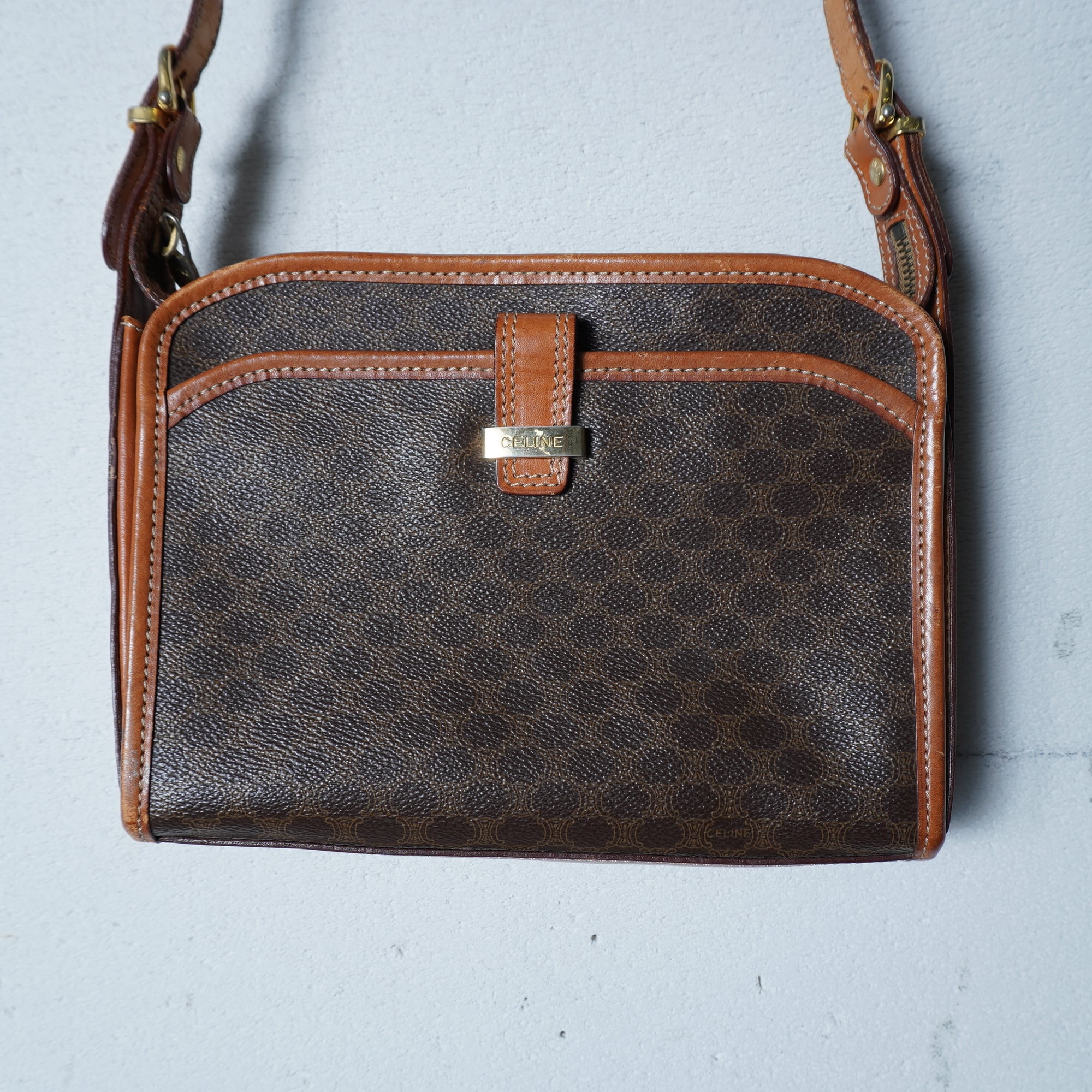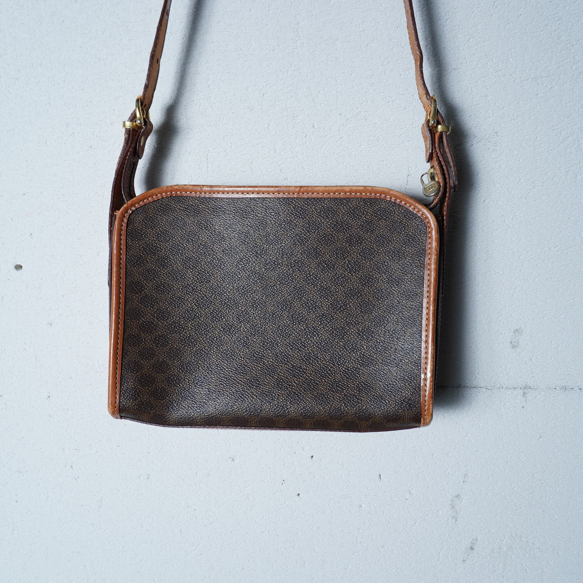 【CELINE】セリーヌ ロゴ入 マカダム柄レザーショルダーバッグ brown