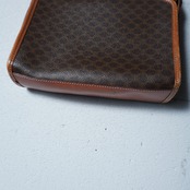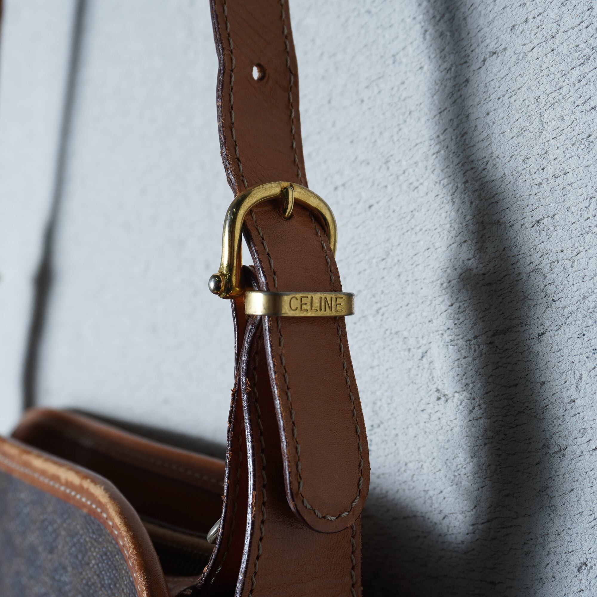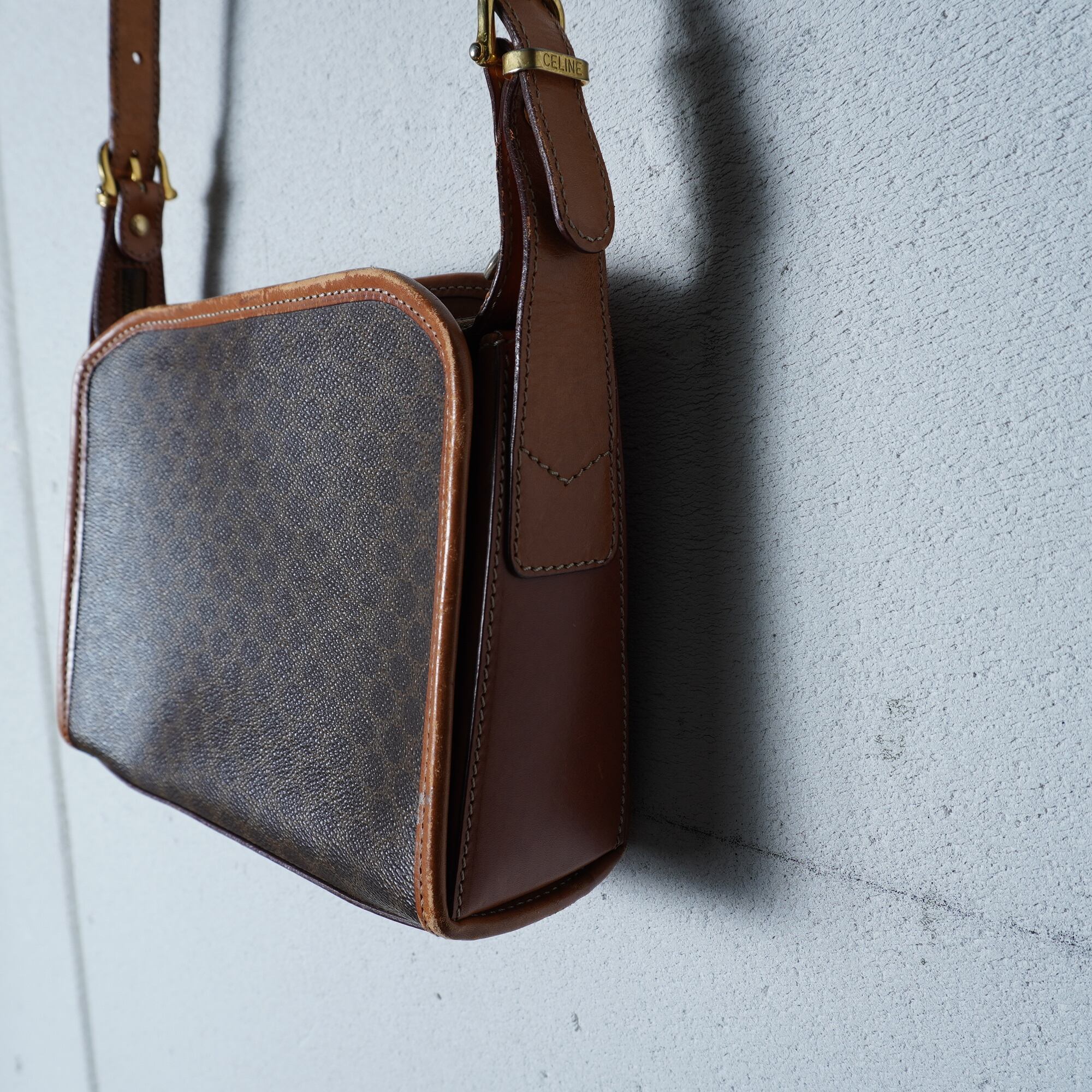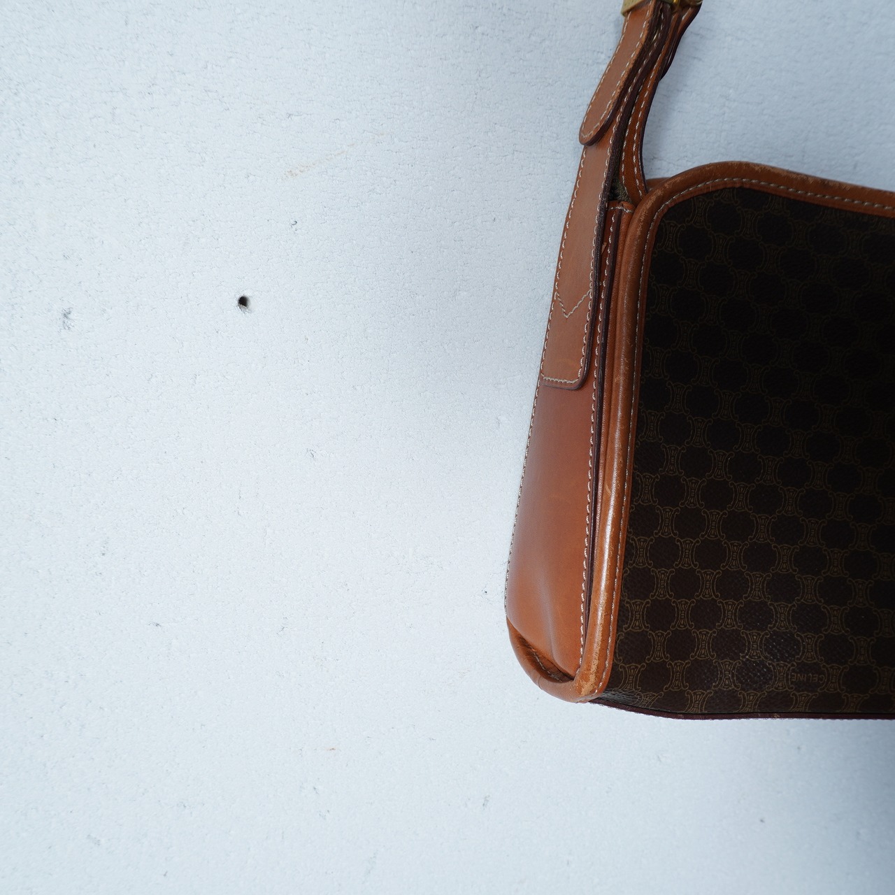 【CELINE】セリーヌ ロゴ入 マカダム柄レザーショルダーバッグ brown