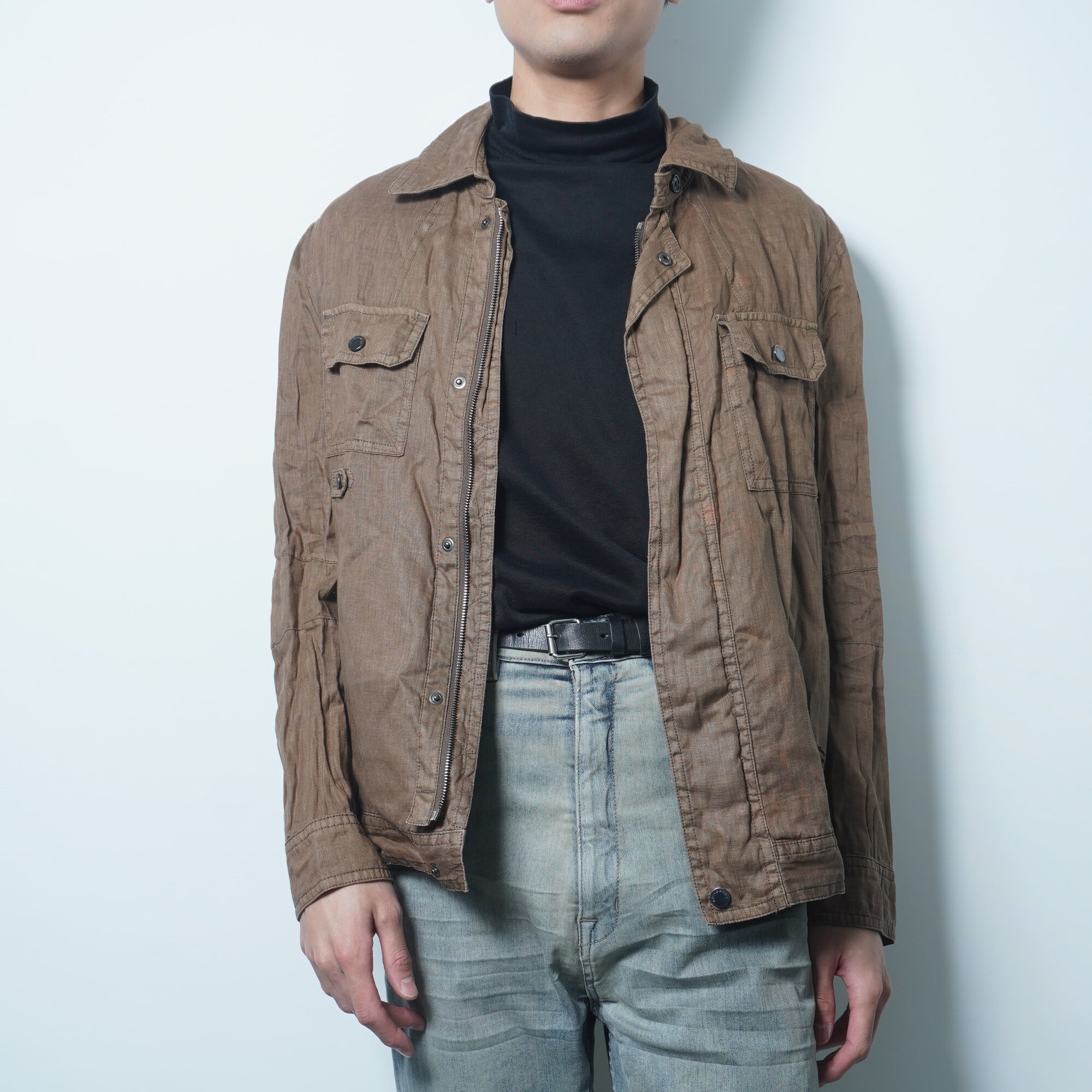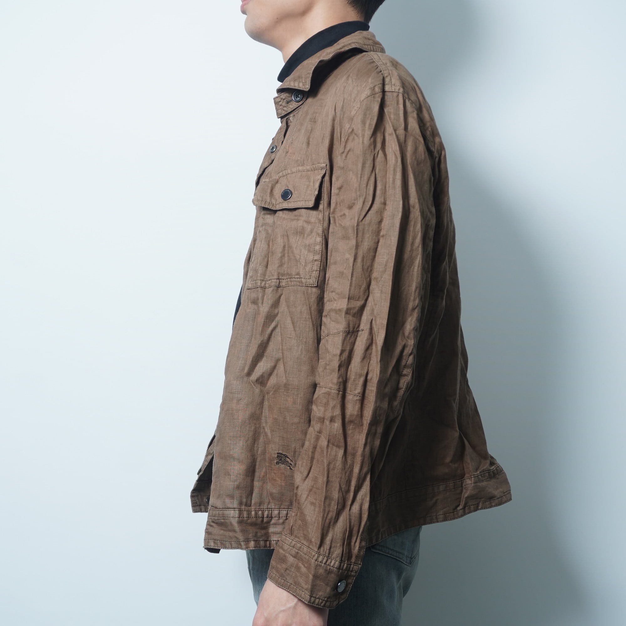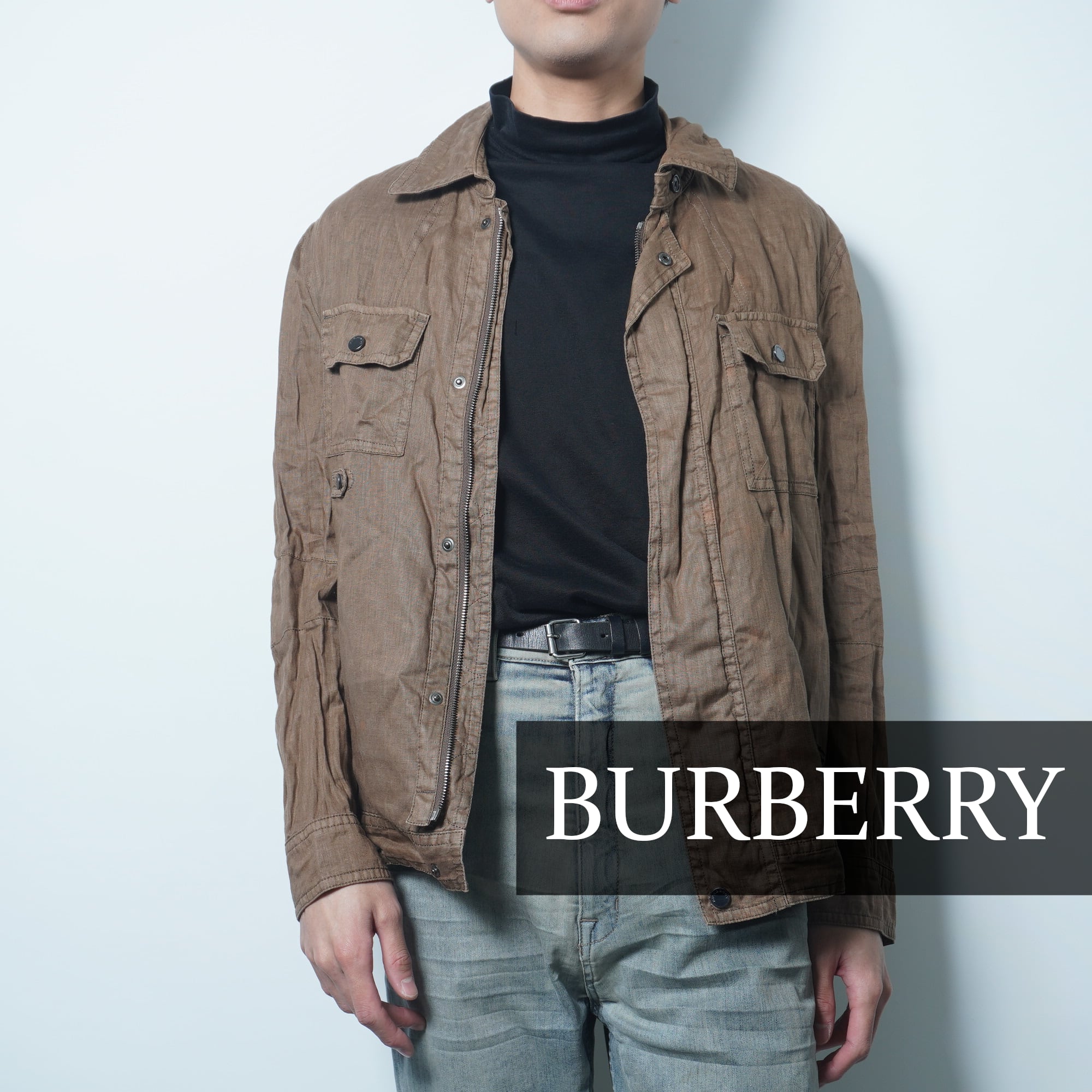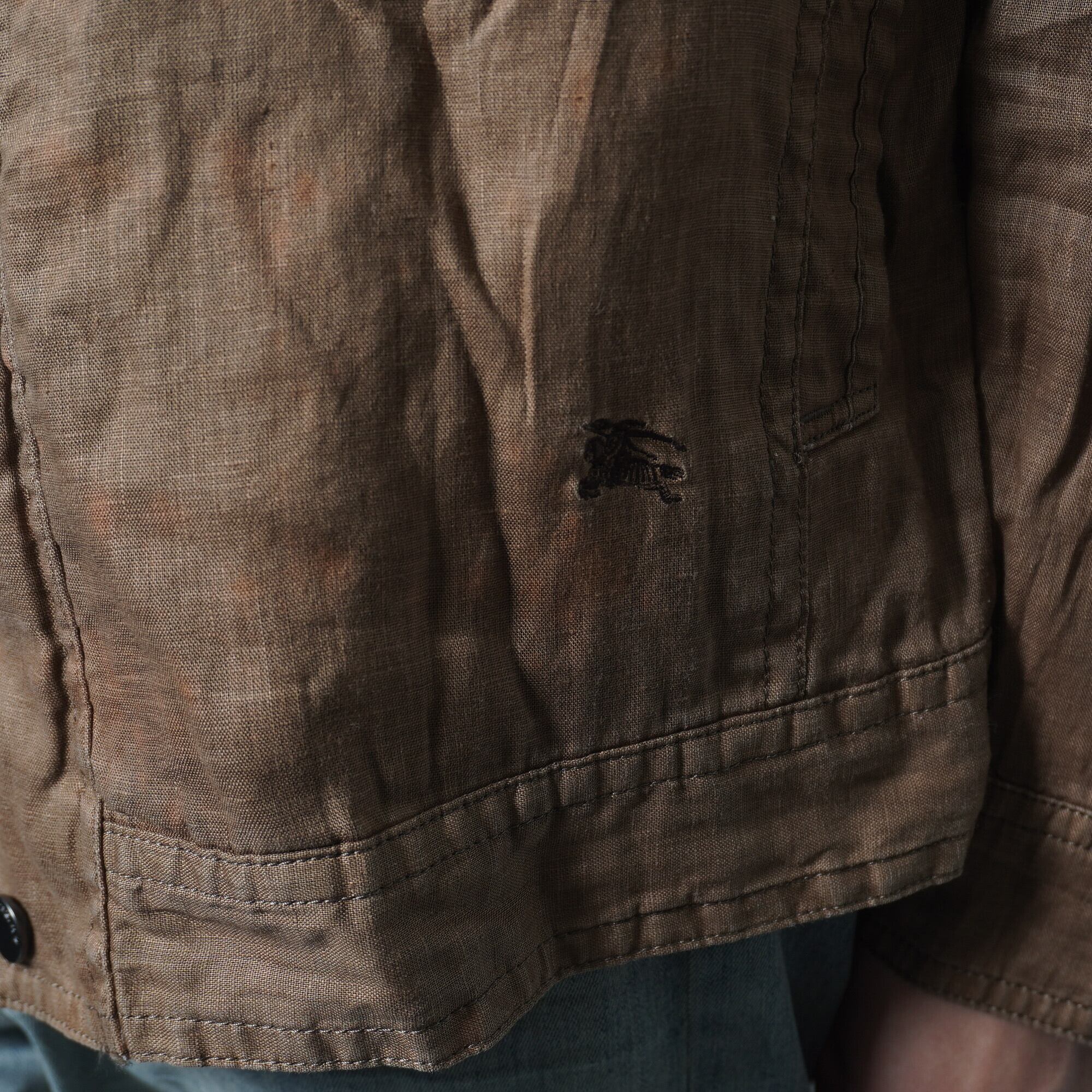 【BURBERRY LONDON】バーバリー ノヴァチェック切替リネンジップアップジャケット brown