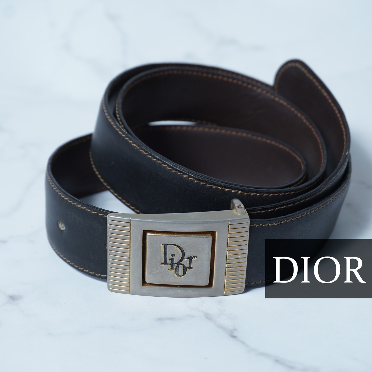 【Christian Dior】クリスチャンディオール ”トロッターロゴ”ゴールドバックルレザーベルト black