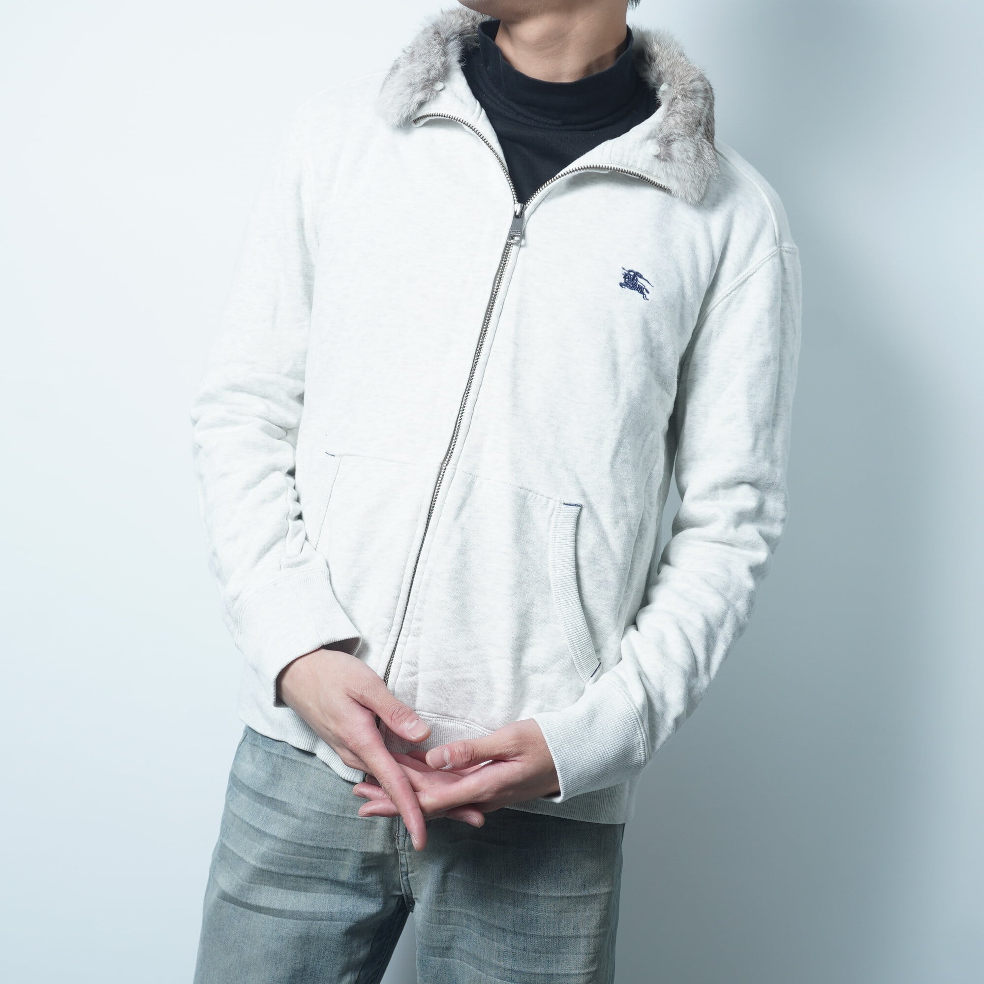 【BURBERRY】バーバリー BLACK LABEL ラビットファージップアップスウェットブルゾン light grey