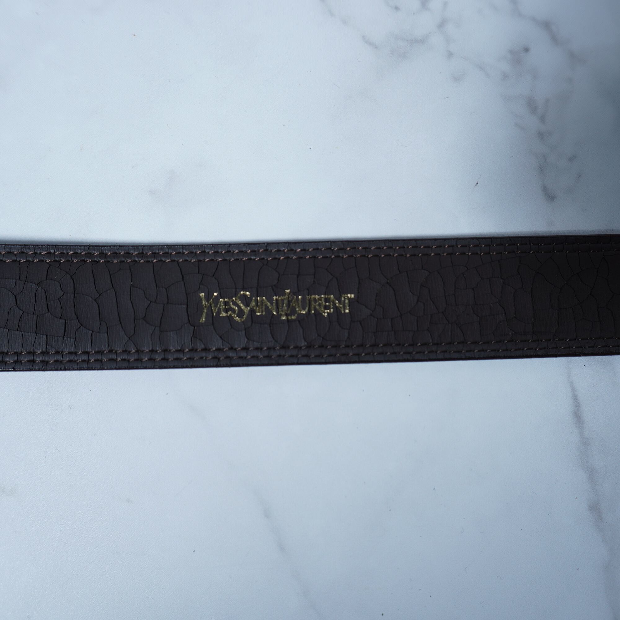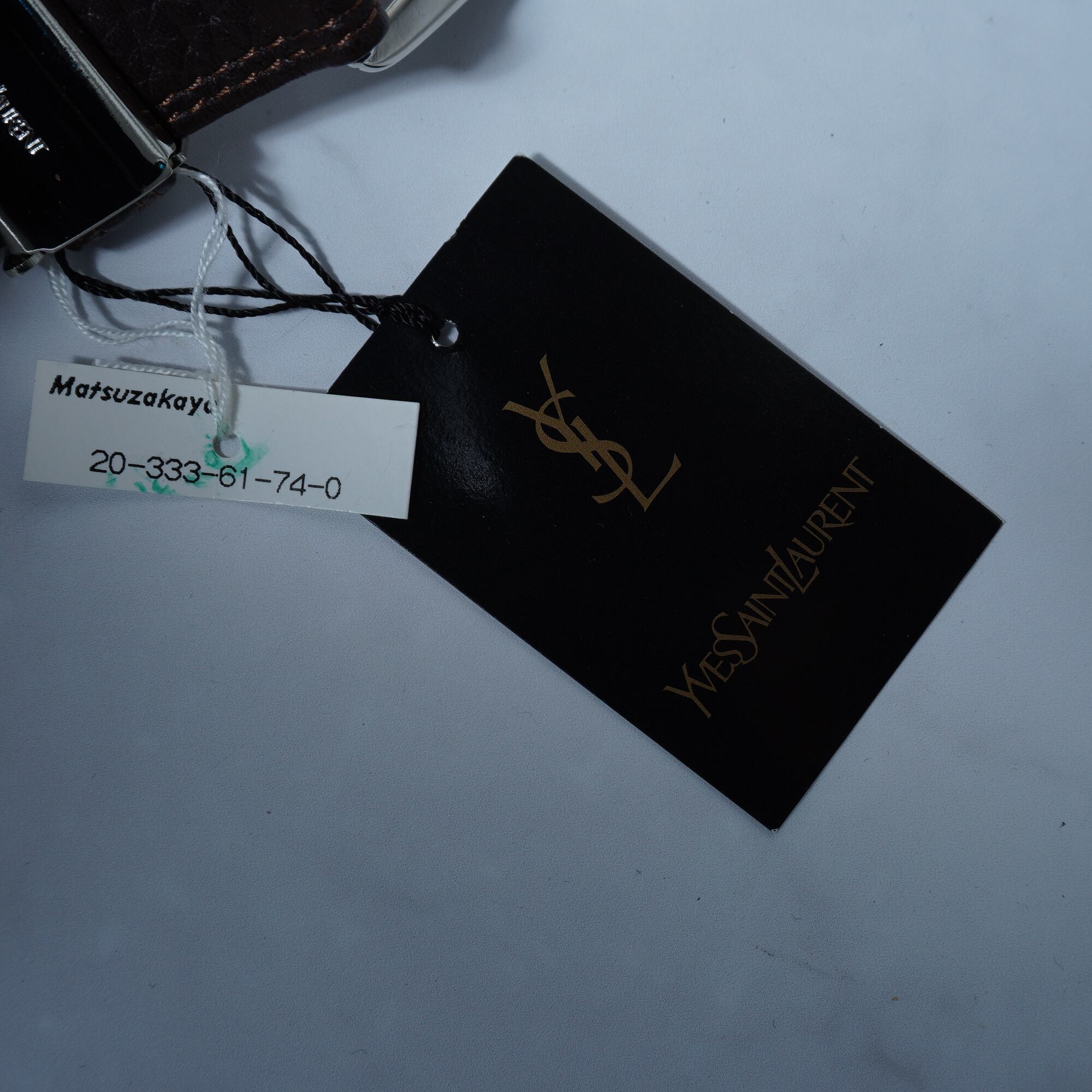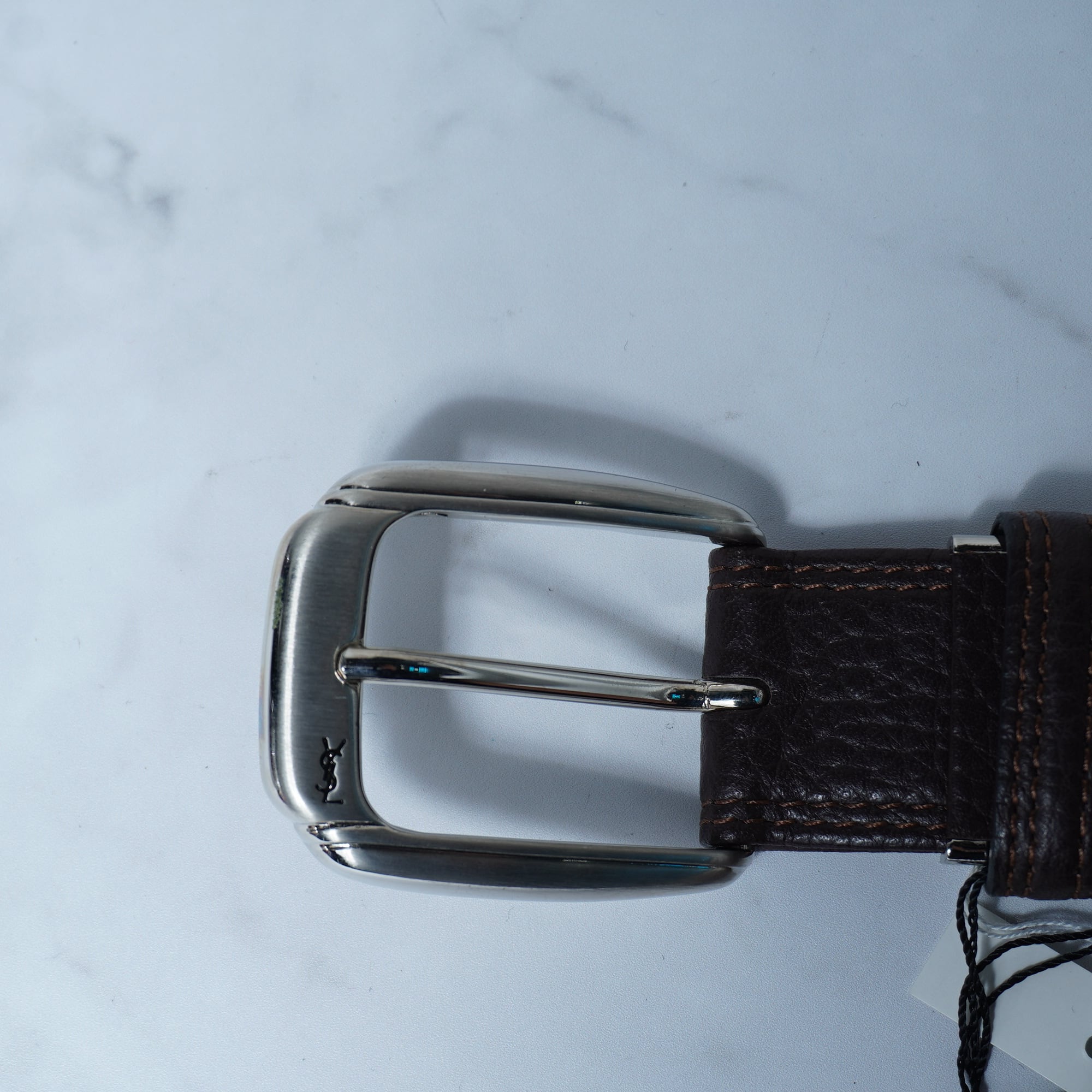 【Yves Saint Laurent】イヴサンローラン ”ロゴ入” シルバーバックルレザーベルト 箱・タグ付 brown
