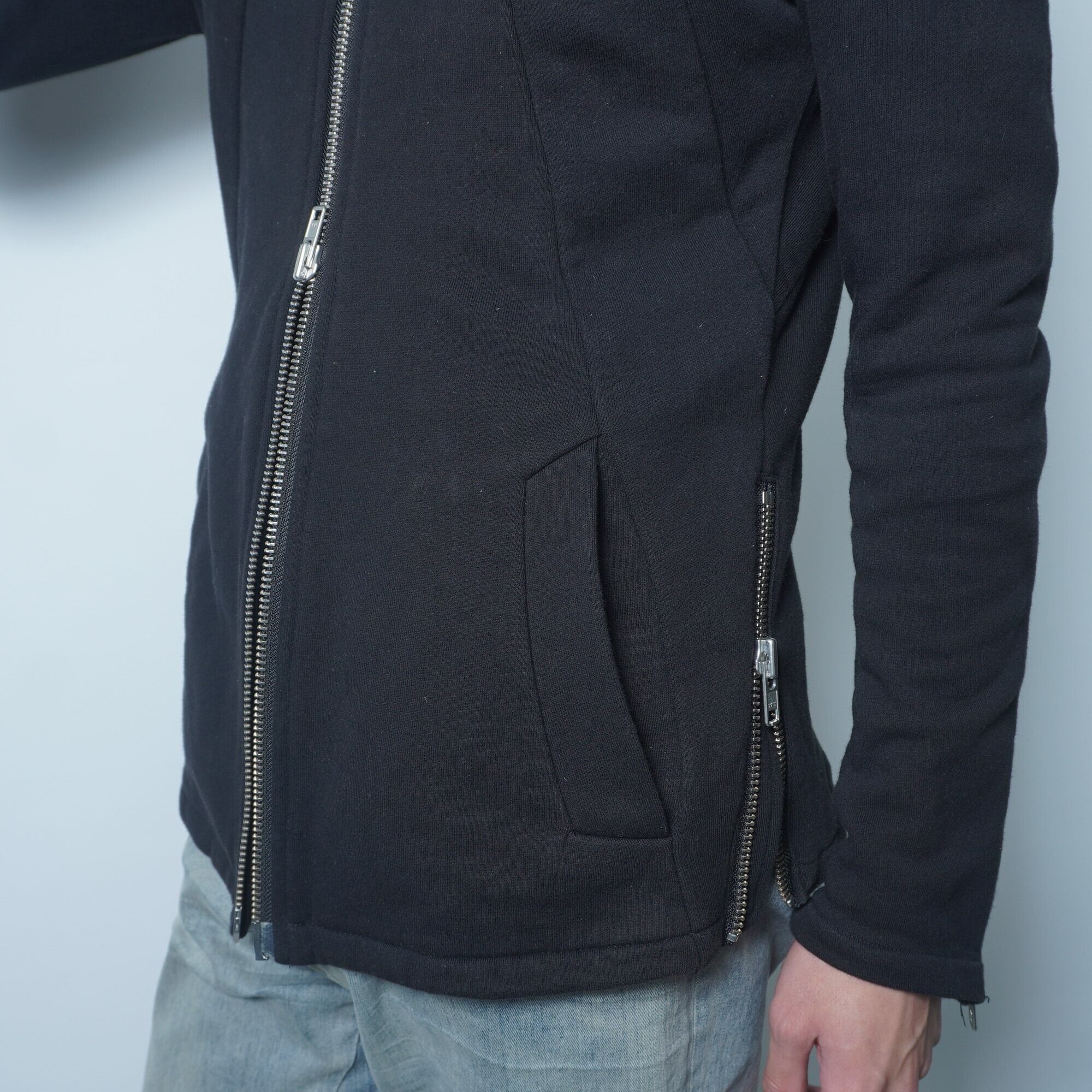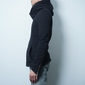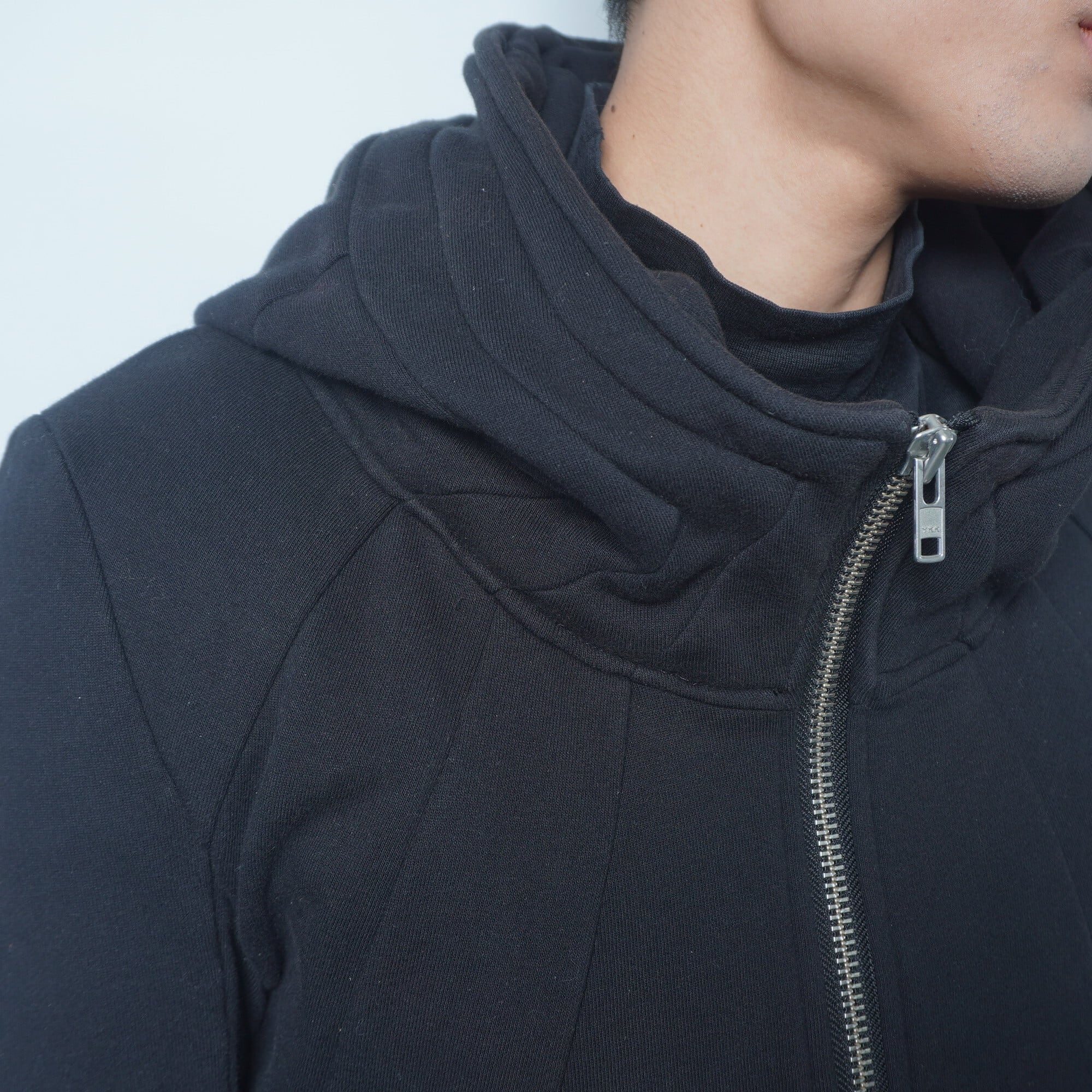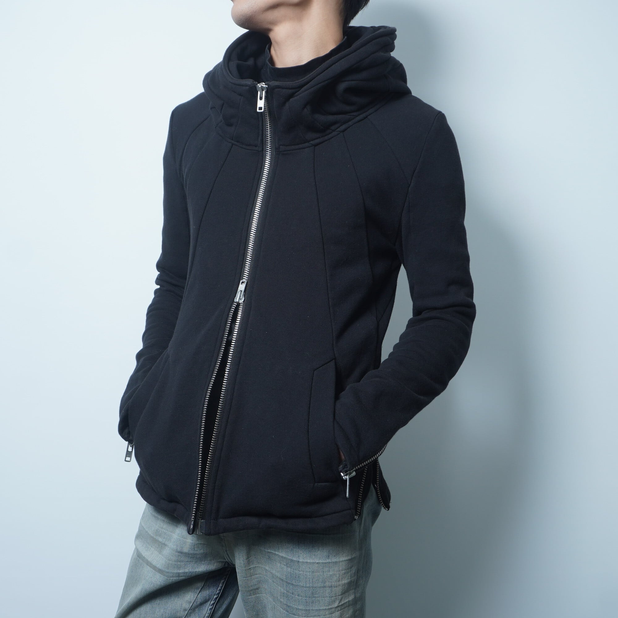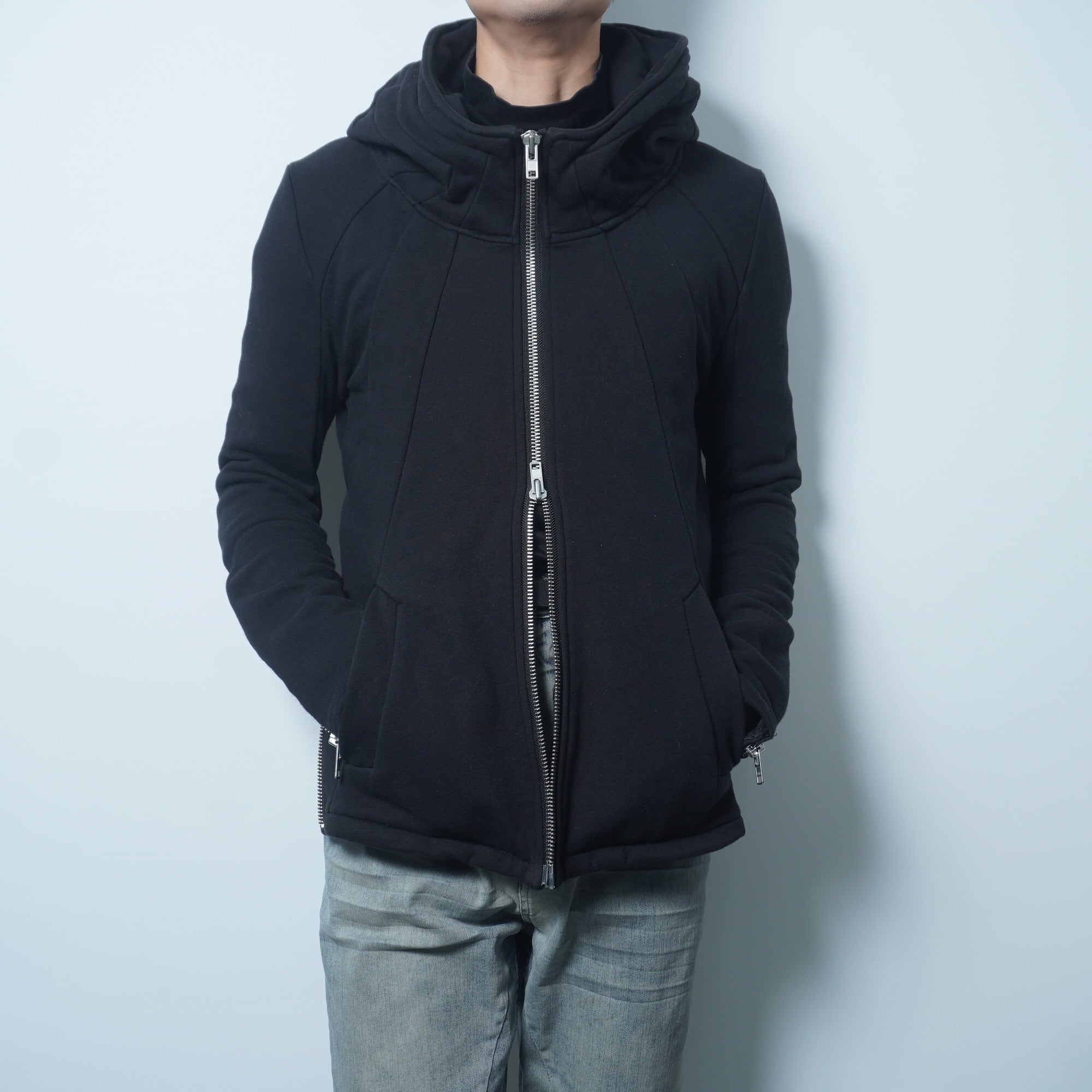 【NO ID.】ノーアイディ ダブルジップハイネックフーでっとコットンジャケット black