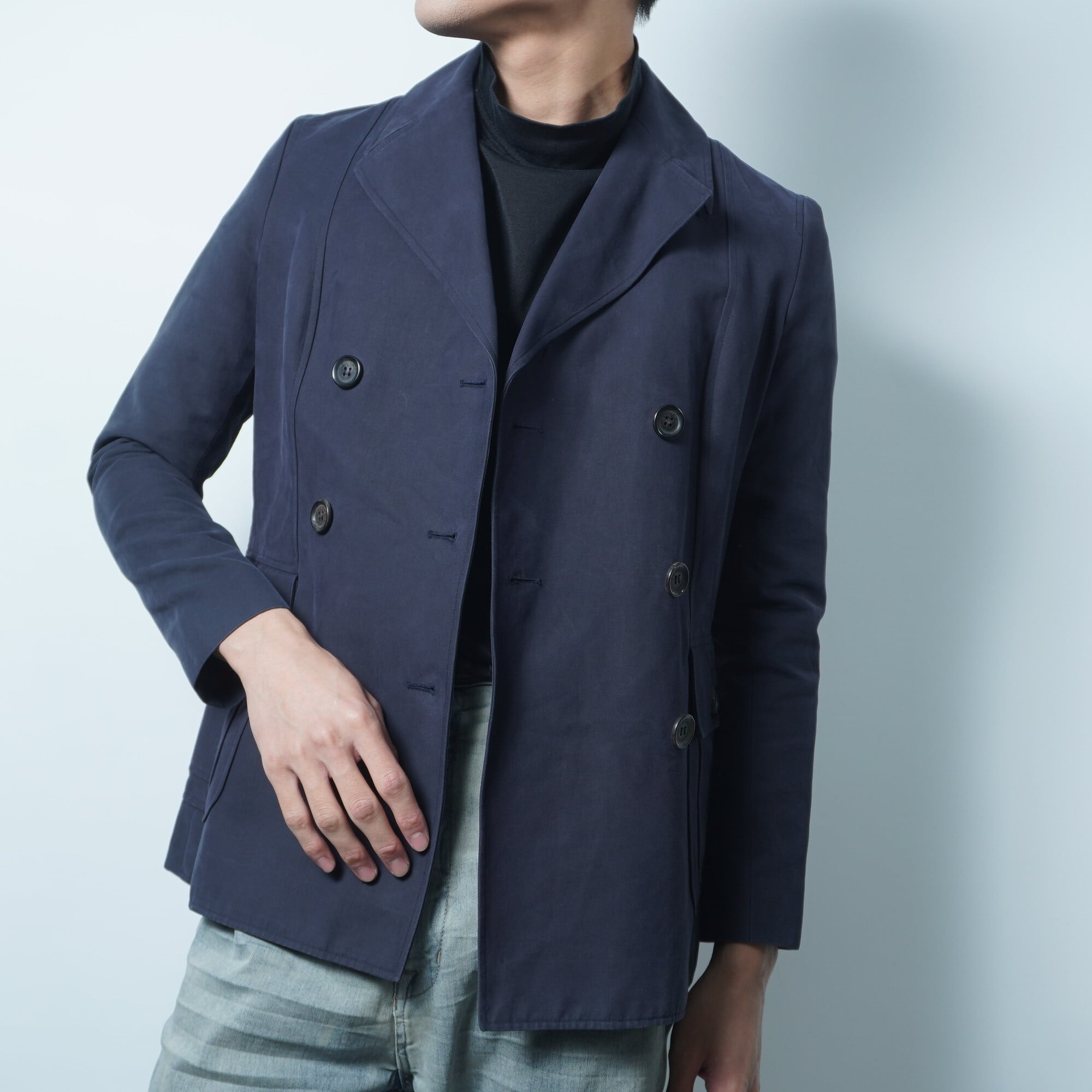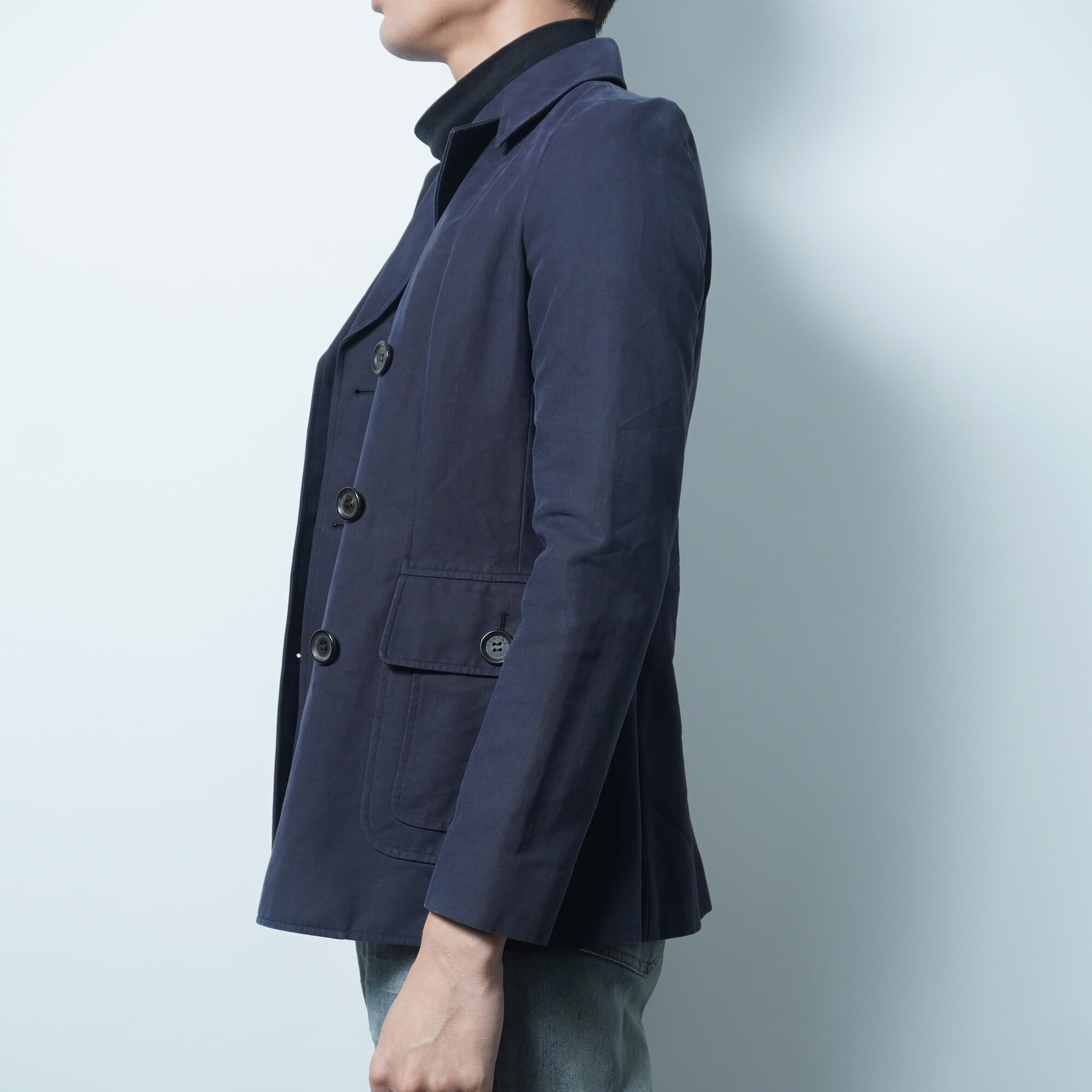 【CELINE】セリーヌ フランス製 ボタンロゴ刻印スプリングコットンコート dark navy