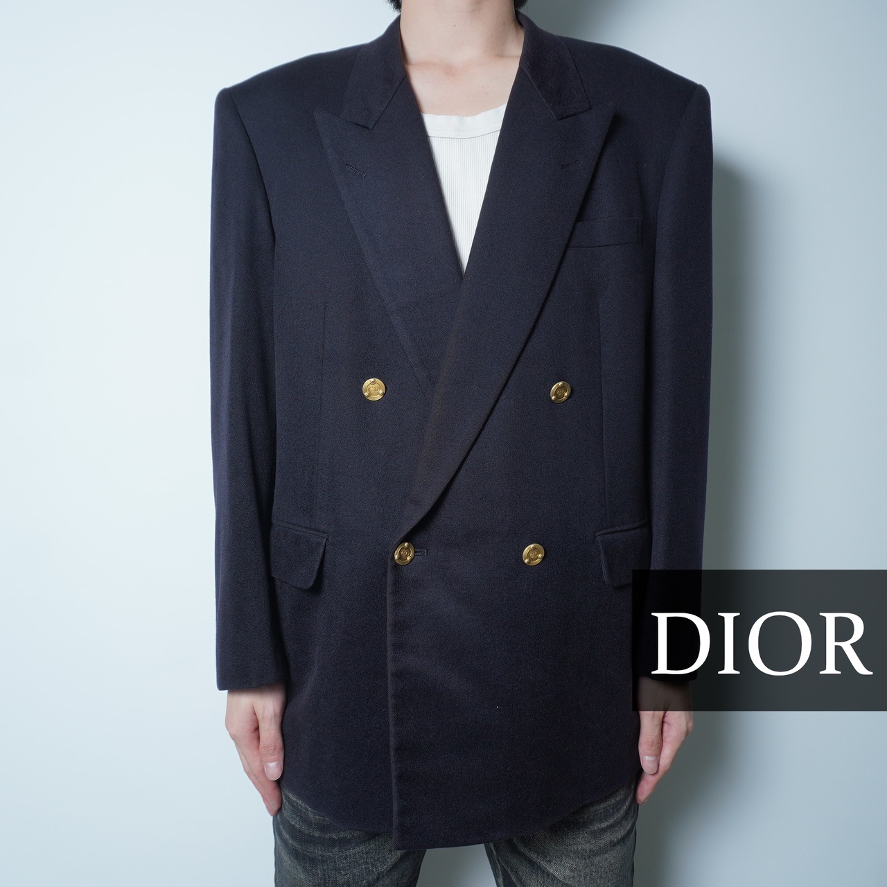 【Christian Dior】クリスチャンディオール “CASHMERE100%” "ロゴゴールドボタン” ダブルテーラードジャケット navy