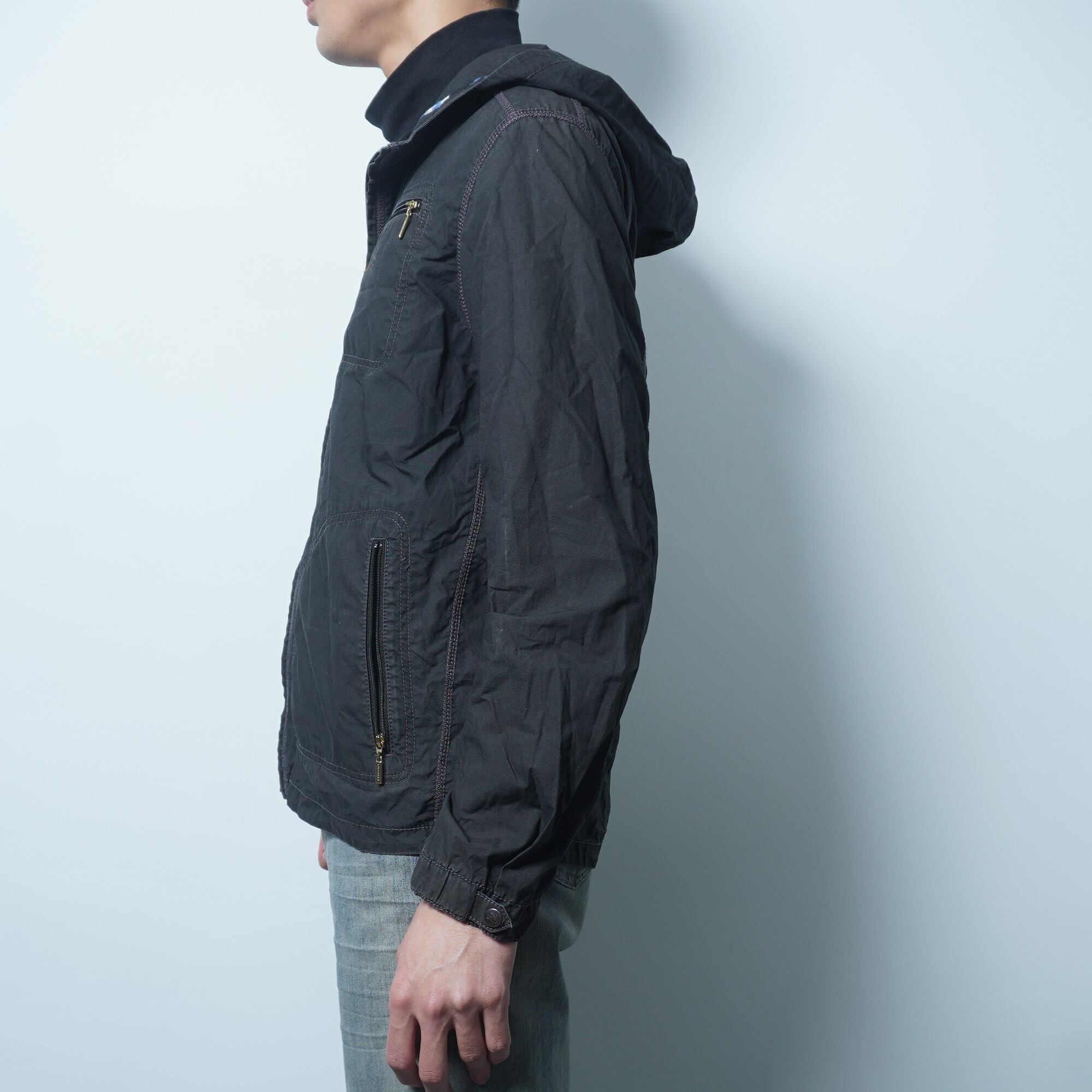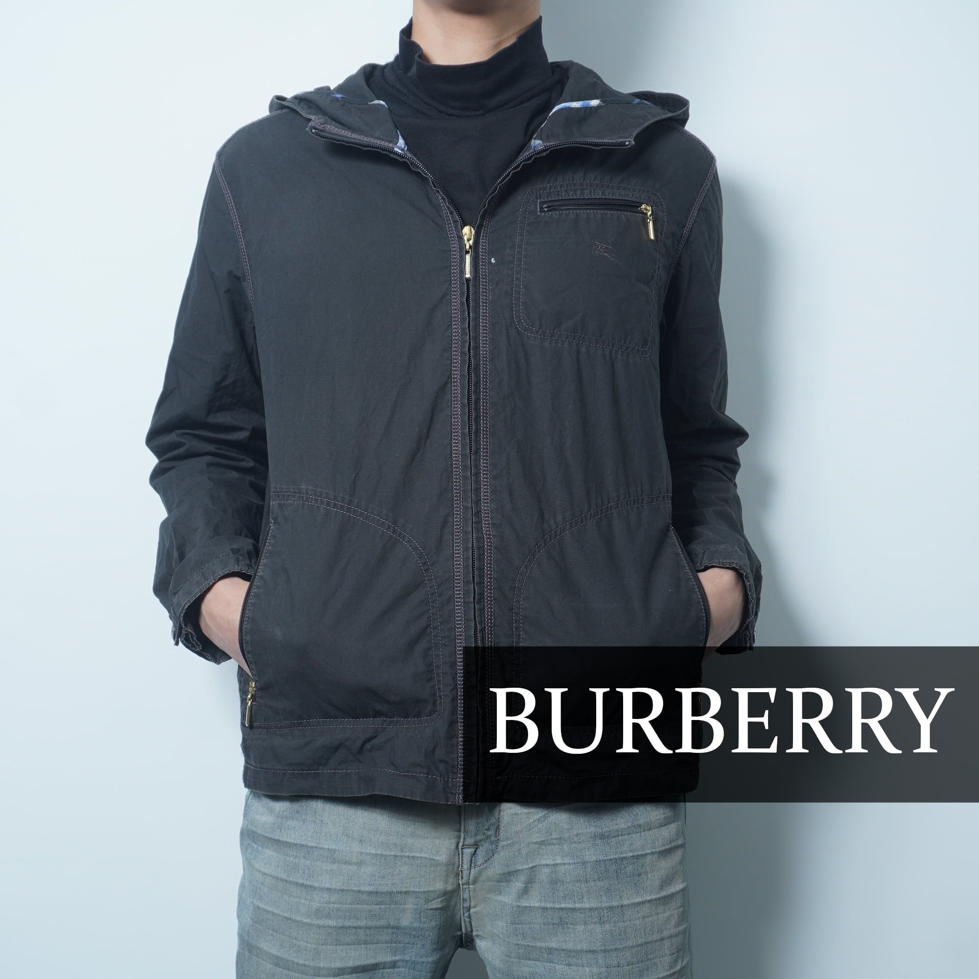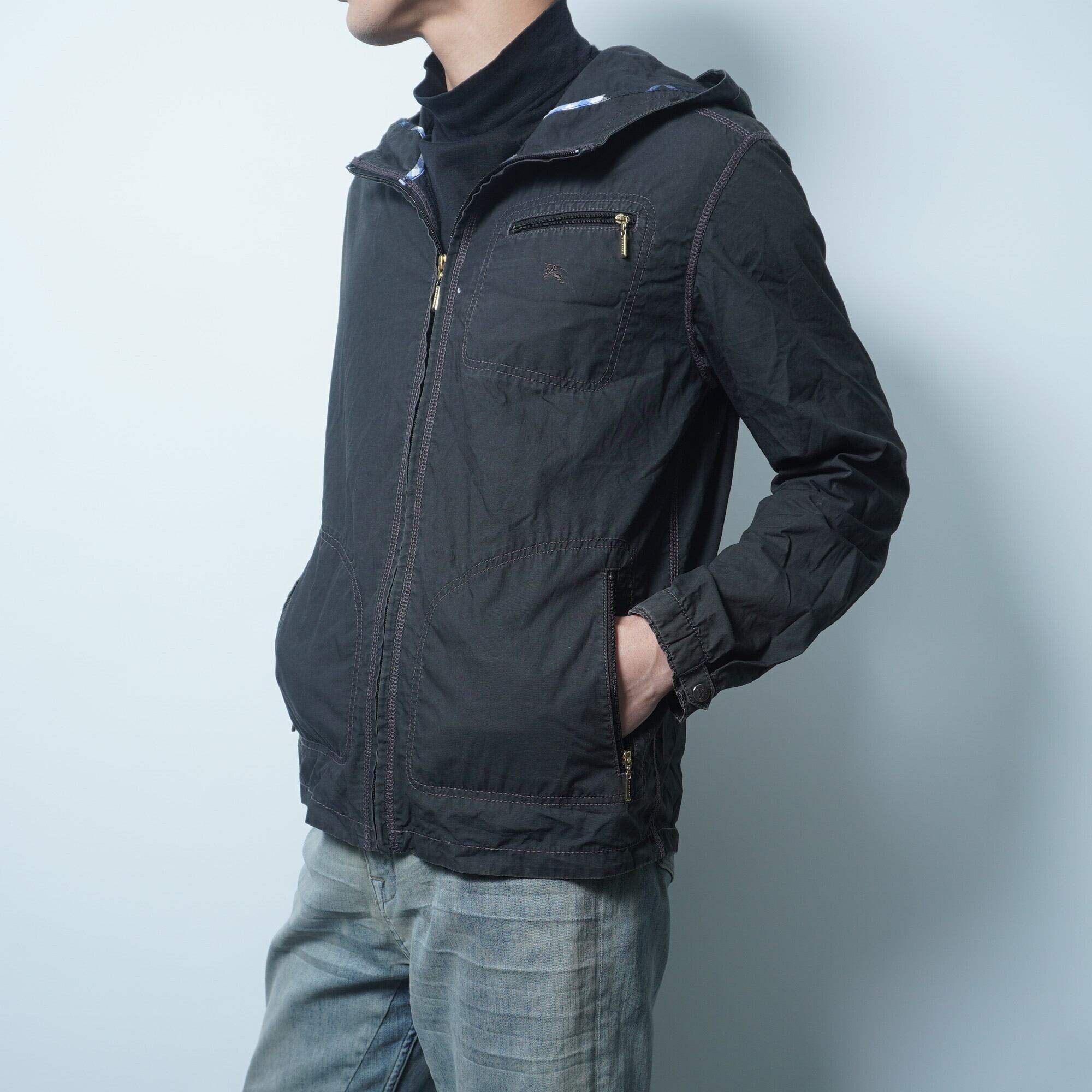 【BURBERRY】バーバリー コットンポリジップアップフーデットジャケット black