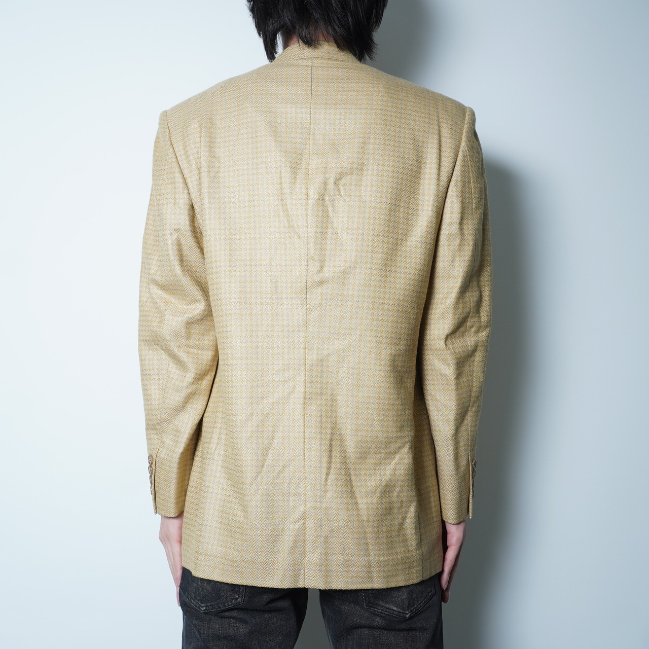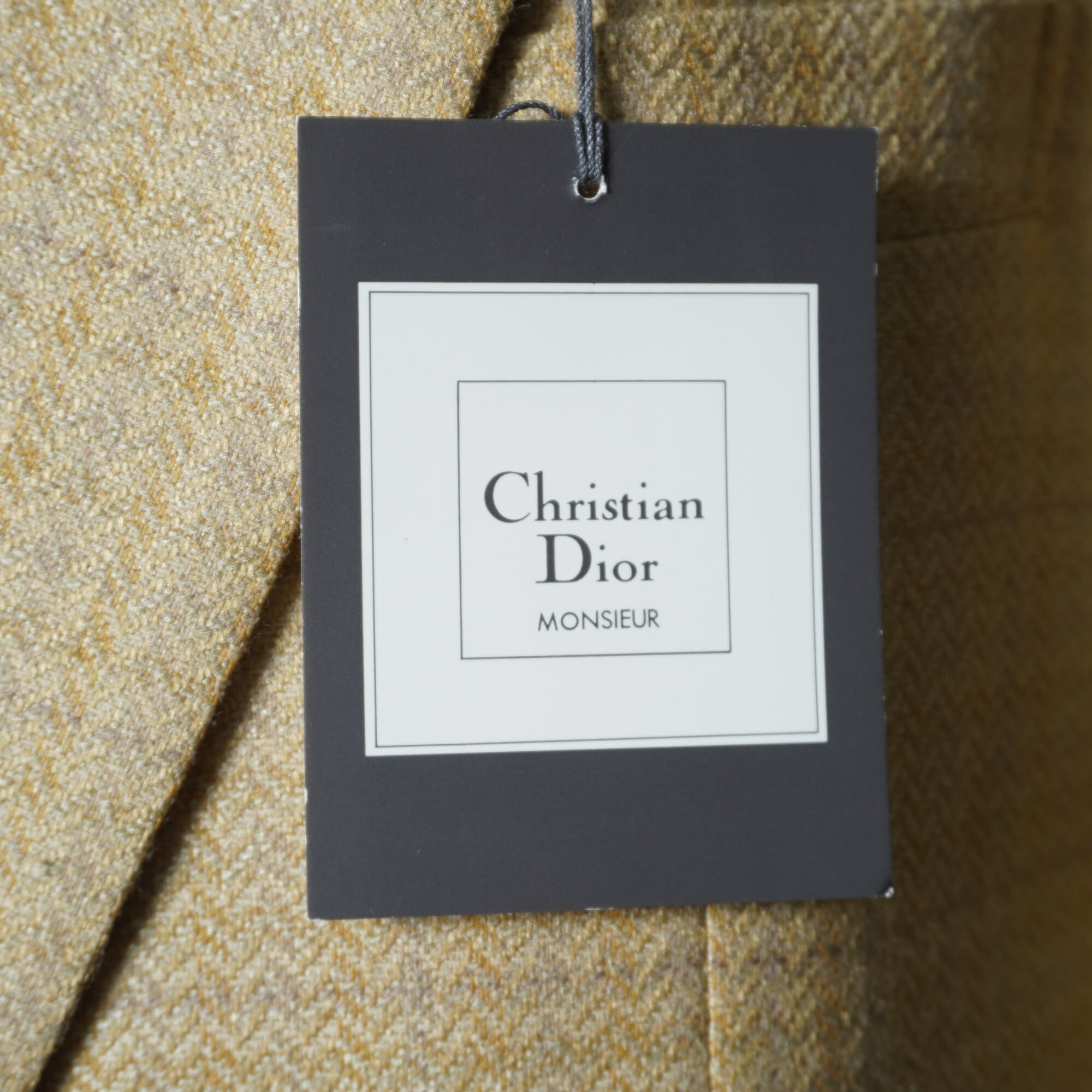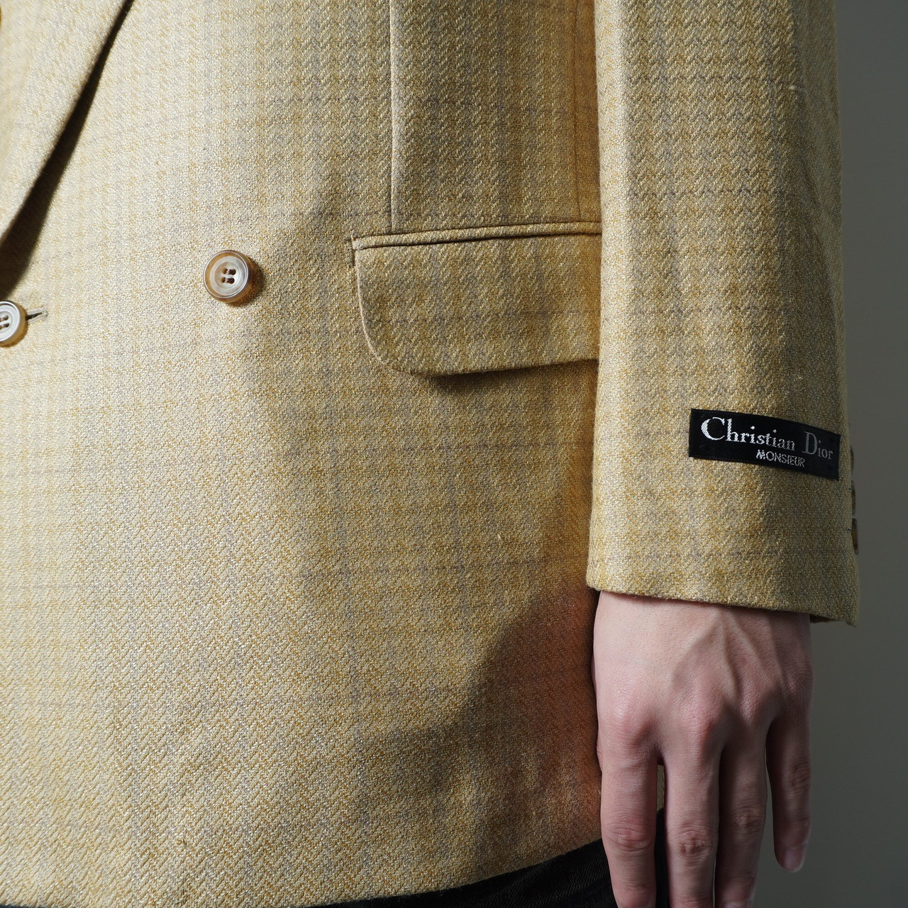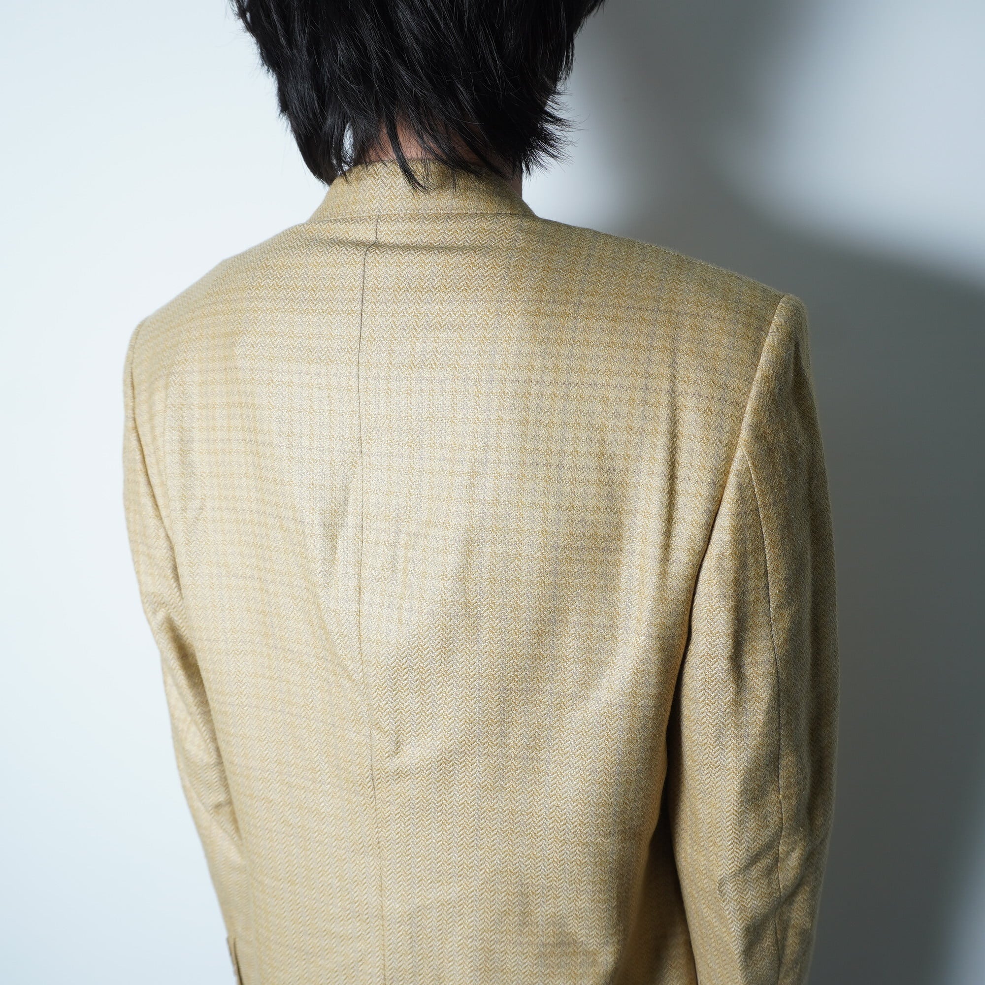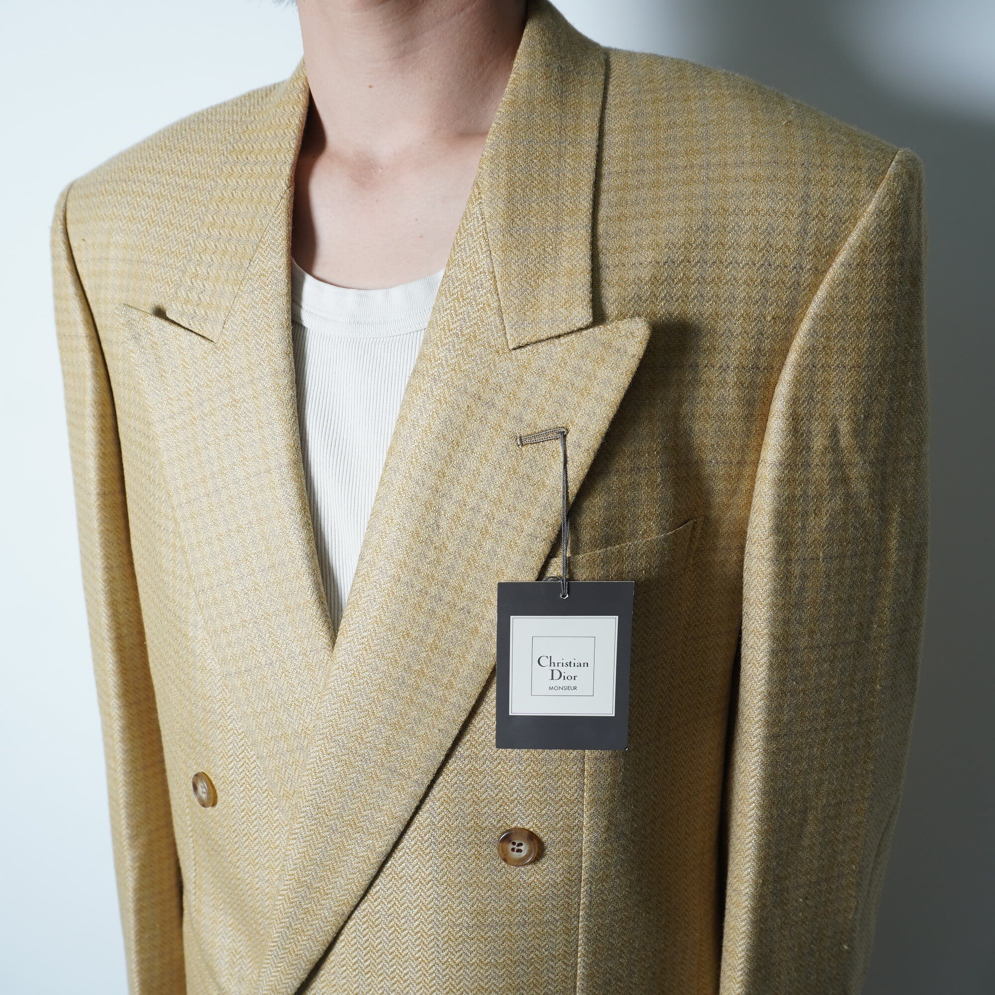 【Christian Dior】クリスチャンディオール "SILK混WOOL”ヘリンボーンダブルテーラードジャケット yellow&beige