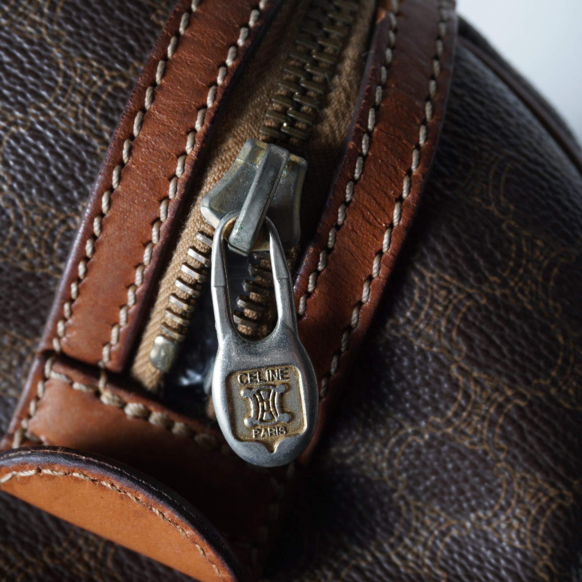 【CELINE】セリーヌ ”トリオンフロゴ" マカダム柄レザー ミニボストンバッグ brown
