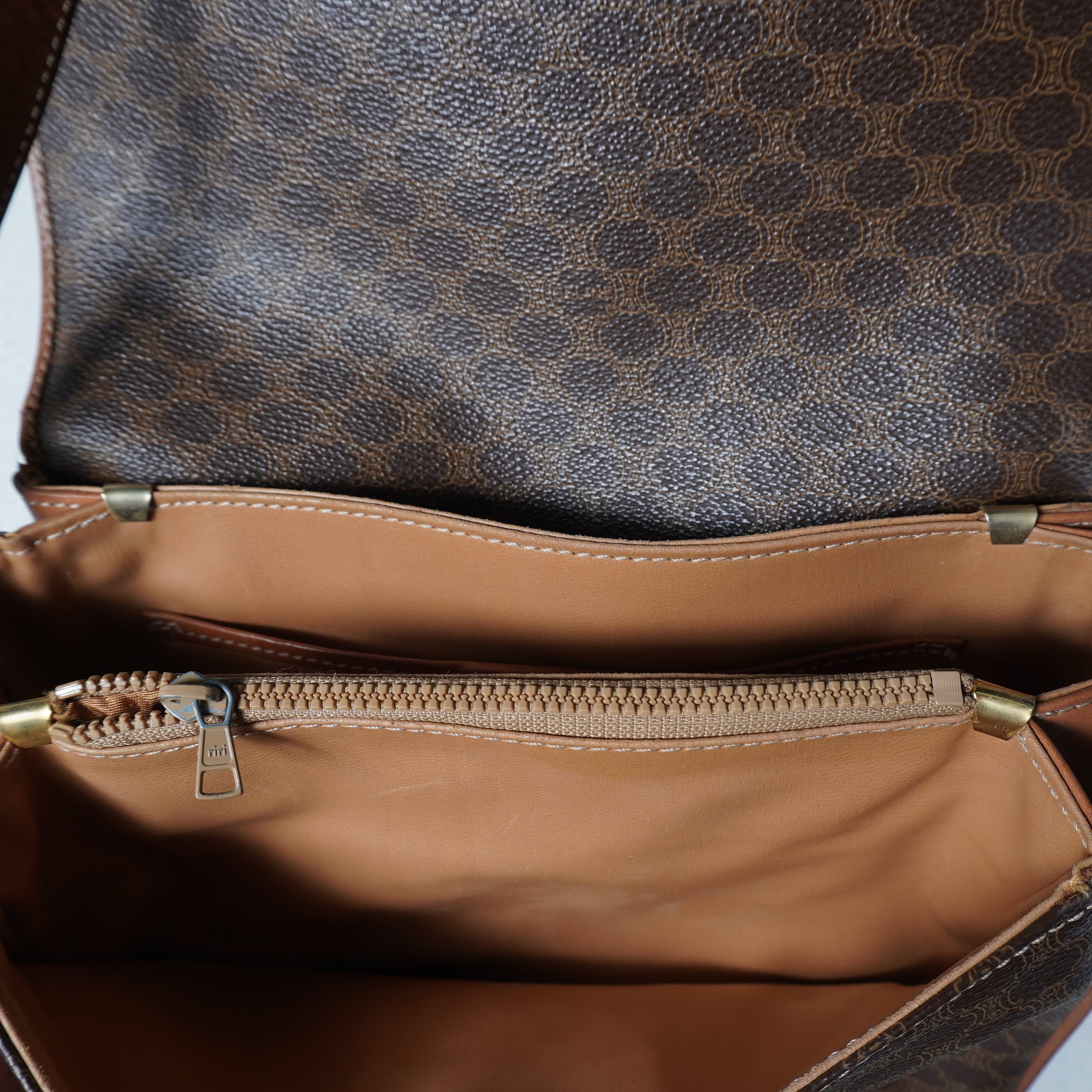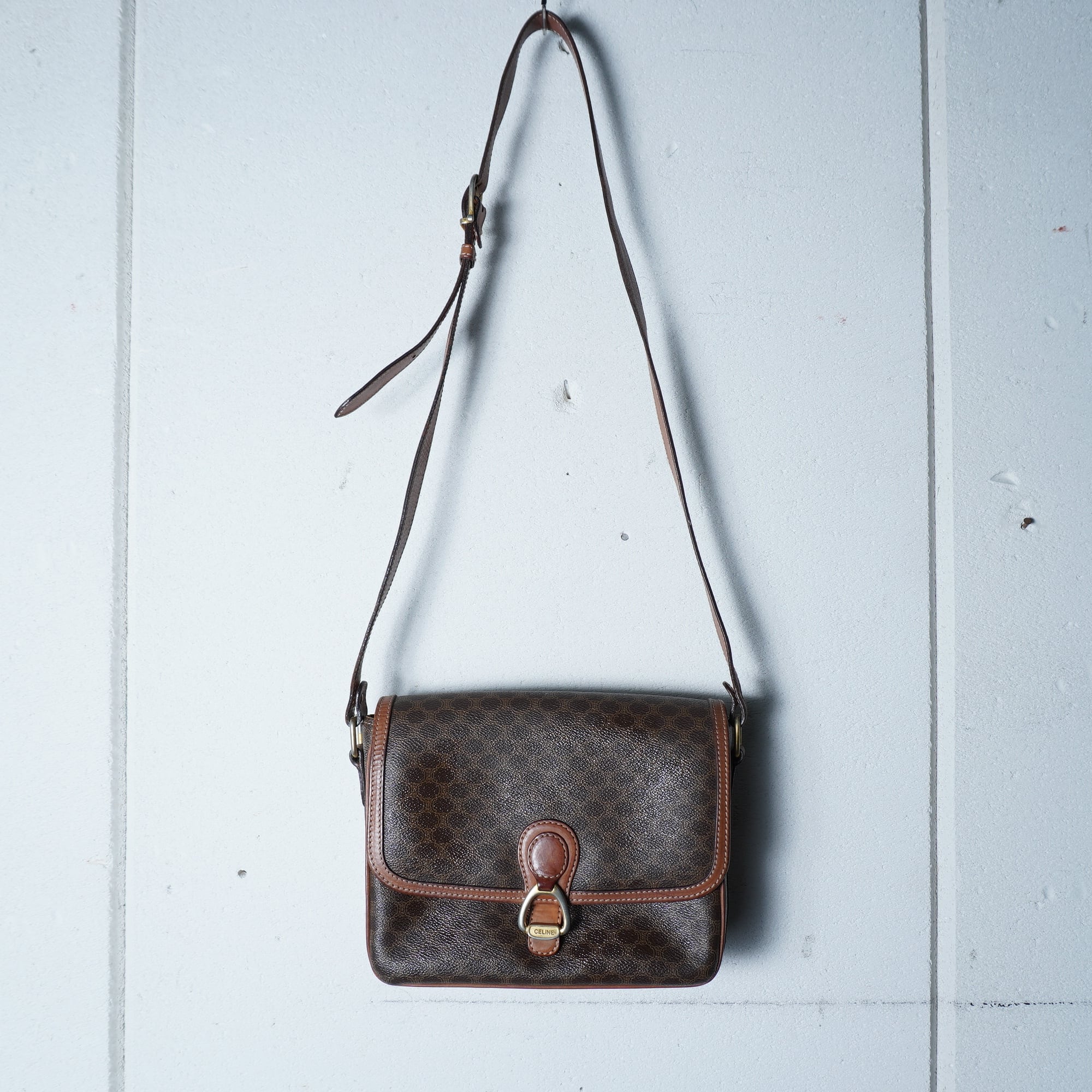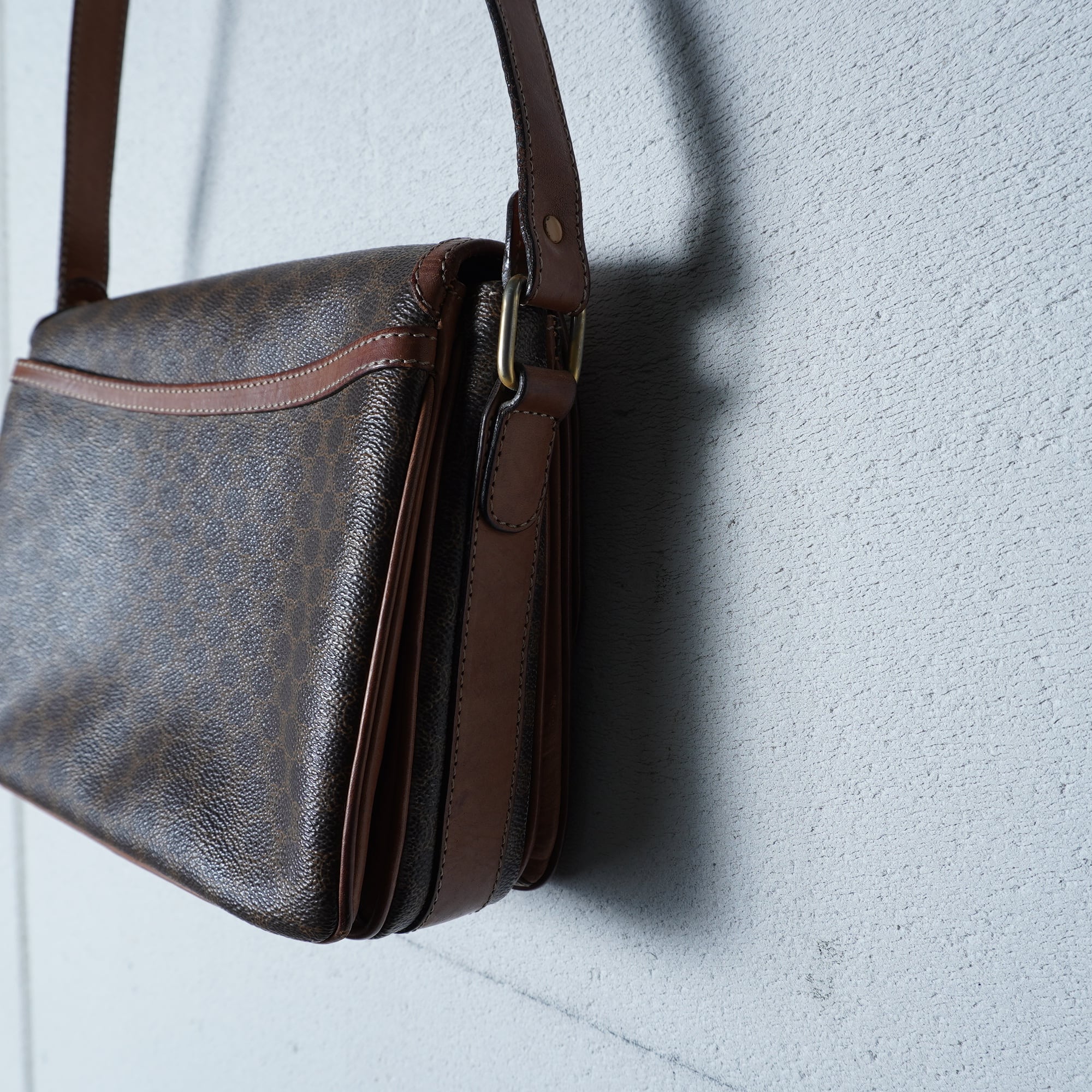 【CELINE】セリーヌ ”ロゴゴールド金具”マカダムレザーショルダーバッグ brown